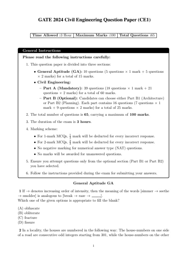 | GATE 2024 Civil Engineering Question Paper with Answer Key PDF | Download PDF | Check Solutions |