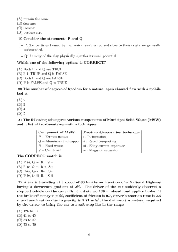GATE 2024 Civil Engineering Question Paper PDF is available here. IISc Banglore conducted GATE 2024 Civil Engineering exam on February 4 in the Forenoon Session from 9:30 AM to 12:30 PM. Students have to answer 65 questions in GATE 2024 Civil Engineering Question Paper carrying a total weightage of 100 marks. 10 questions are from the General Aptitude section and 55 questions are from Engineering Mathematics and Core Discipline.