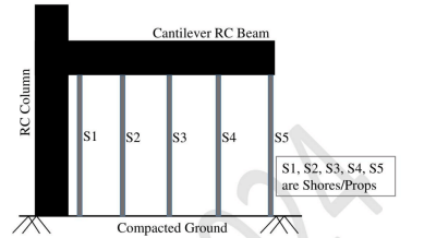 The following figure shows the arrangement of formwork for casting a cantilever RC beam.
