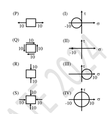 Find the correct match between the plane stress states and the Mohr’s circles.