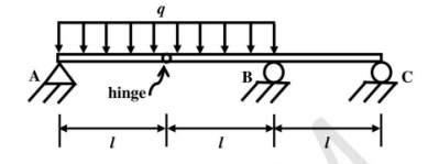 The magnitude of the reaction (in kN) at the pin support L is ______ (rounded off to 1 decimal place).