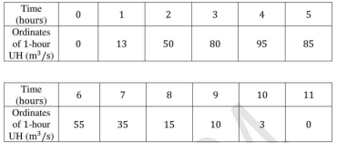 The ordinates of a 1-hour unit hydrograph (UH) are given below: