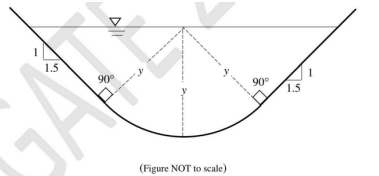 A standard round bottom triangular canal section as shown in the figure has a bed slope of 1 in 200. Consider the Chezy's coefficient as 150 m\(^{1/2}\)/s.