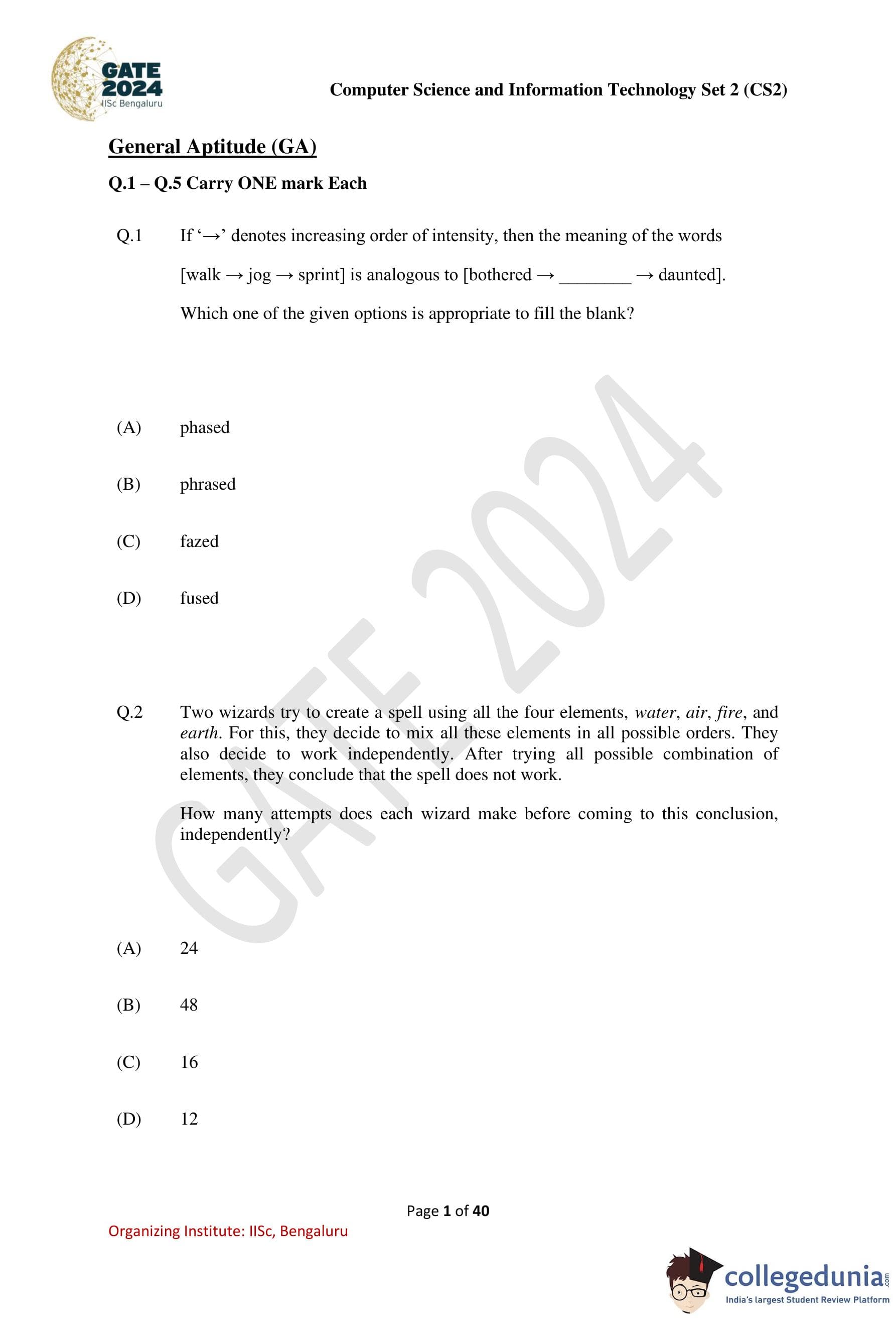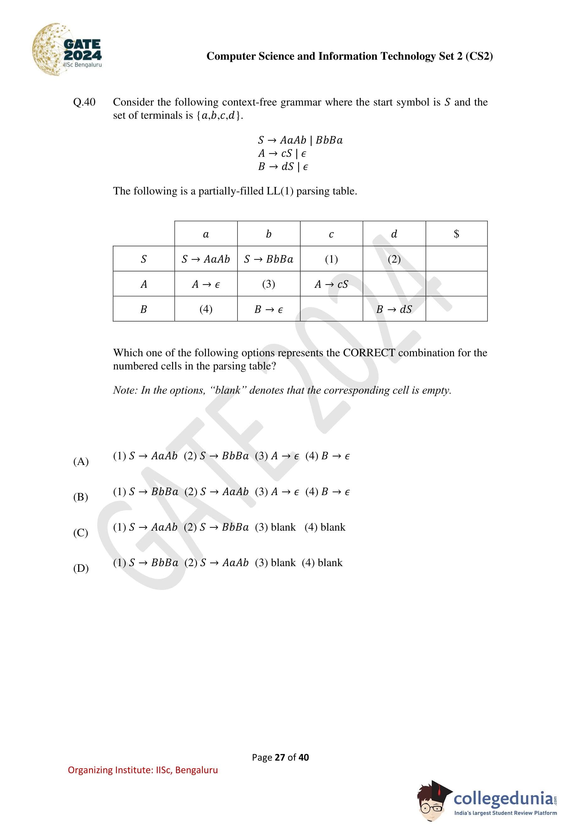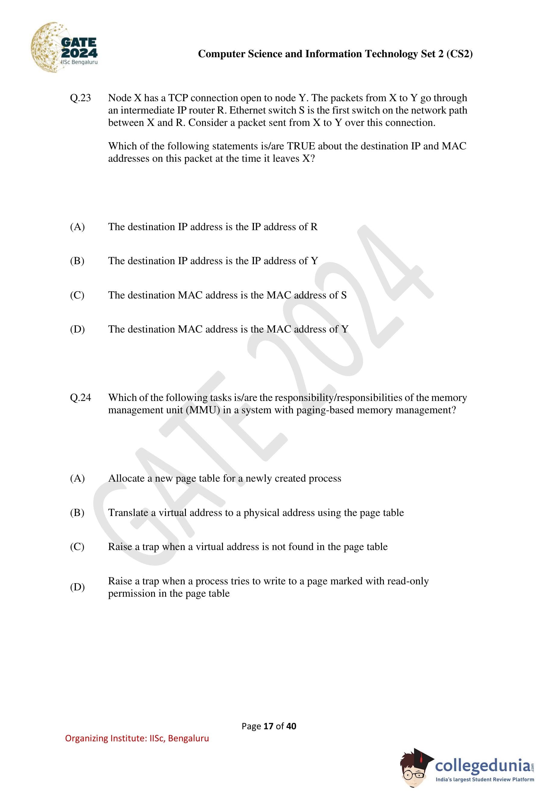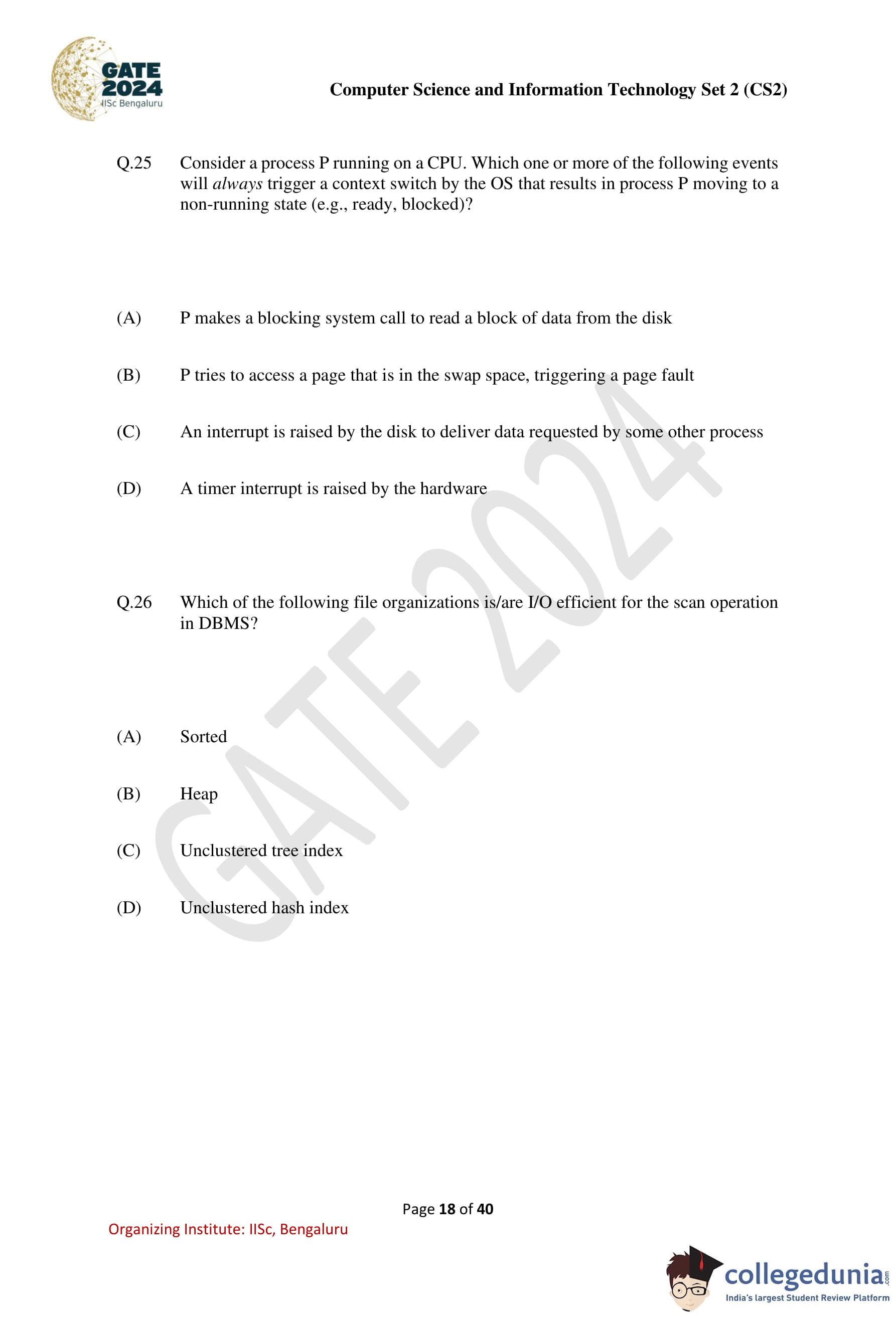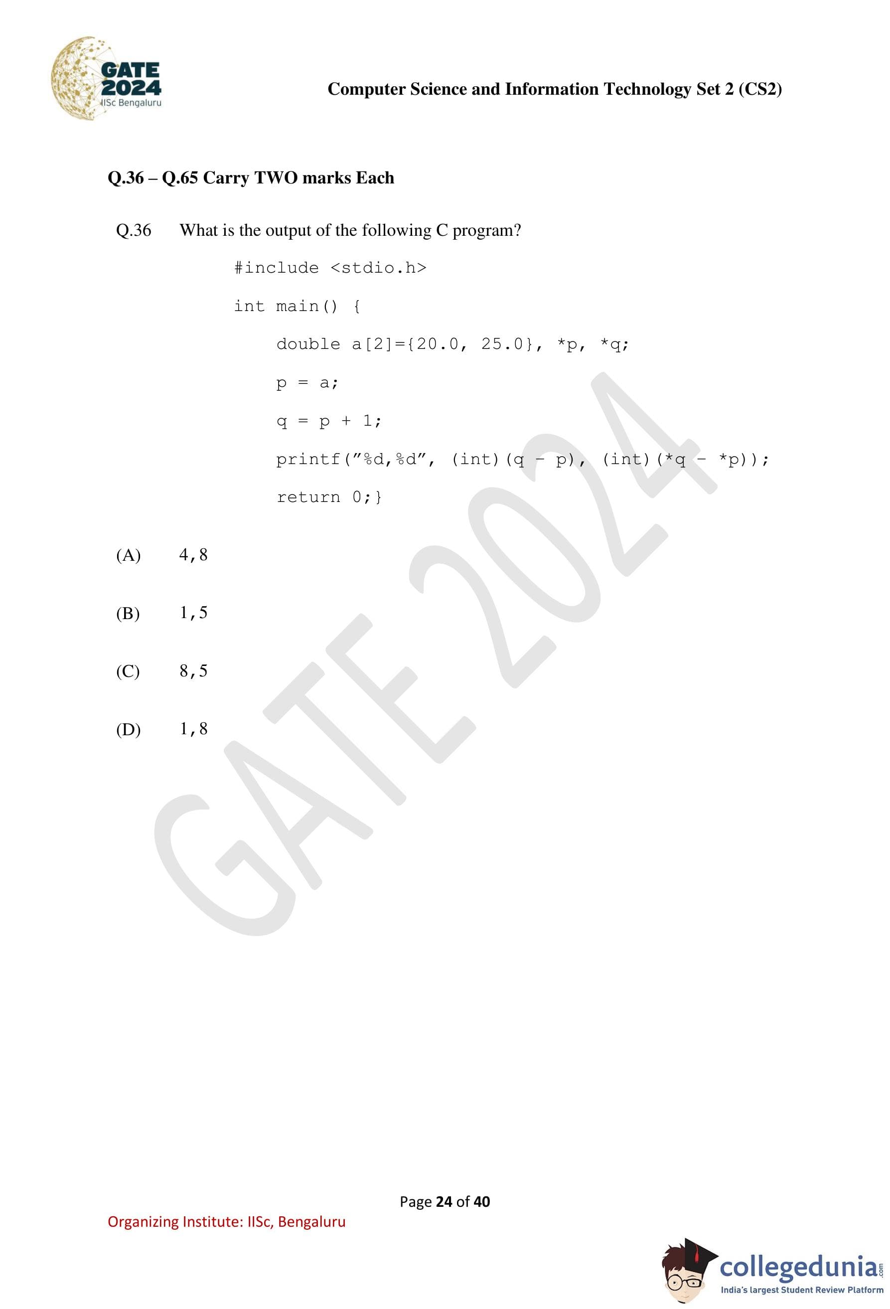 | GATE 2024 CSE Question Paper PDF | Check Solutions |