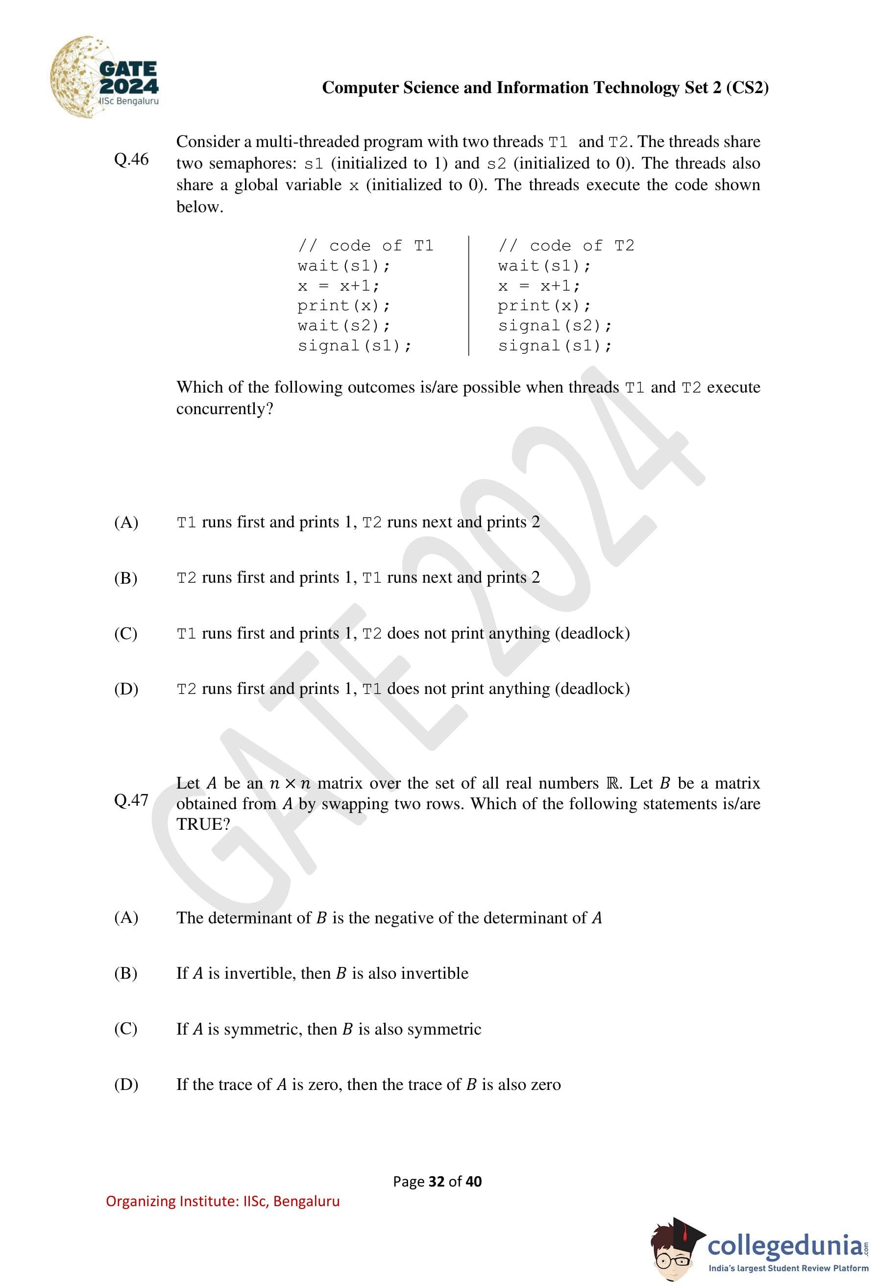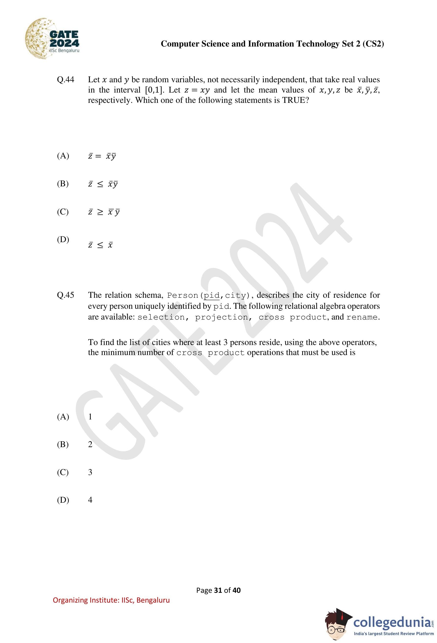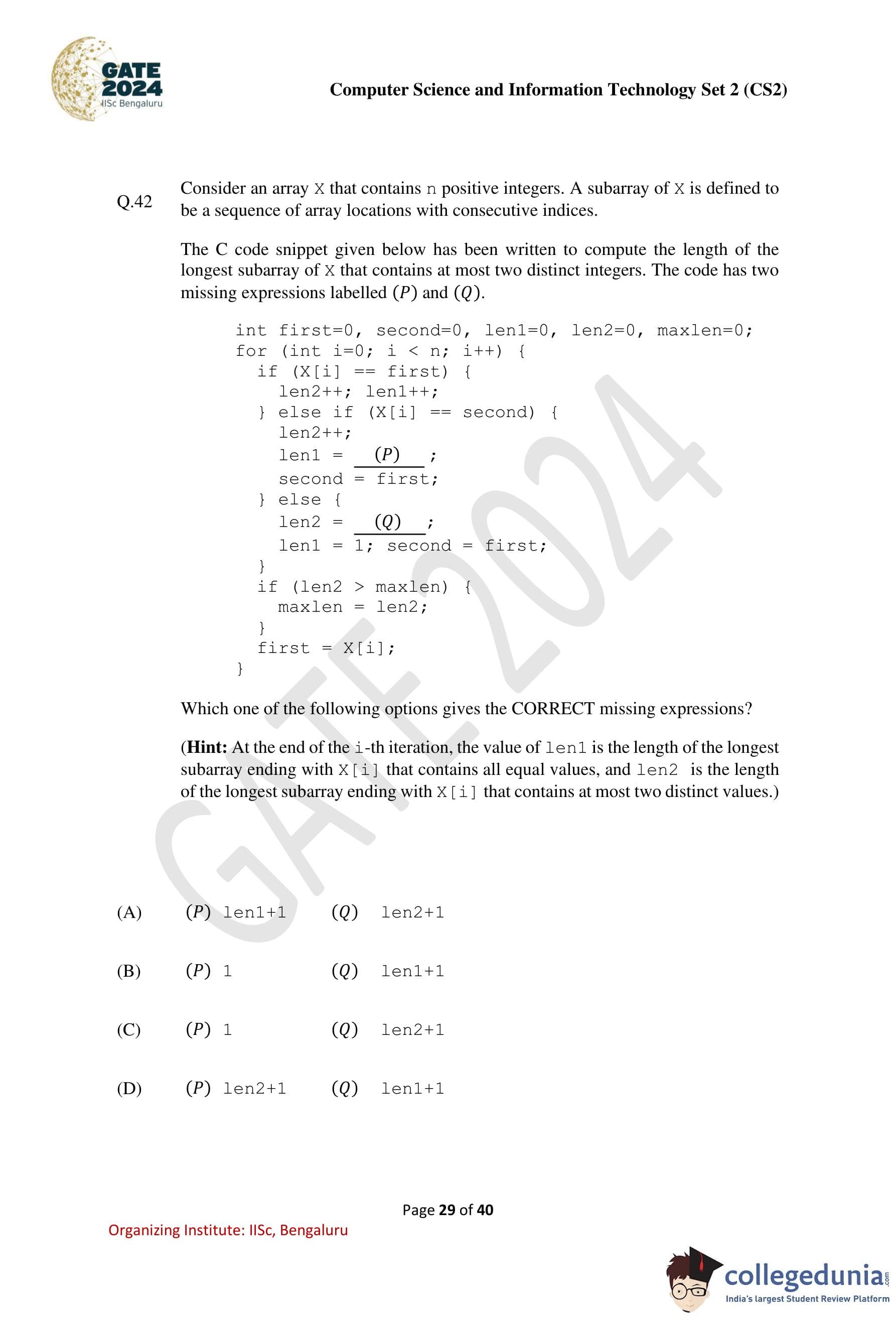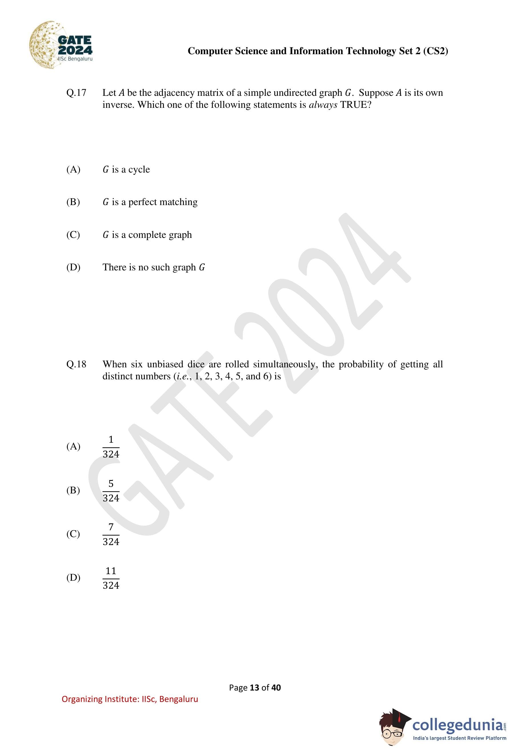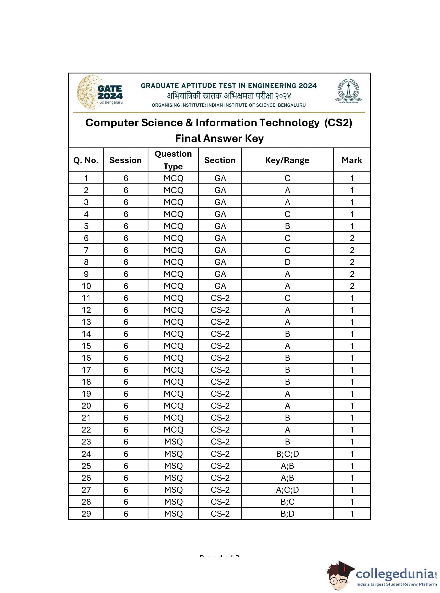 | GATE 2024 CSE Question Paper PDF | Check Solutions |