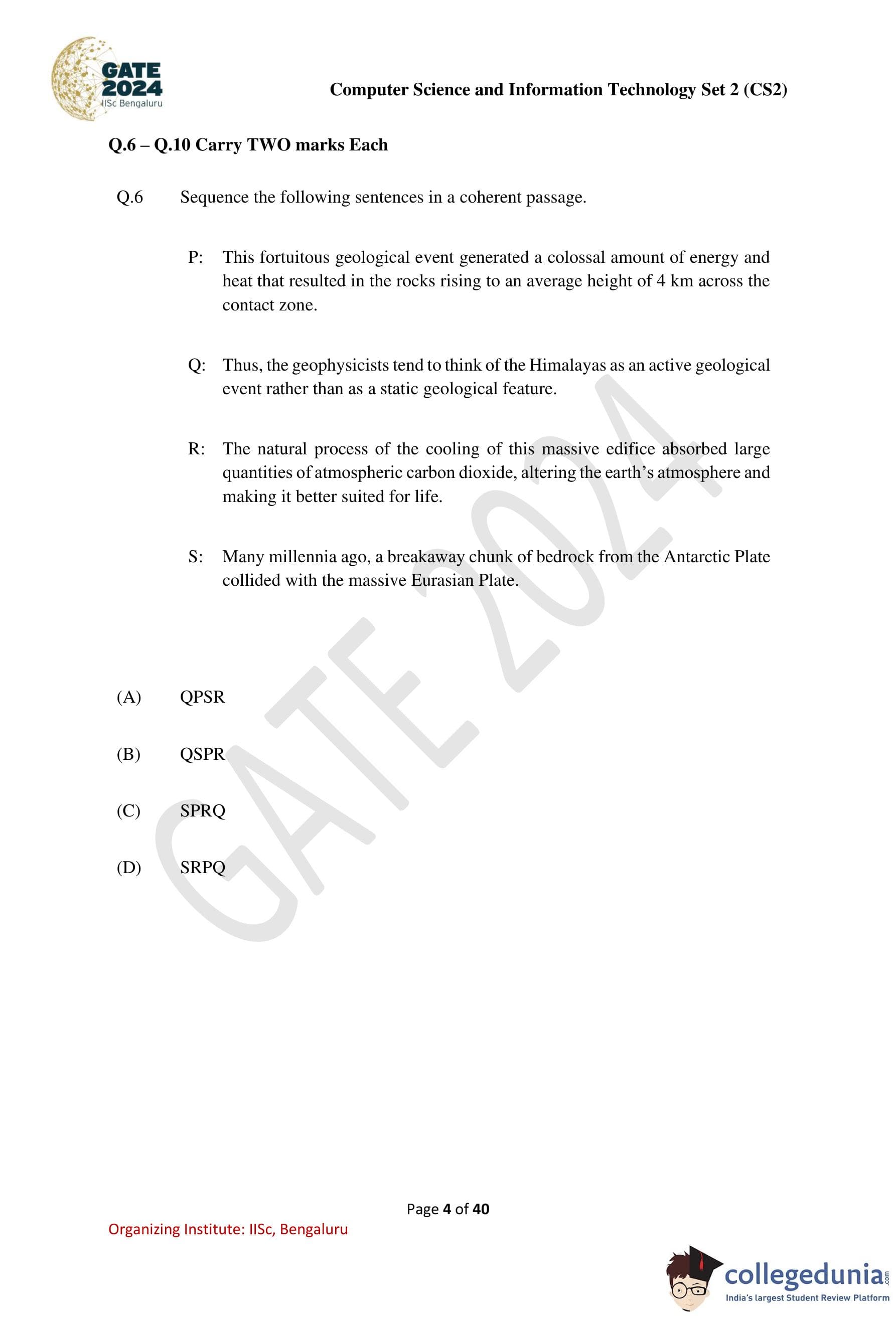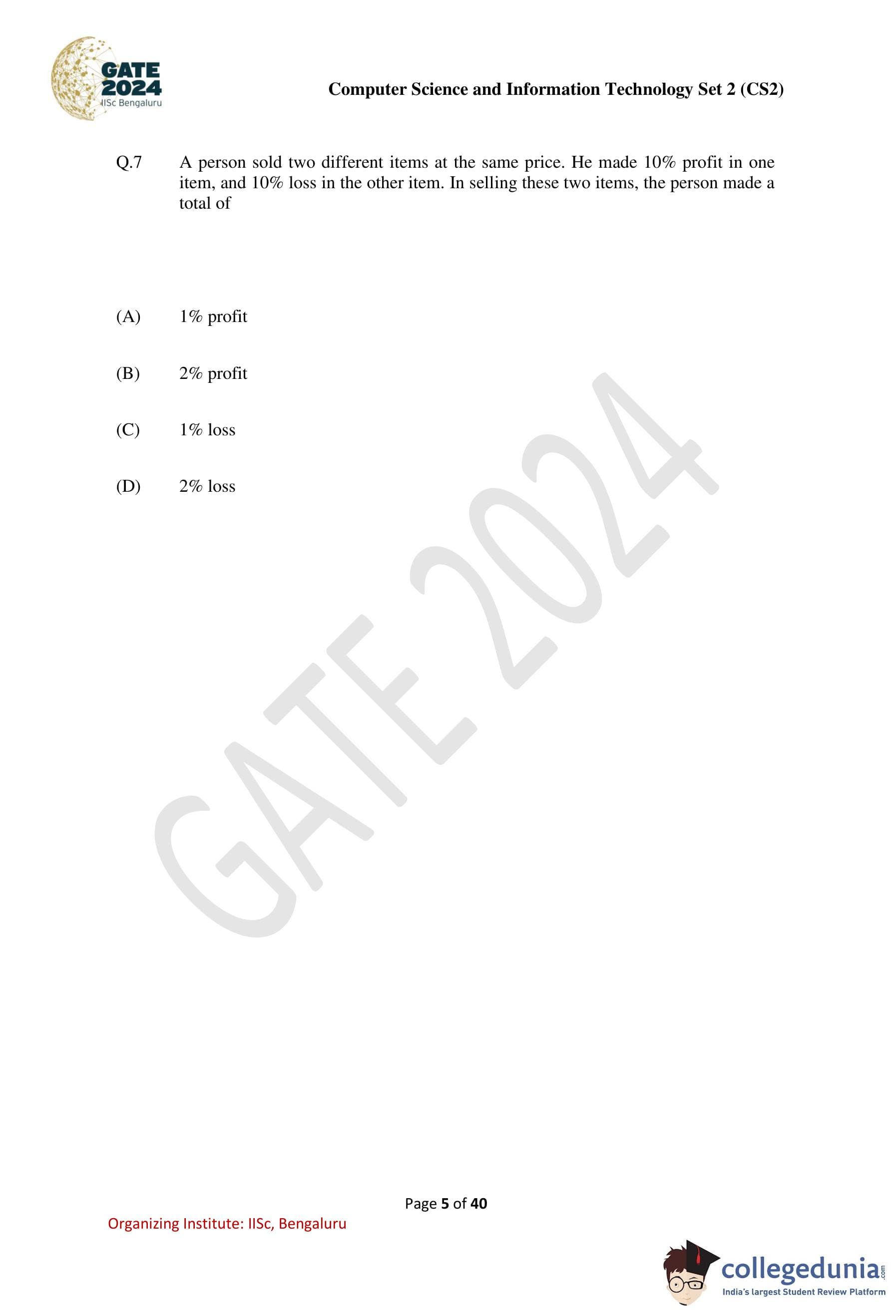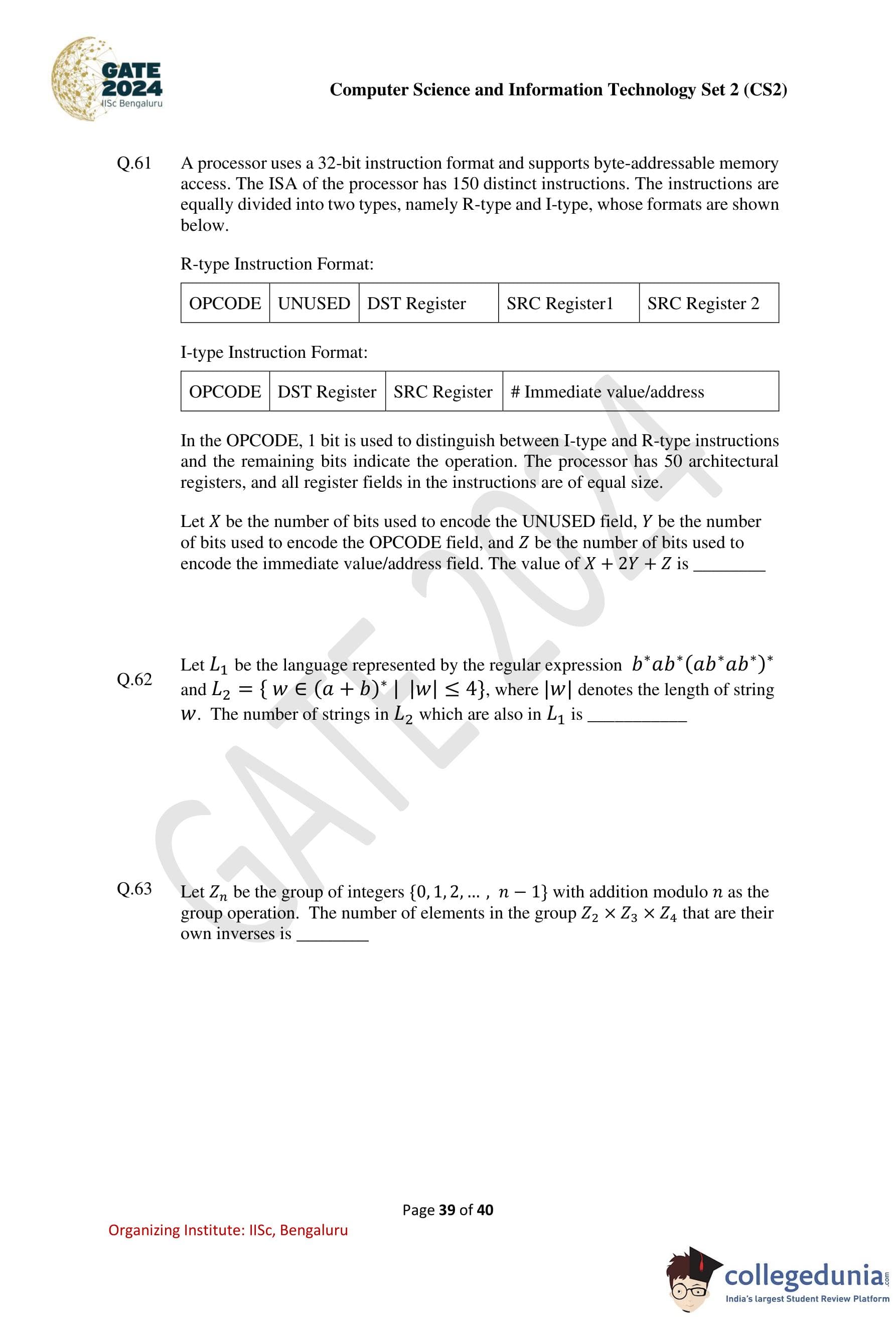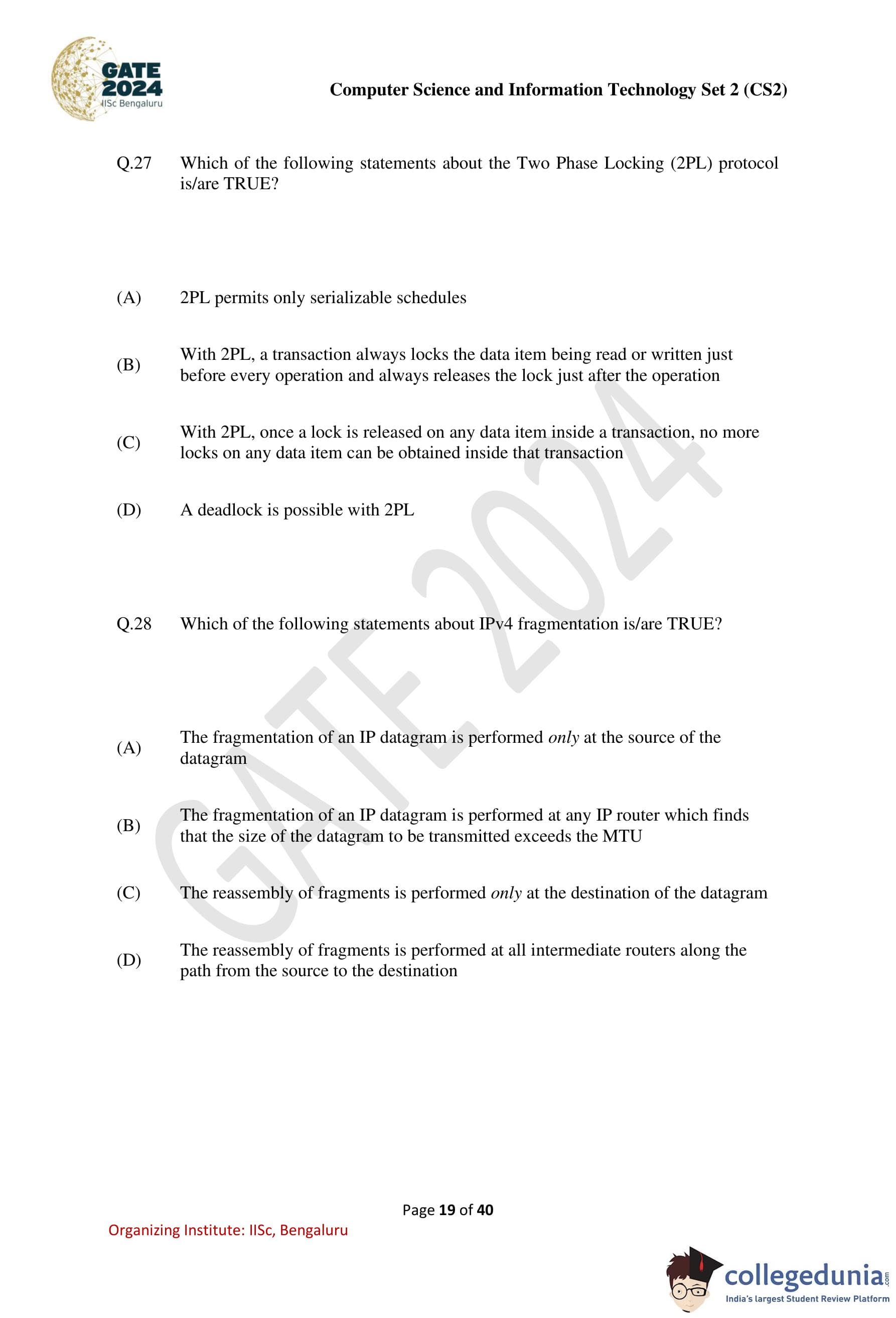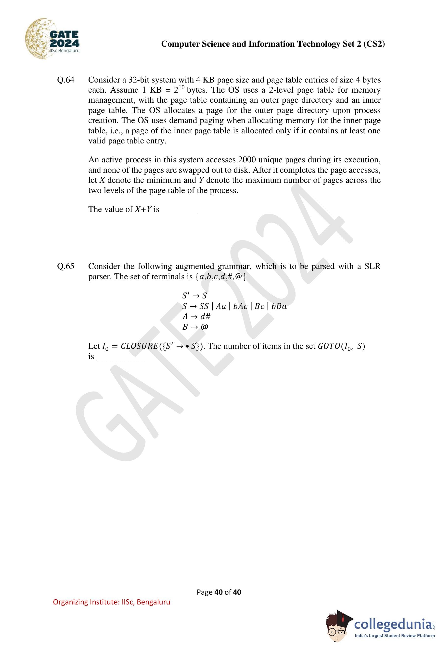 GATE 2024 CSE Slot-2 Question Paper with Answer Key PDFs