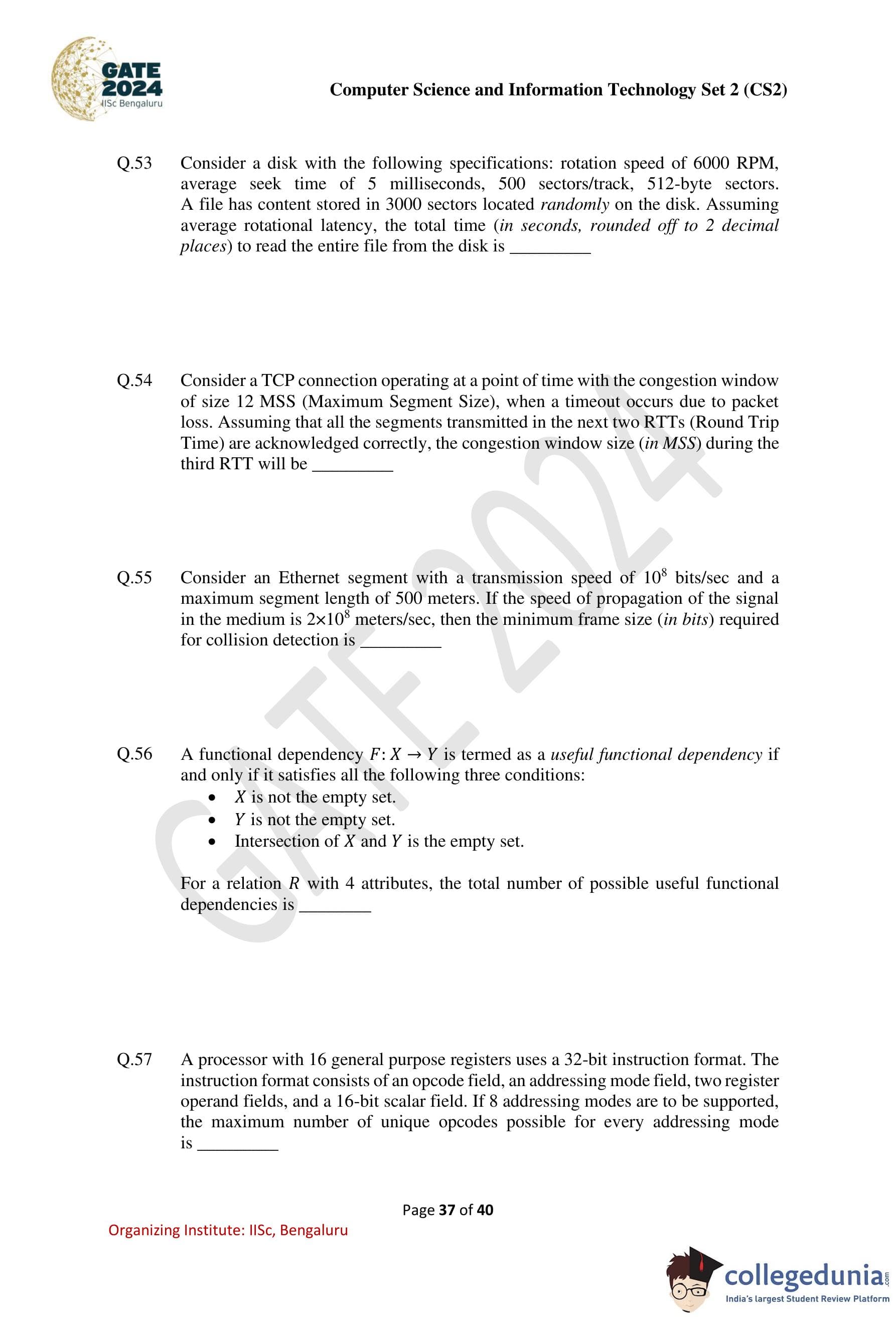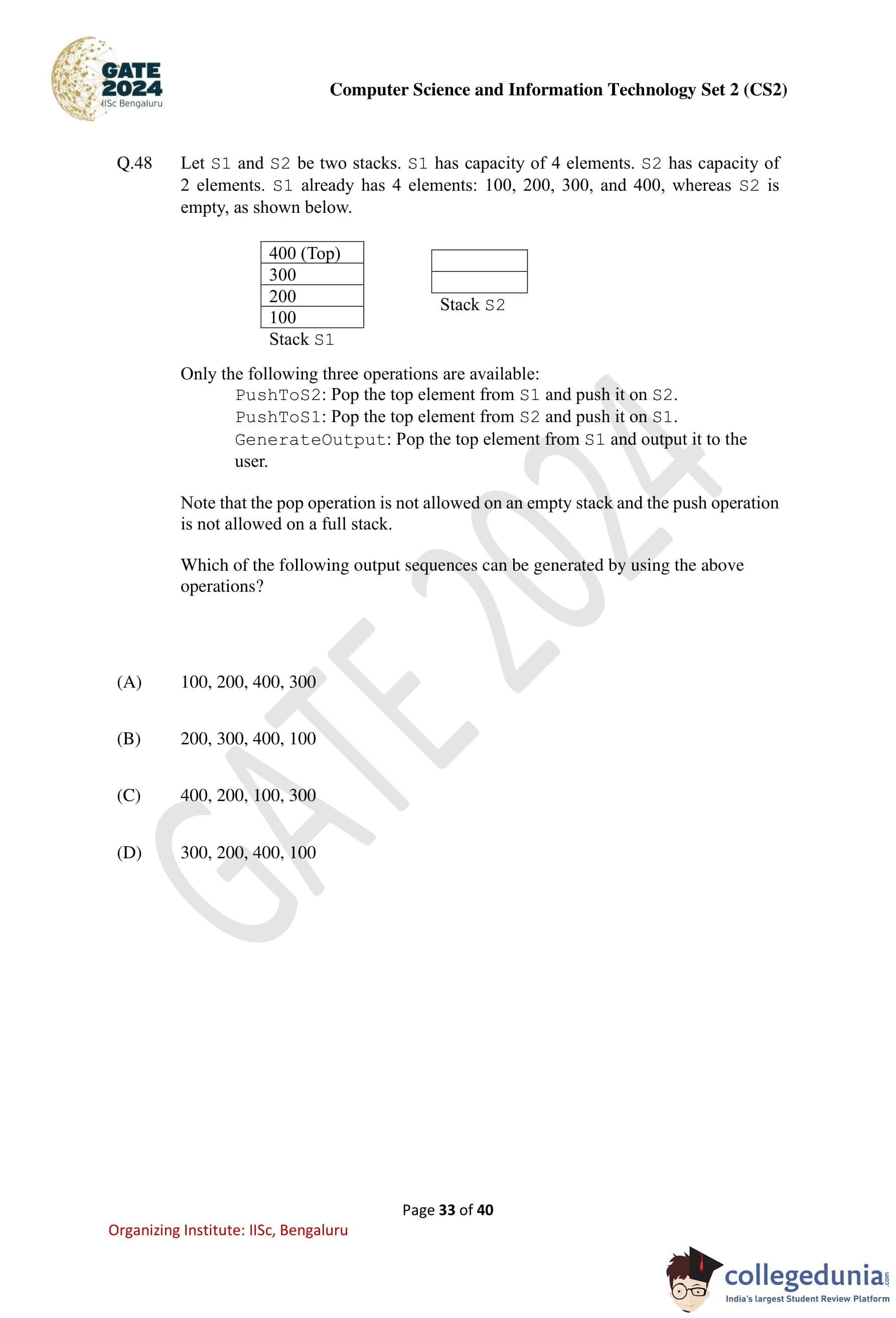 GATE 2024 CSE Slot 2 Questions with Solutions