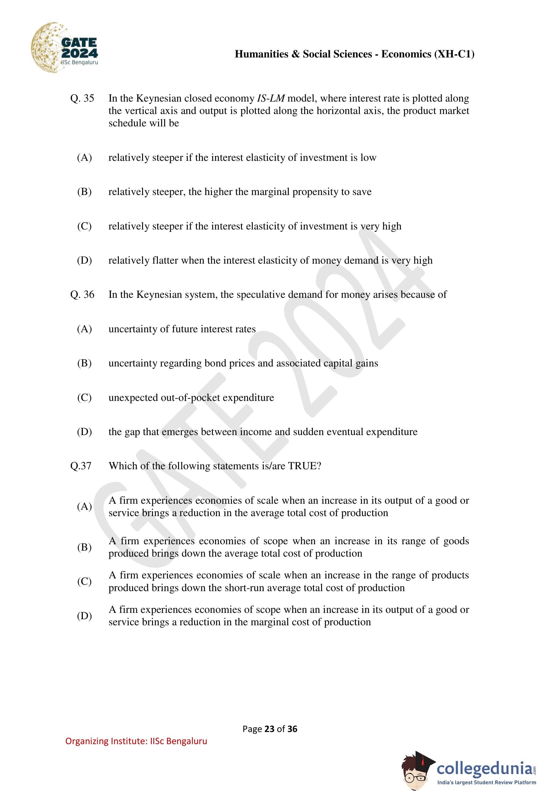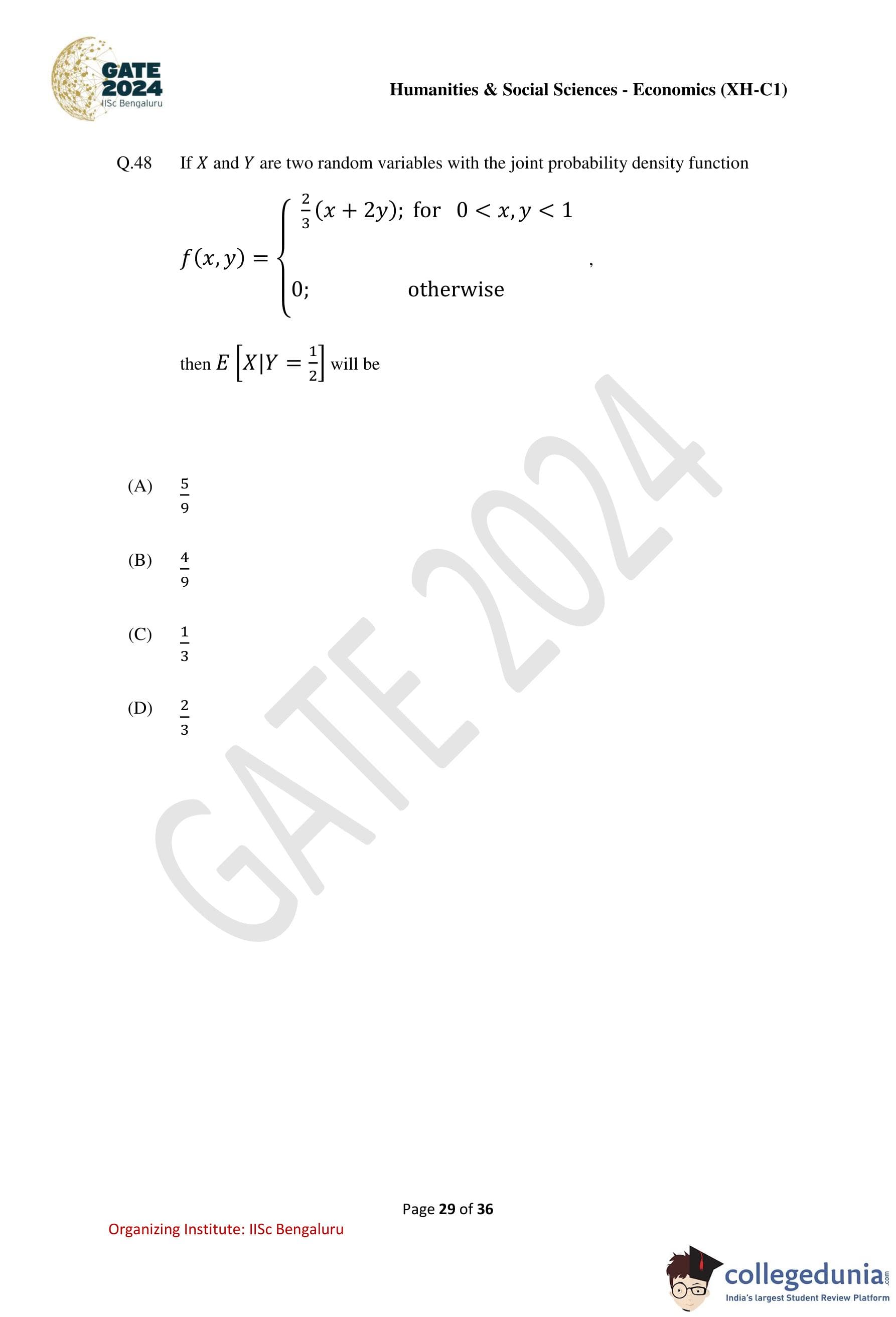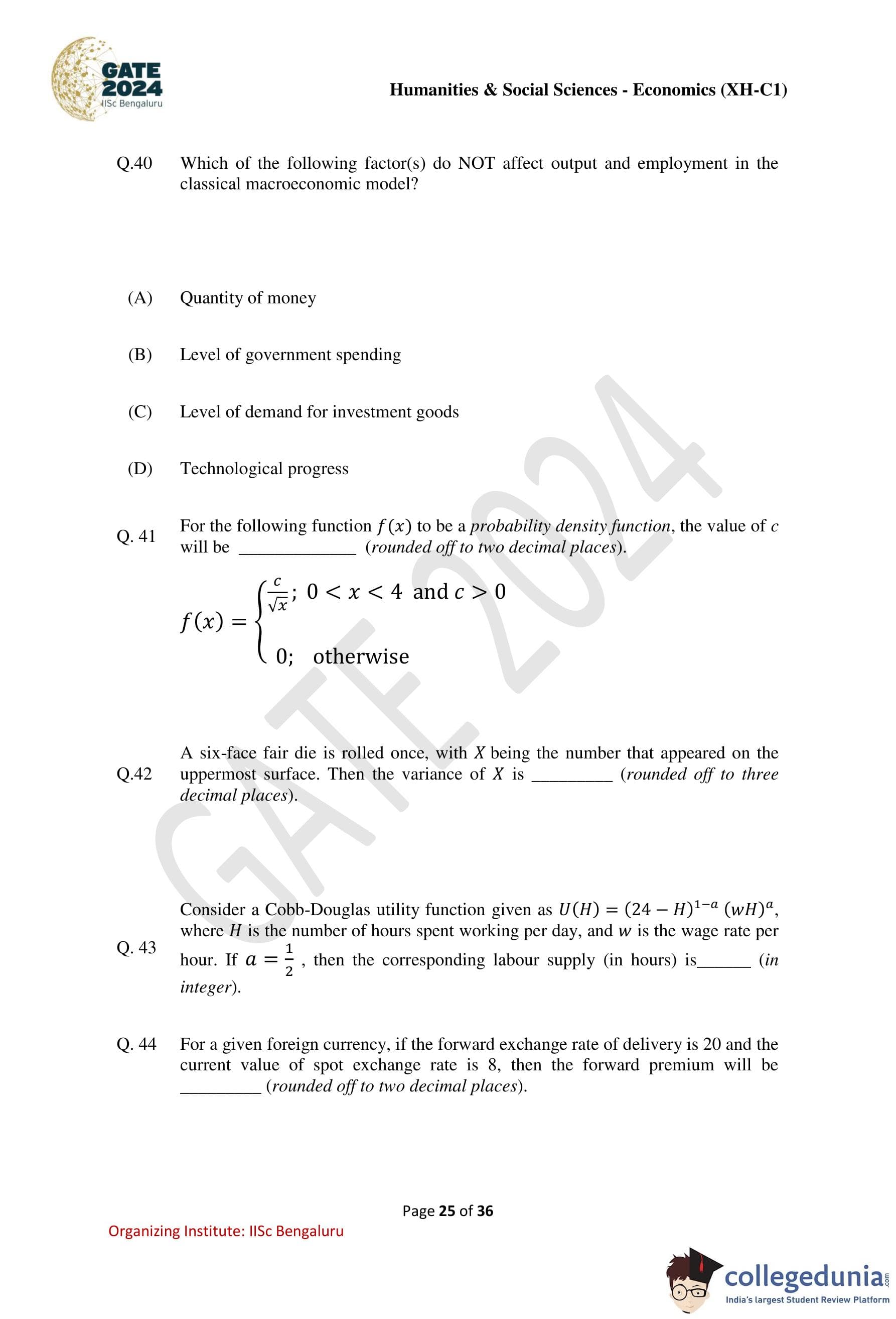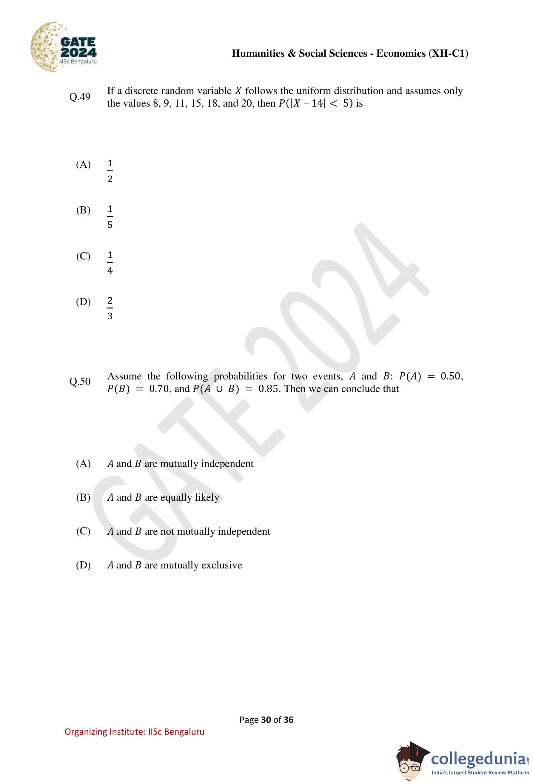| GATE 2024 Economics (XH-C1) Question Paper with Solutions PDF | Download | Check Solutions |