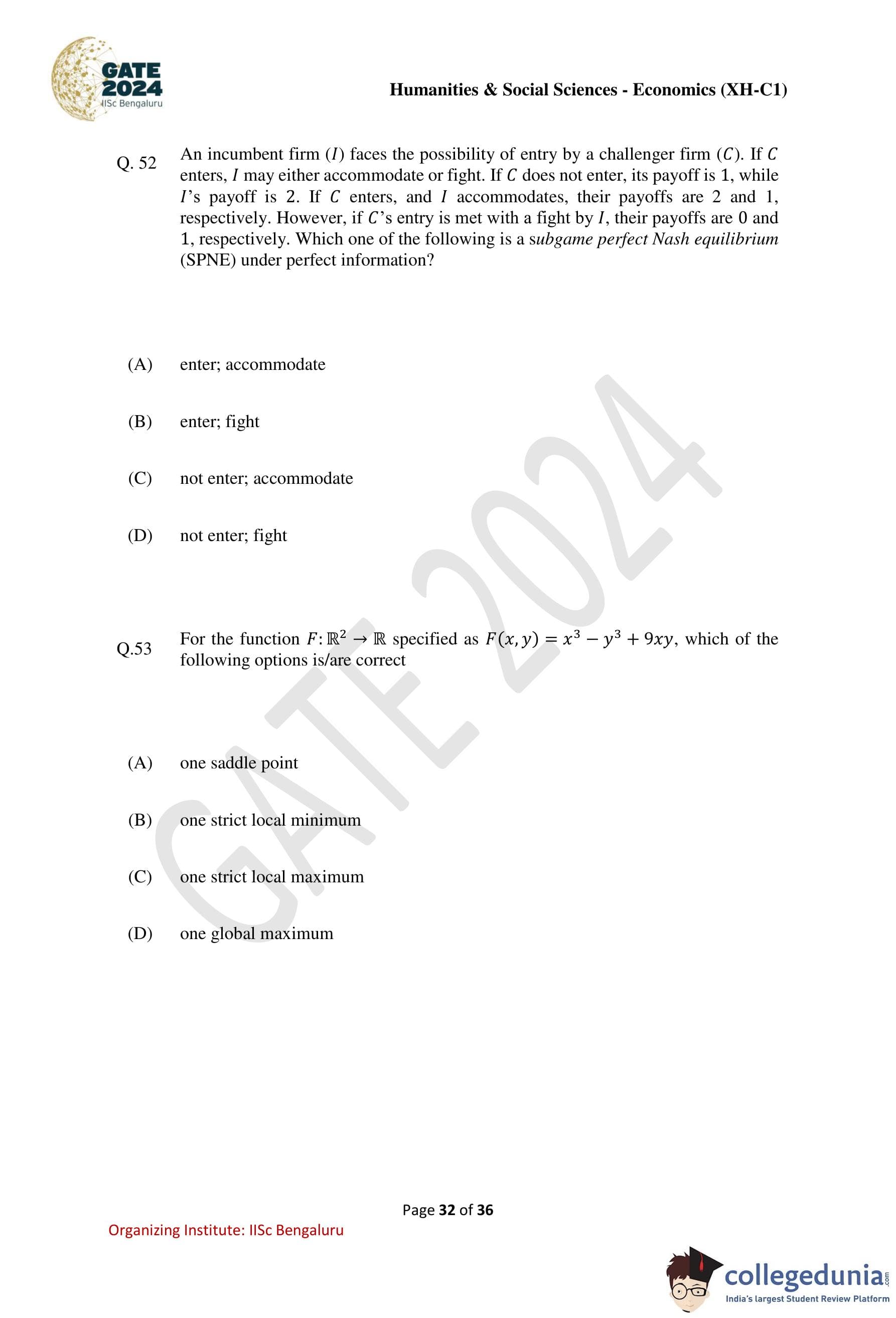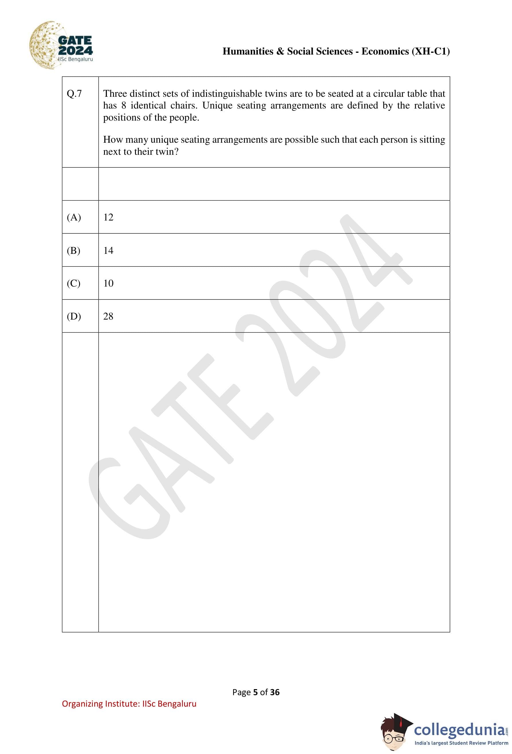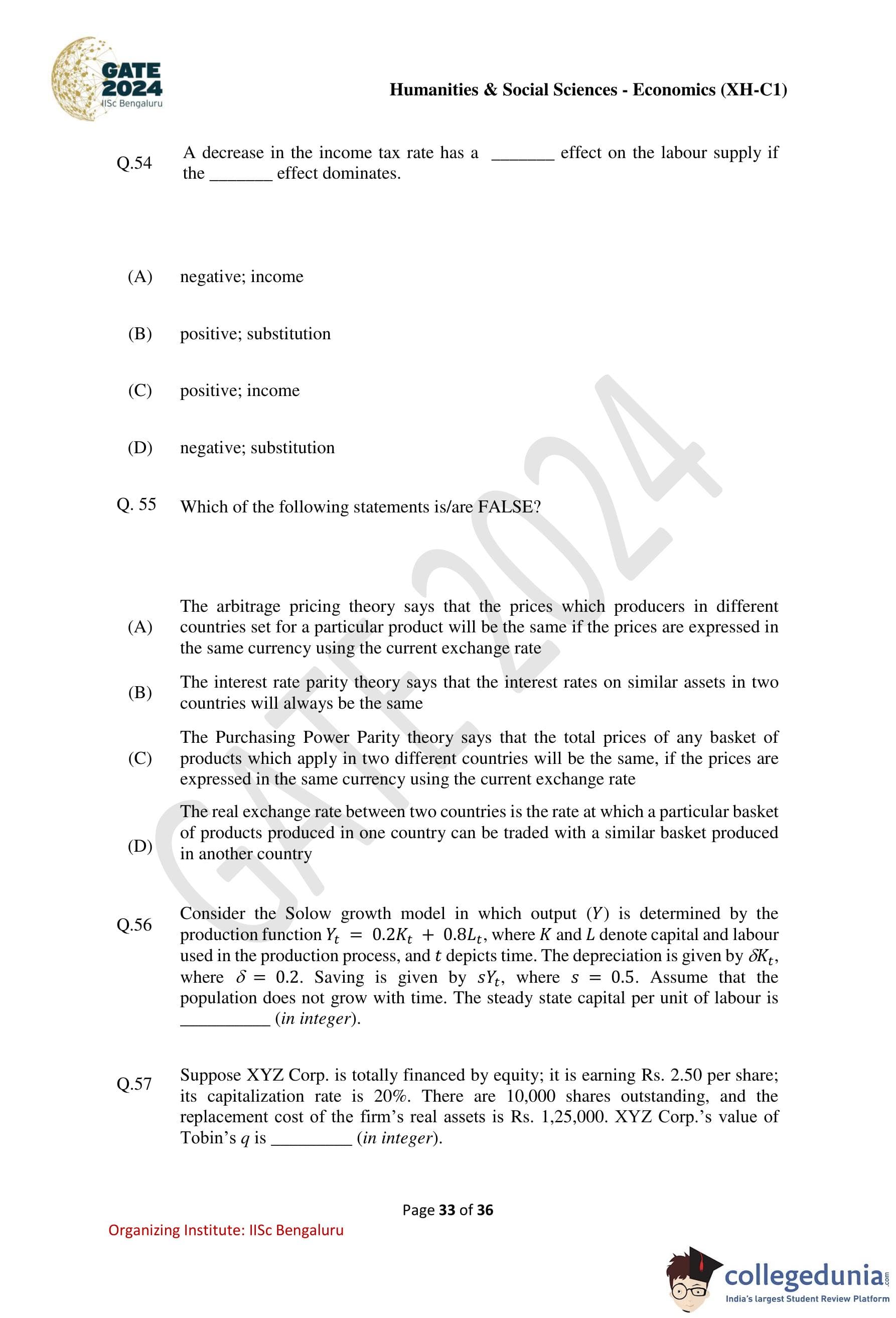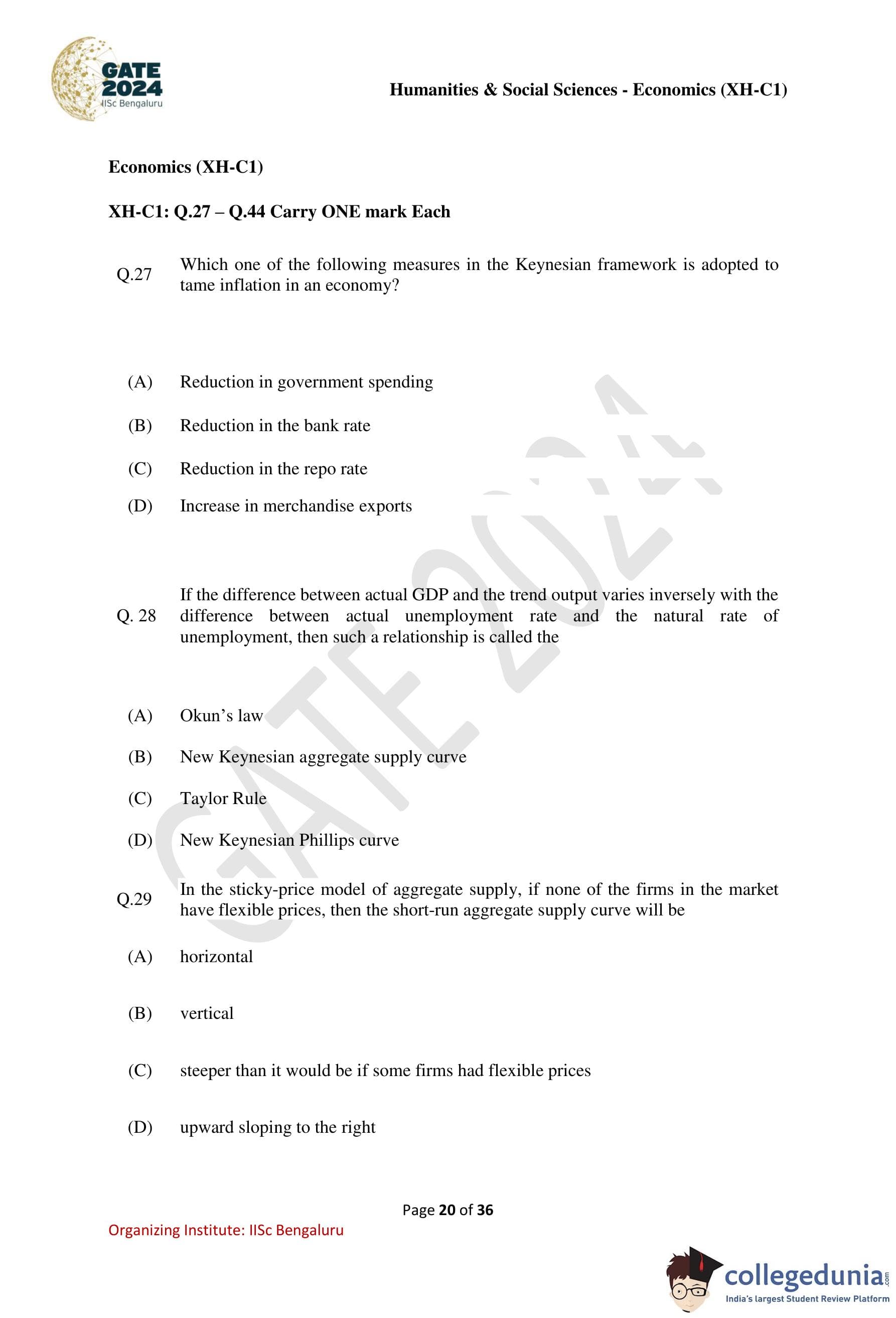 | GATE 2024 Economics (XH-C1) Question Paper with Solutions PDF | Download | Check Solutions |