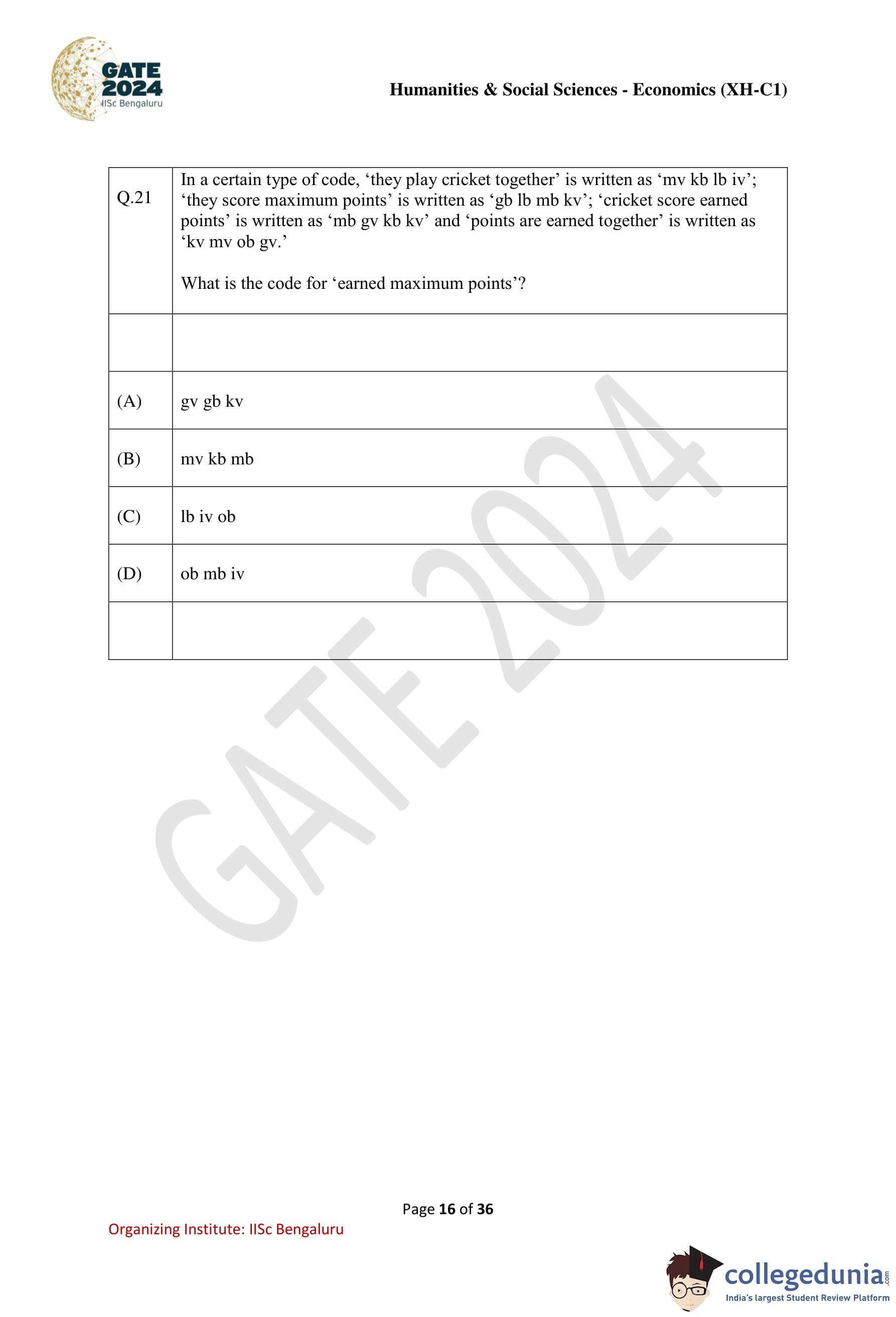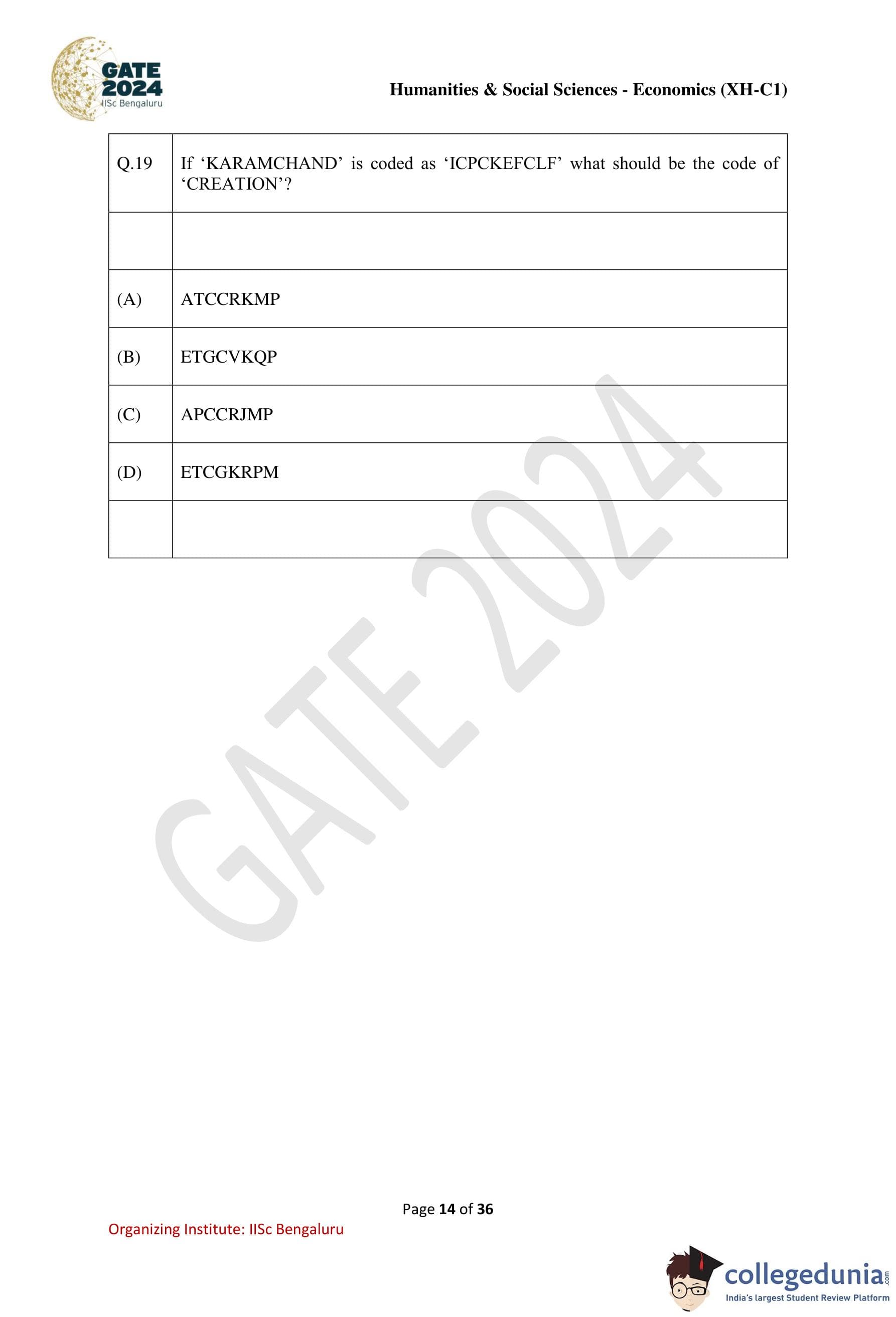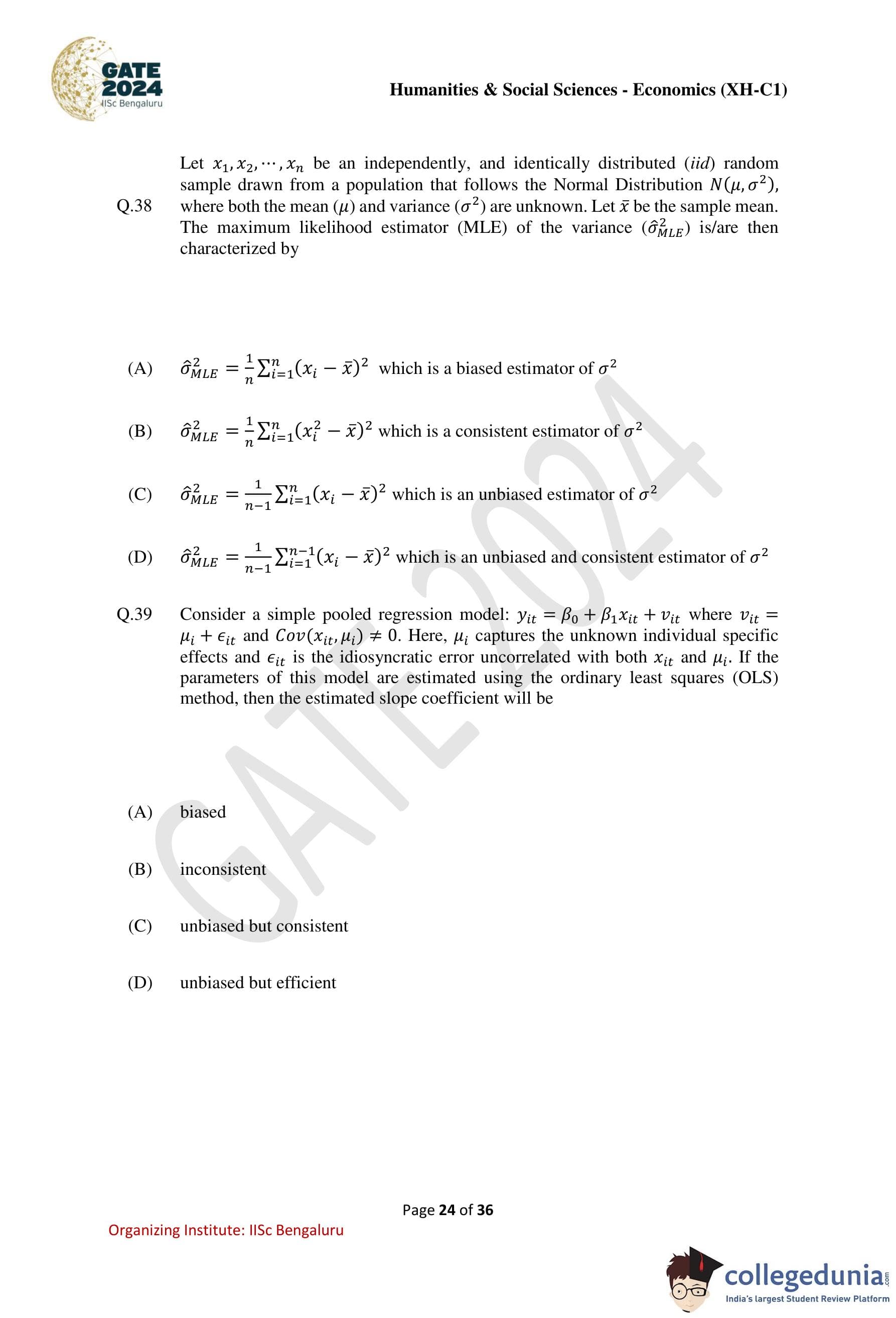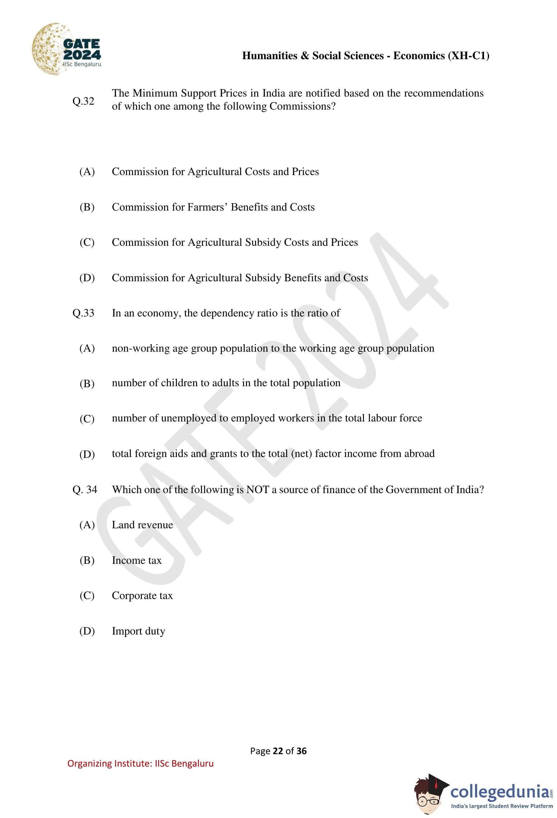 | GATE 2024 Economics (XH-C1) Question Paper with Solutions PDF | Download | Check Solutions |