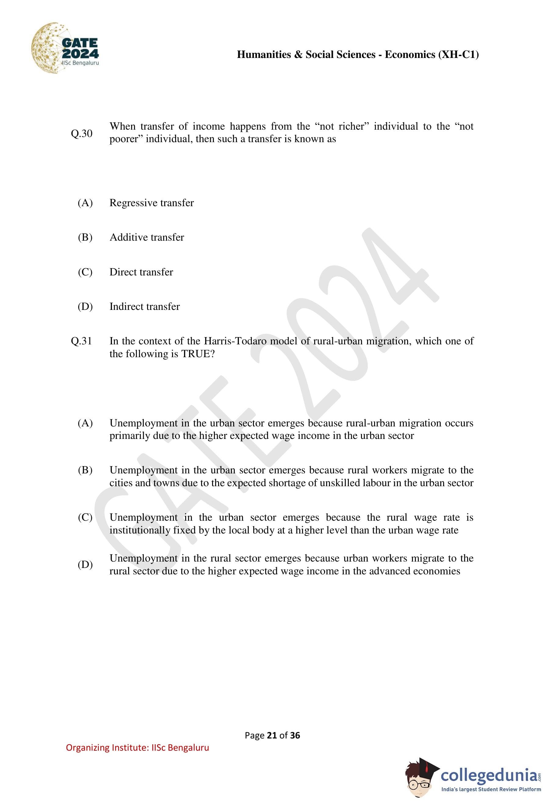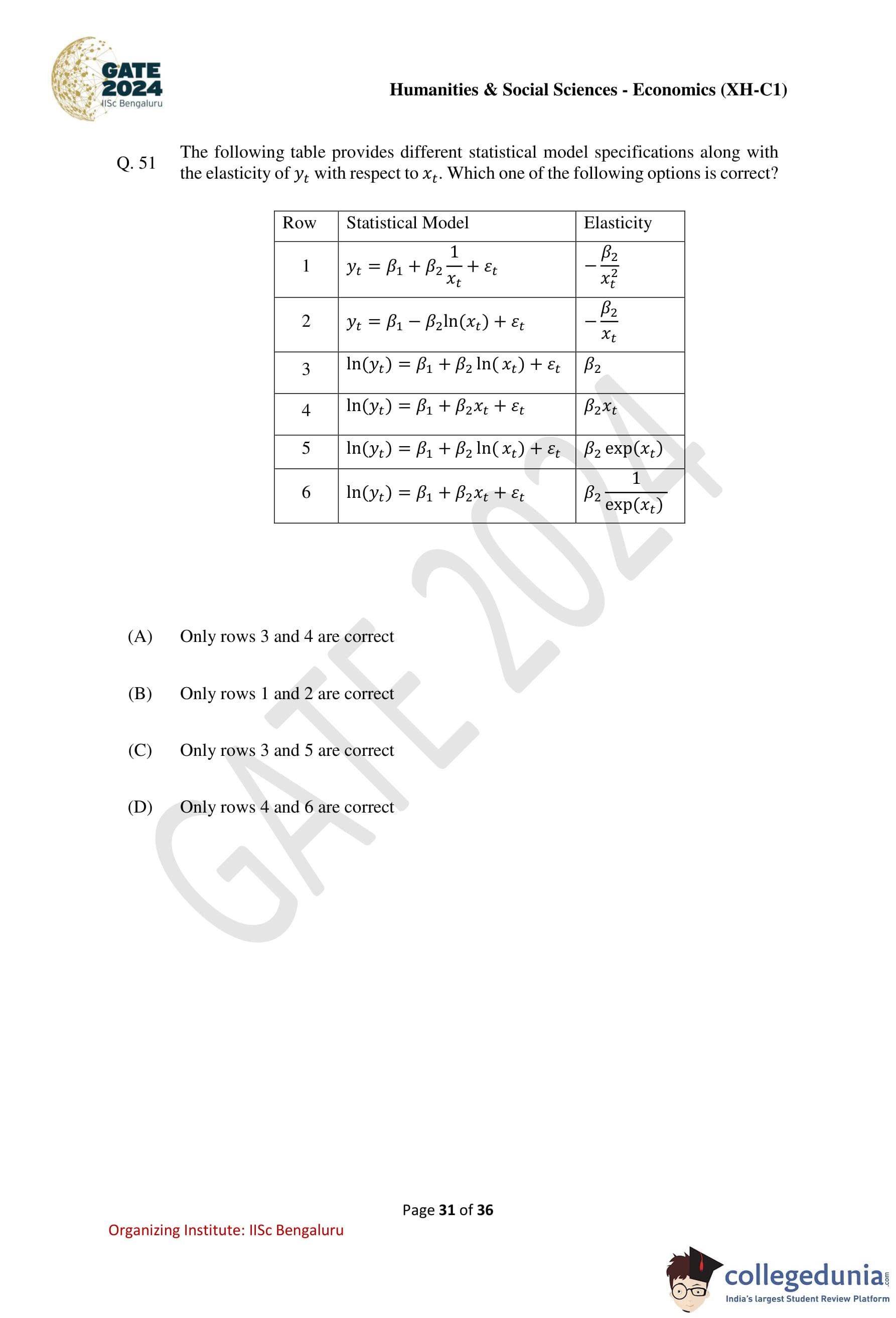 GATE 2024 Economics (XH-C1) Question Paper with Solutions PDF
