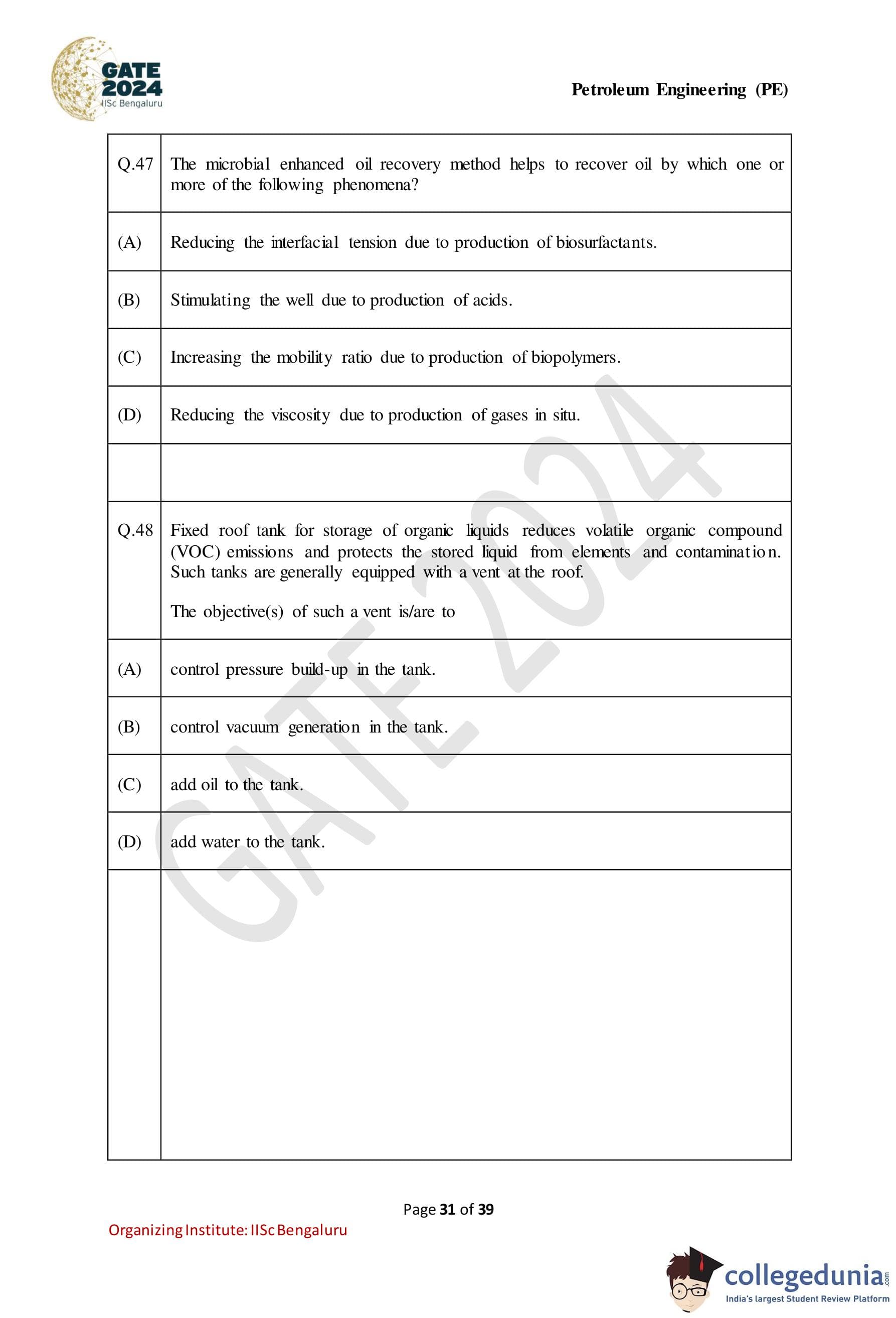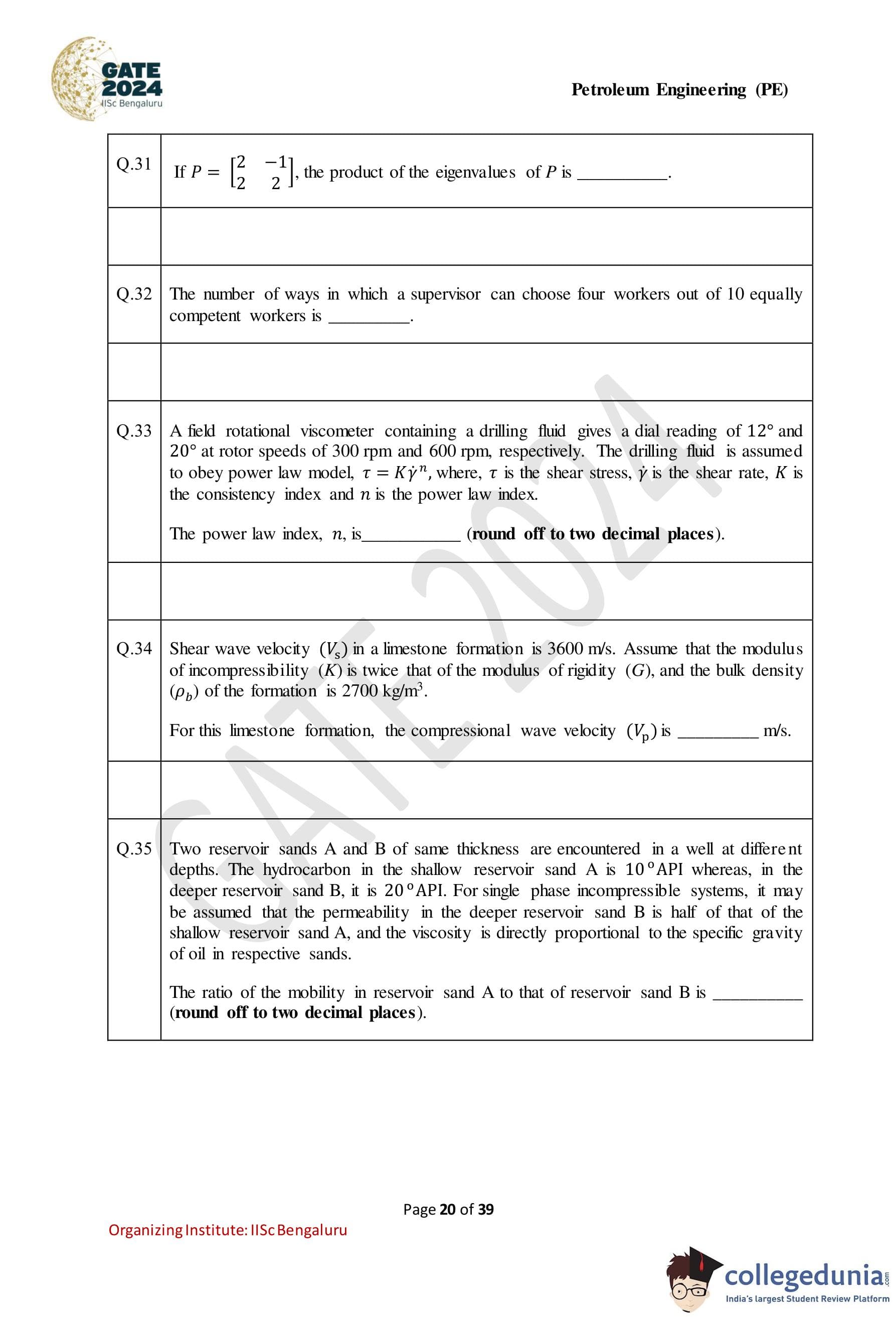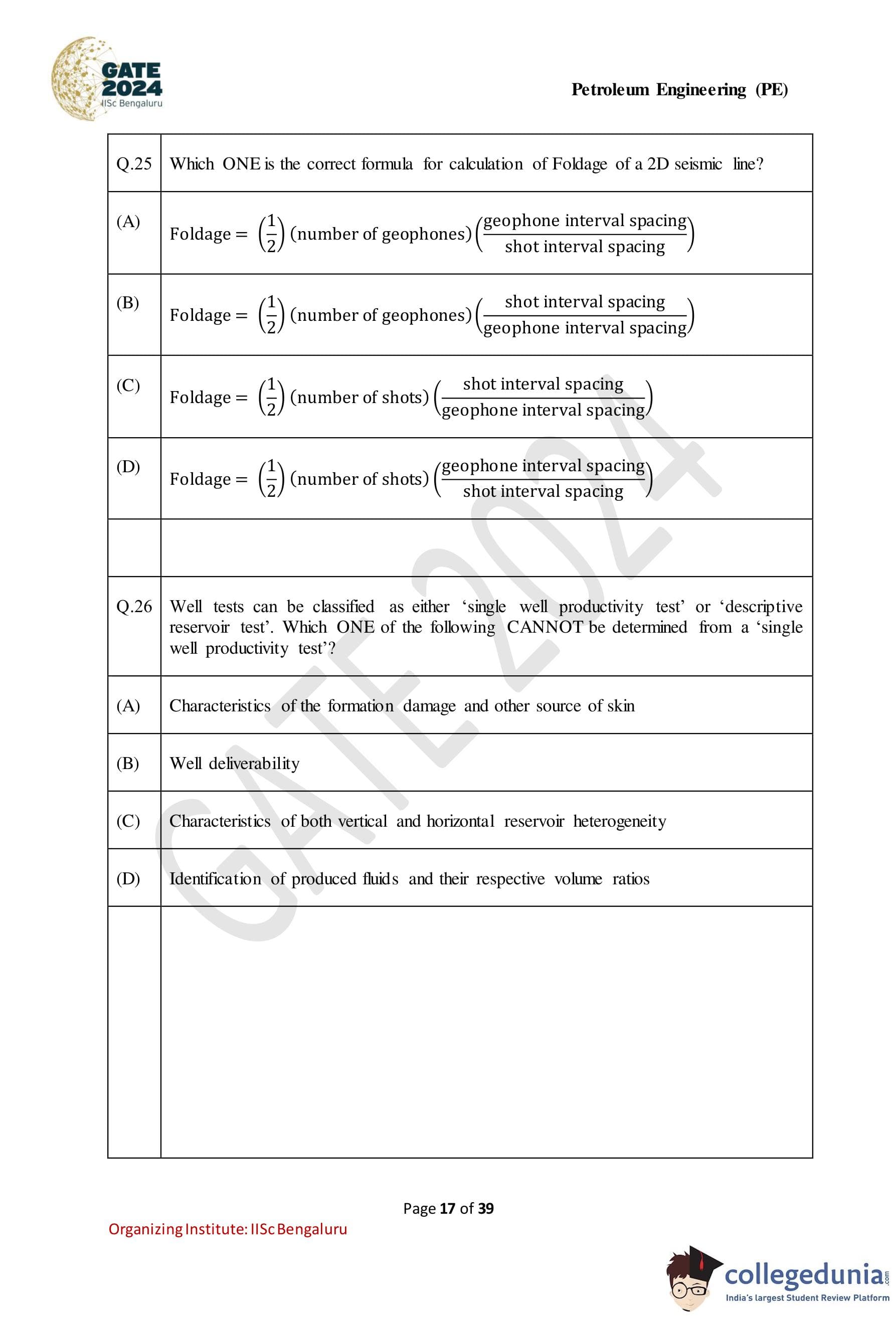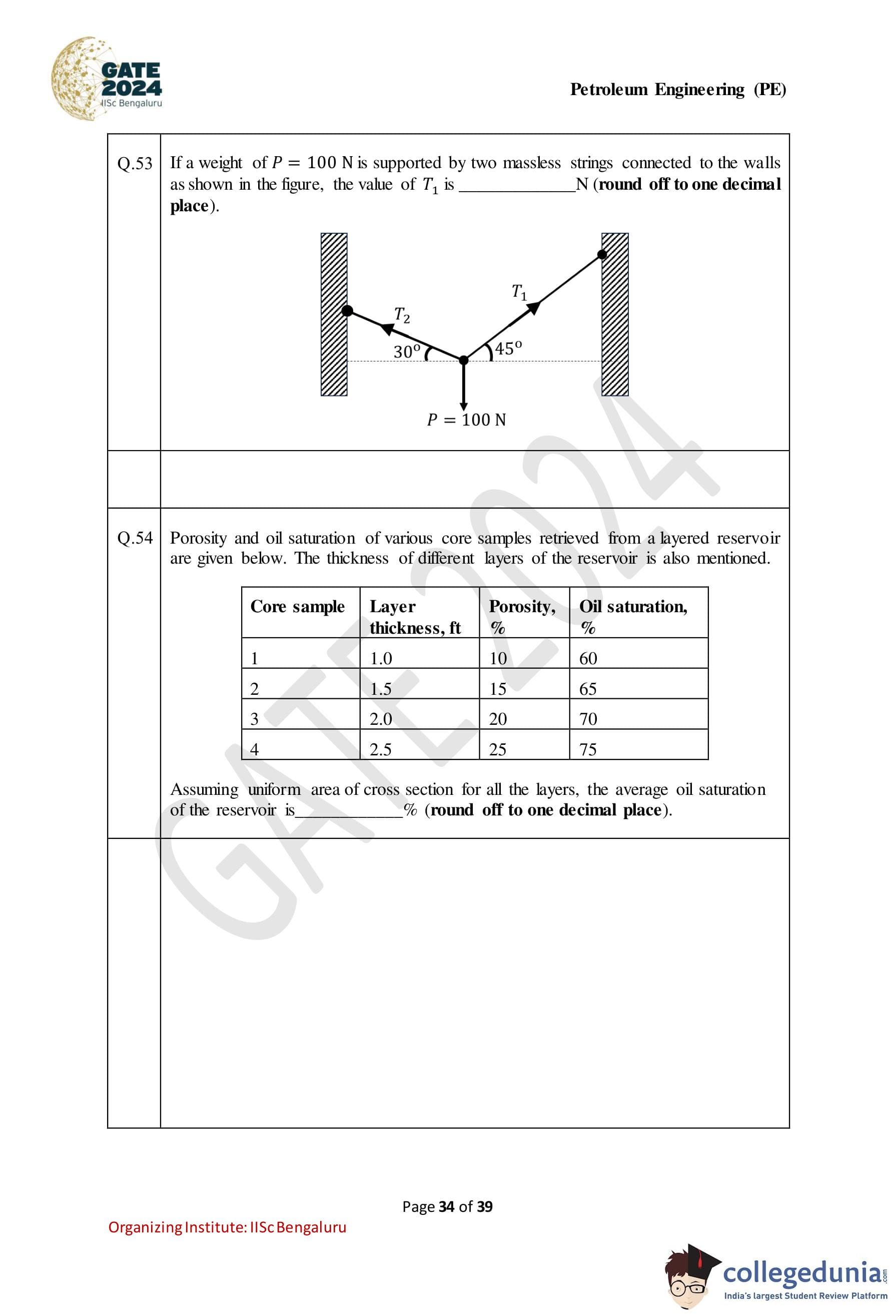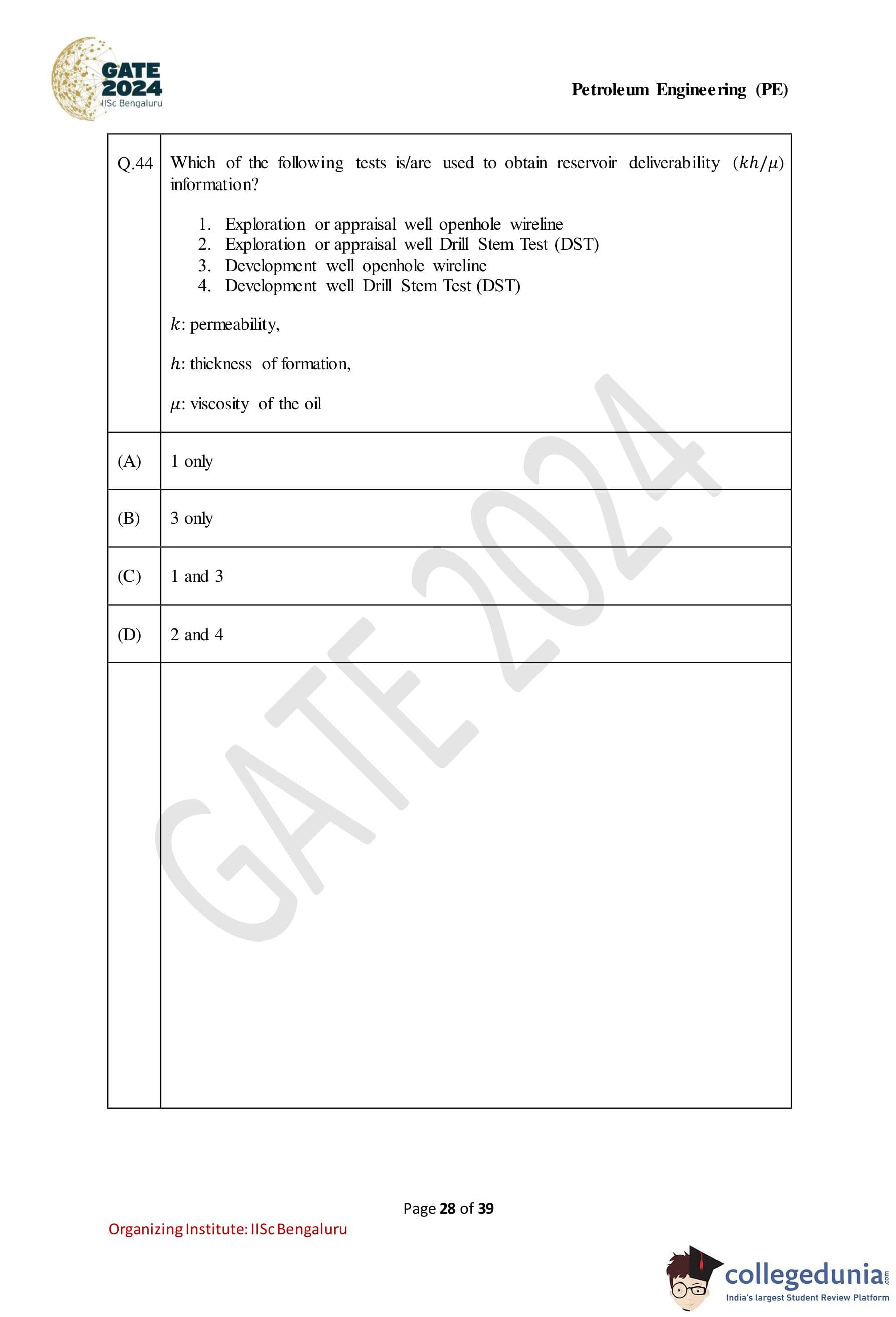 | GATE 2024 Petroleum Engineering Question Paper PDF | Check Solutions |
