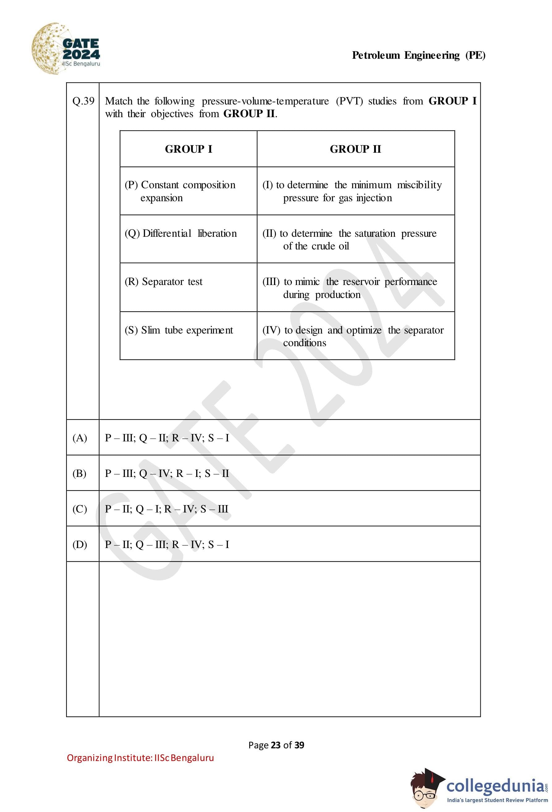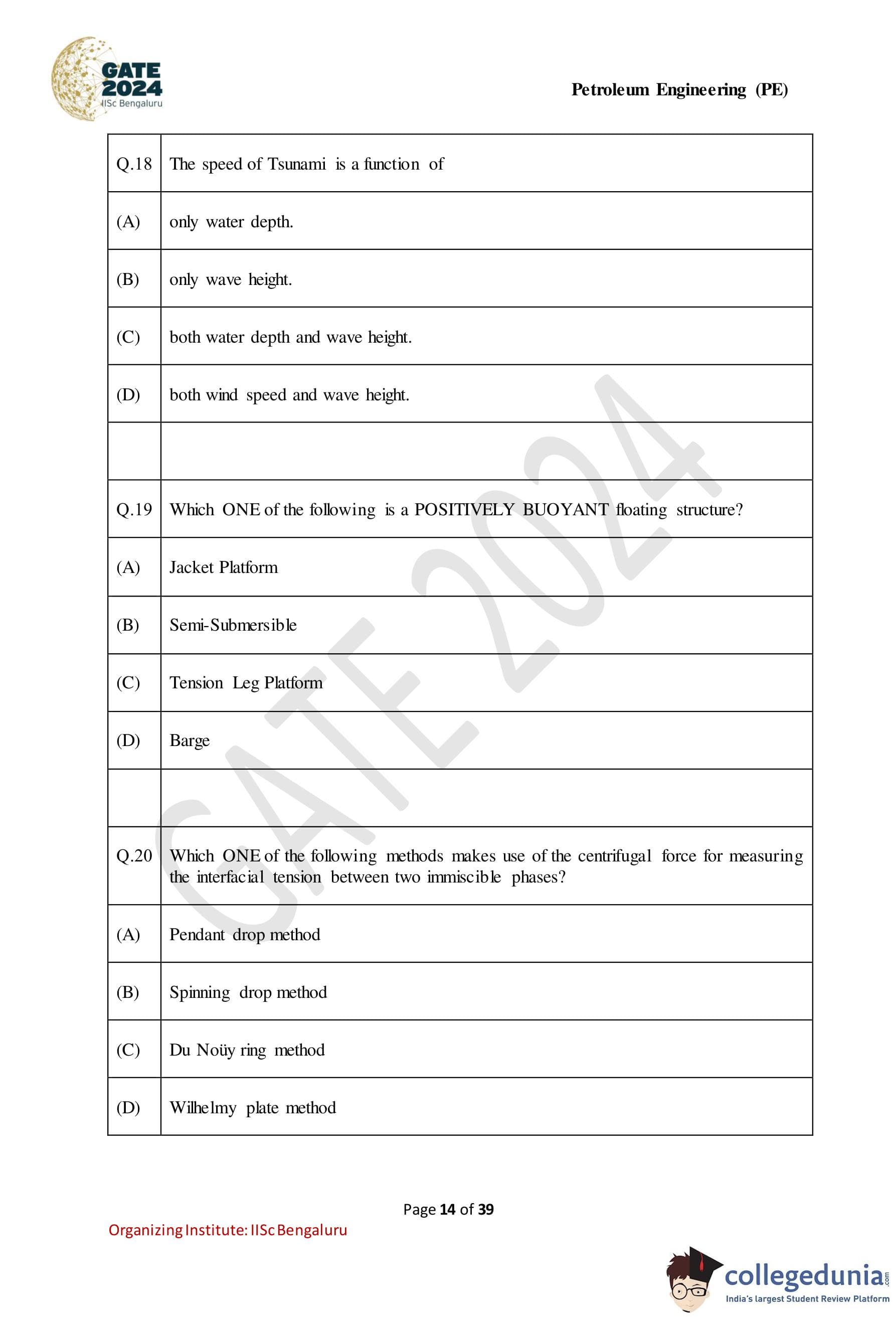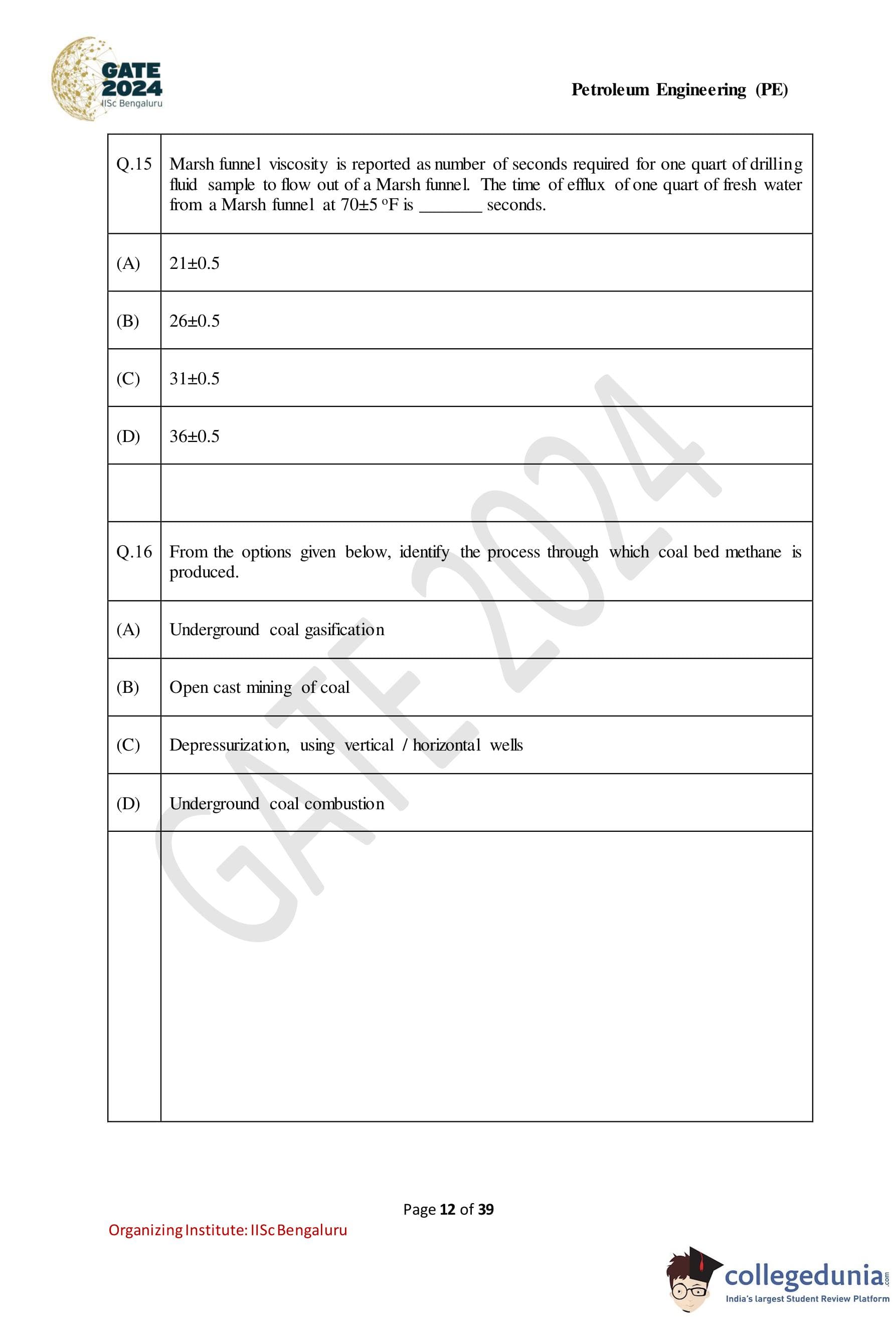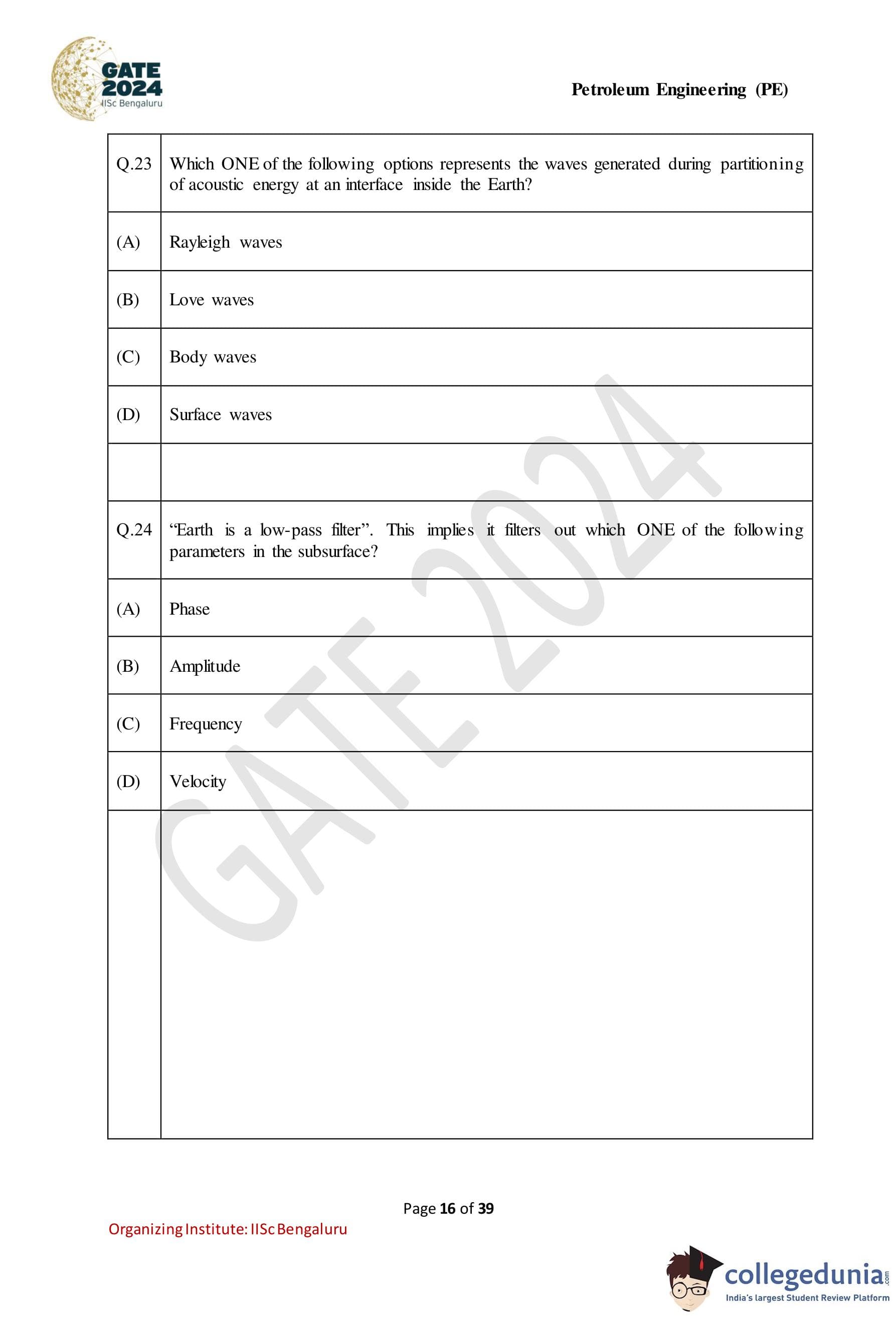 | GATE 2024 Petroleum Engineering Question Paper PDF | Check Solutions |