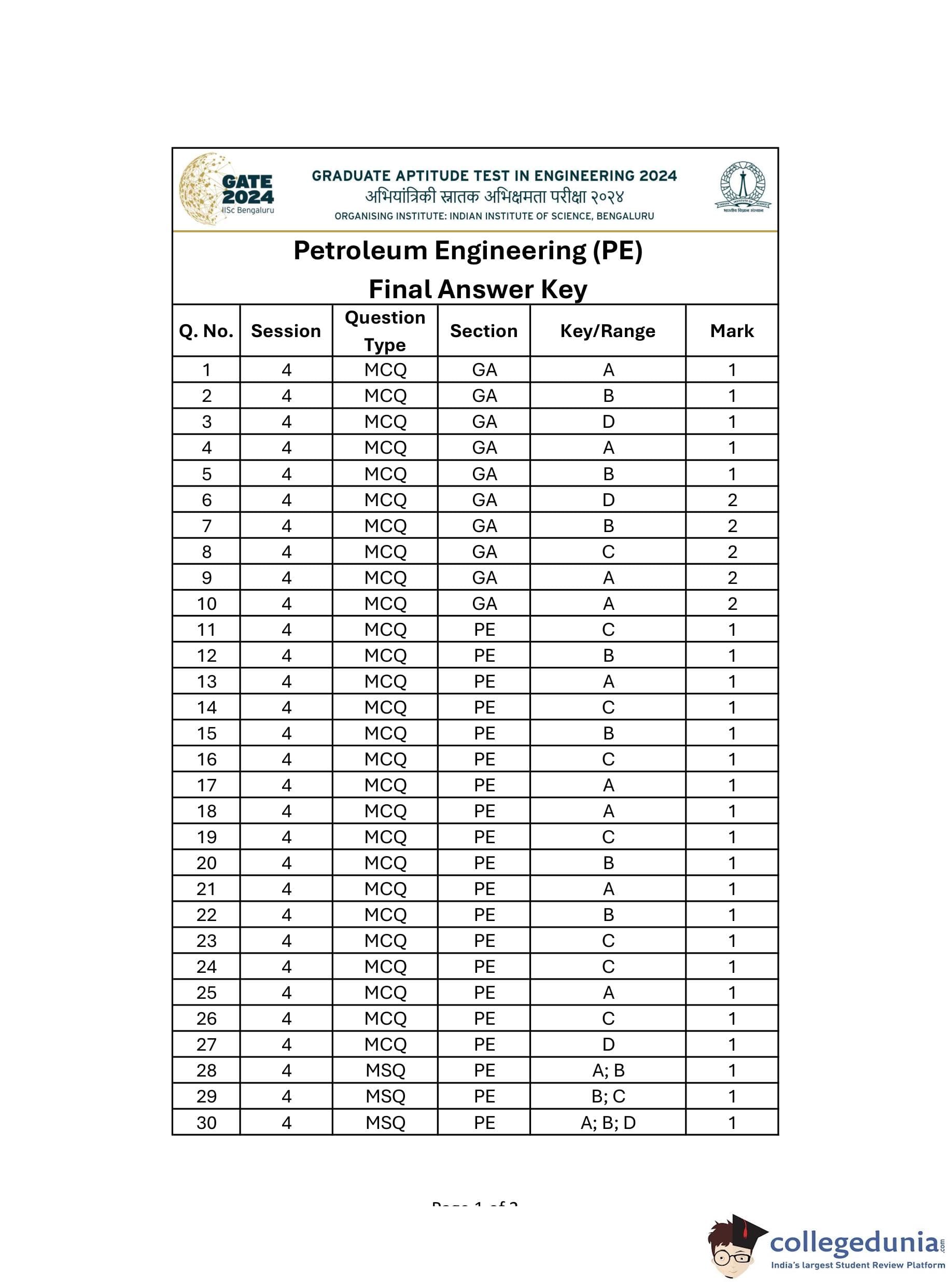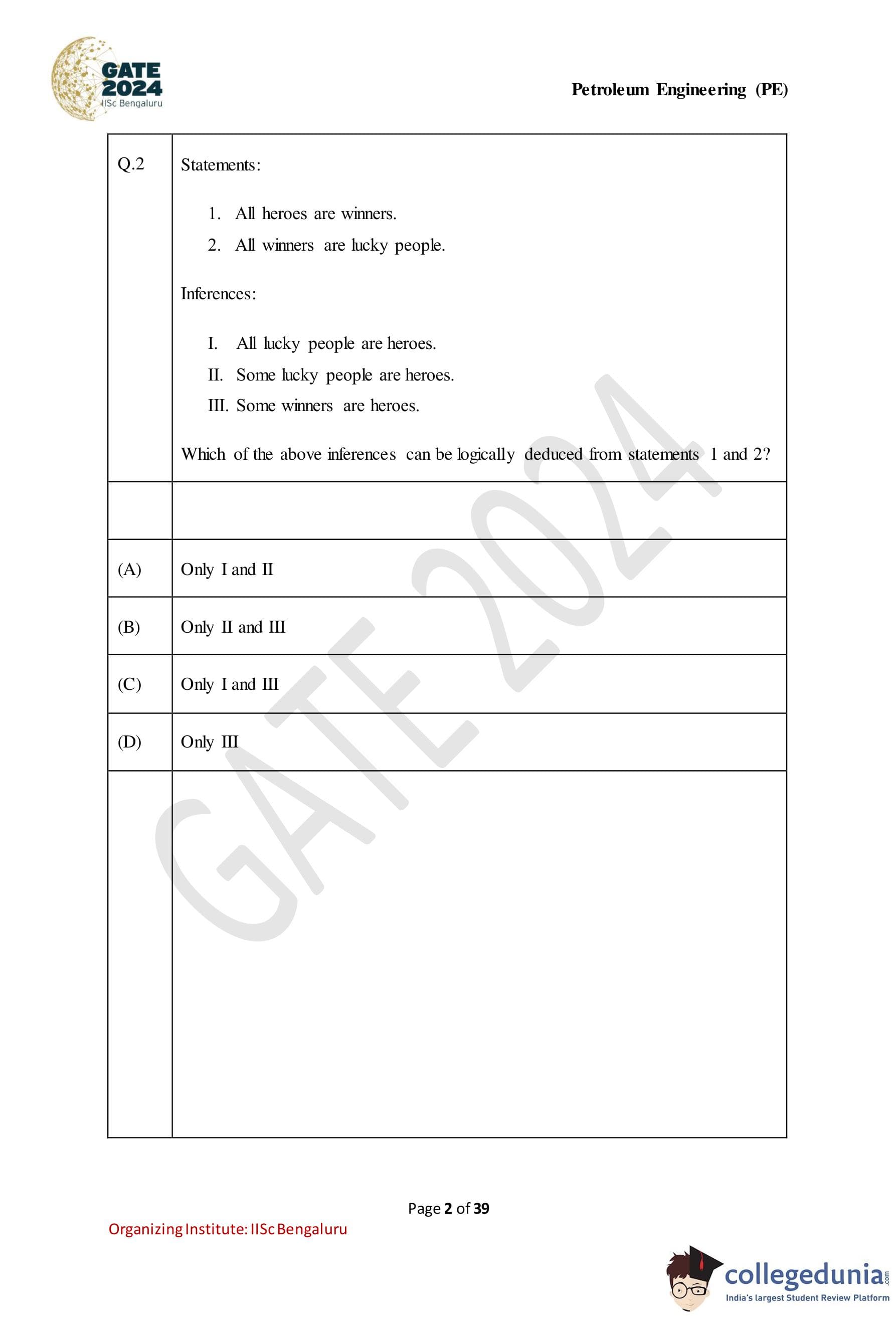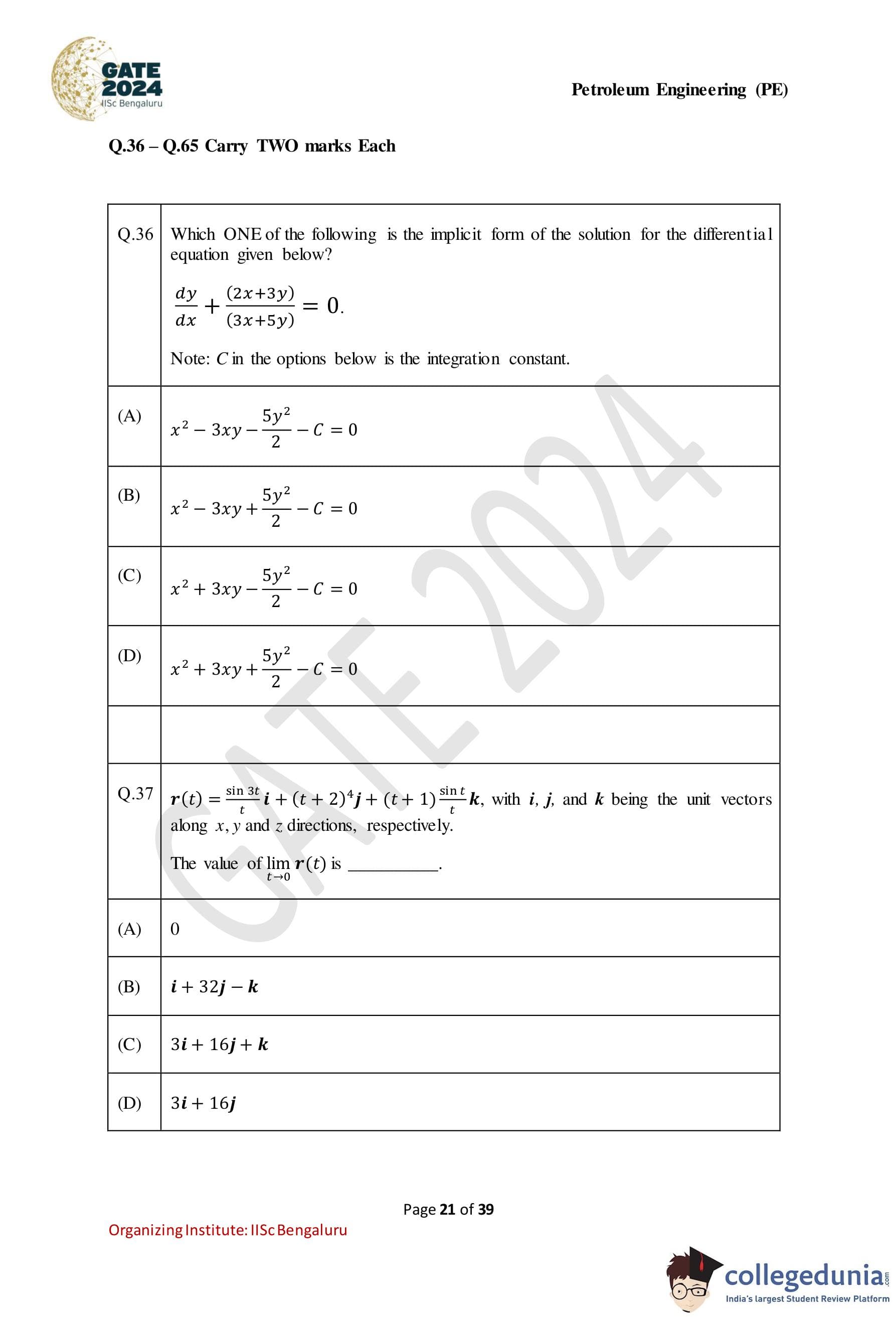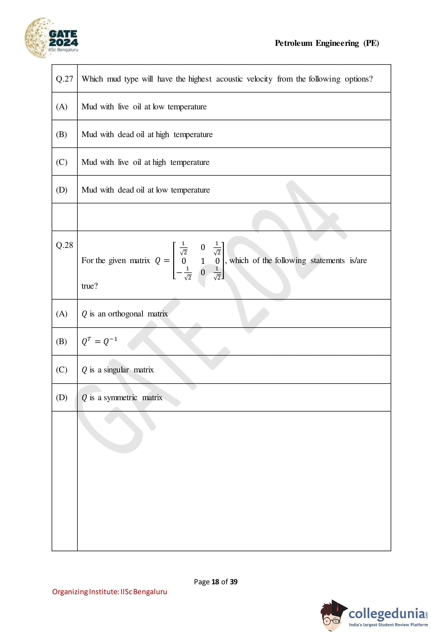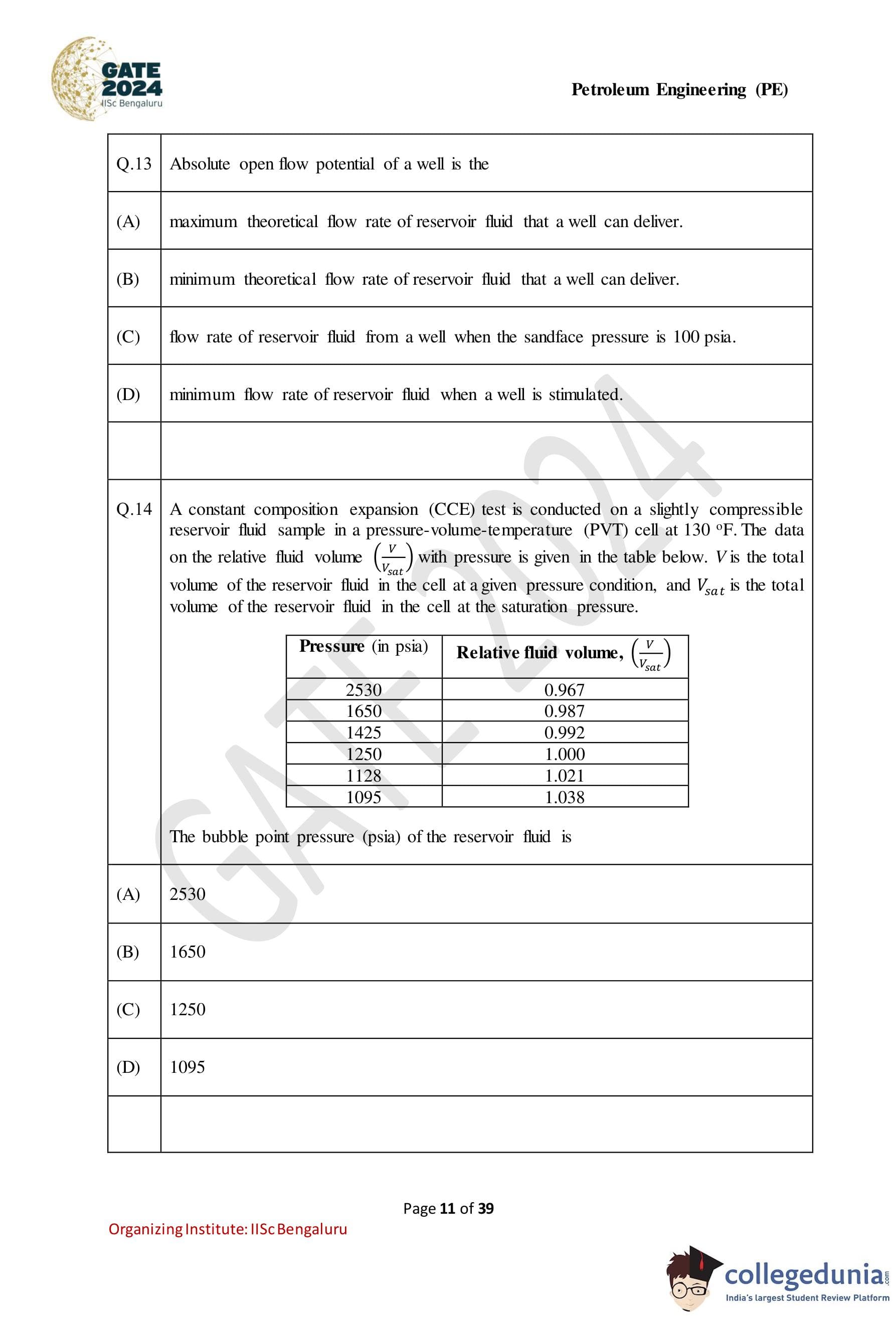 | GATE 2024 Petroleum Engineering Question Paper PDF | Check Solutions |