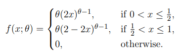 Since \(X_1, X_2, X_3, X_4\) are uniformly distributed over \((0, \theta)\), the maximum \(X_{(4)}\) has the cumulative distribution function (CDF): \[ F_{X_{(4)}}(x) = \left(\frac{x}{\theta}\right)^4, \quad for 0 \leq x \leq \theta. \]