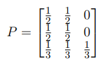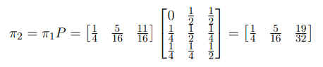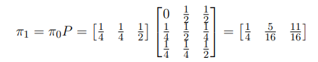\[ \pi_0 = \begin{bmatrix} \frac{1}{4} & \frac{1}{4} & \frac{1}{2} \end{bmatrix} \]