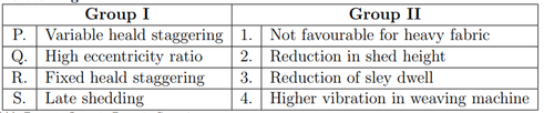 Group I lists weaving machine-related parameters, and Group II contains the shortcomings of these parameters. Match the machine-related parameter with its shortcoming.