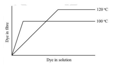 Consider the following equilibrium dyeing isotherms for dyeing of polyester with a disperse dye at 100 °C and 120 °C. Amongst the following, the correct statement(s) is/are: