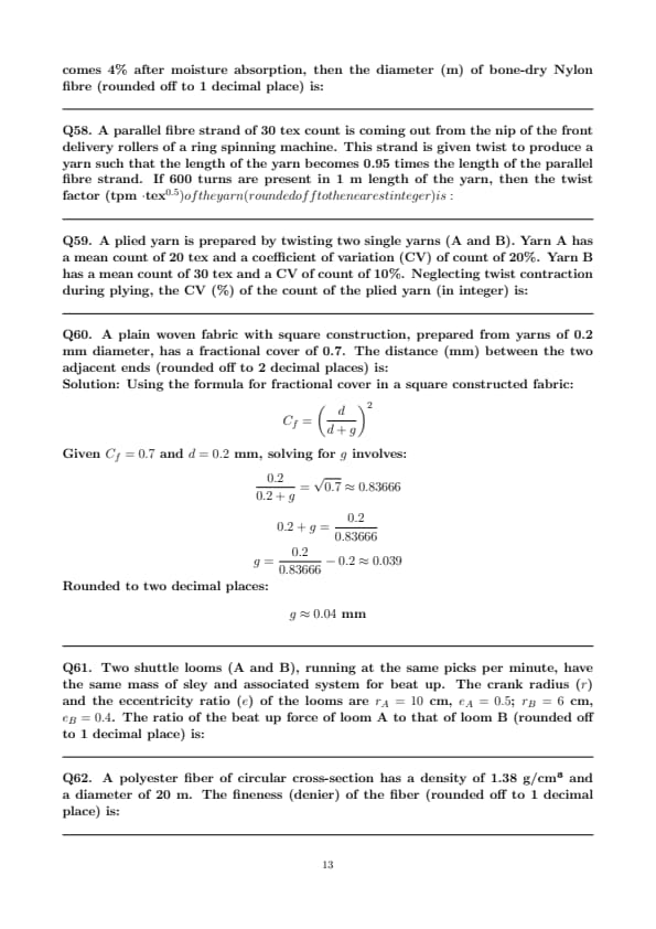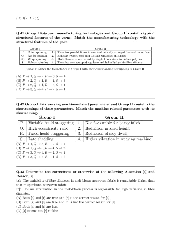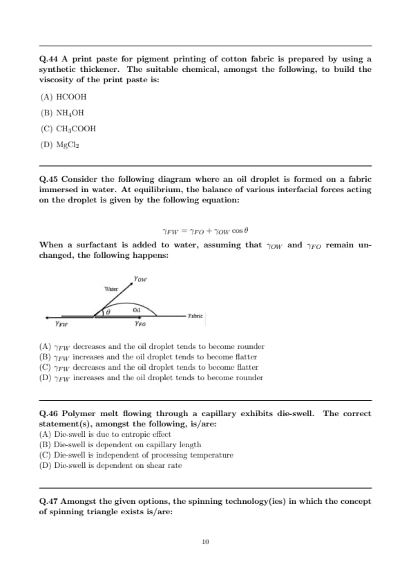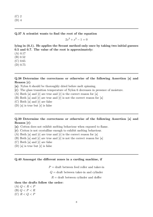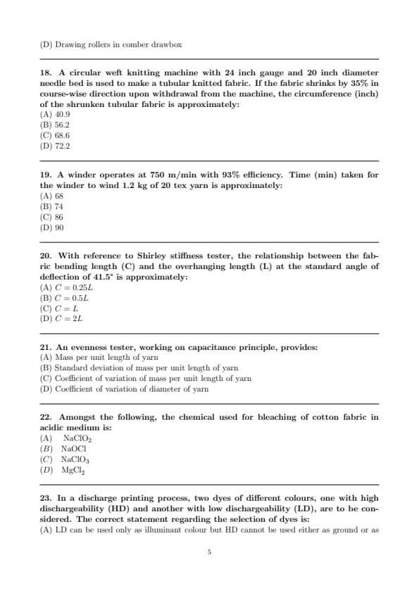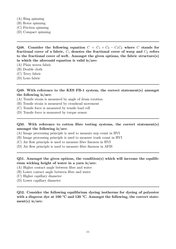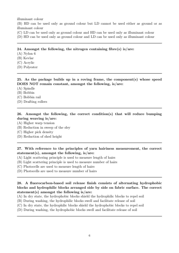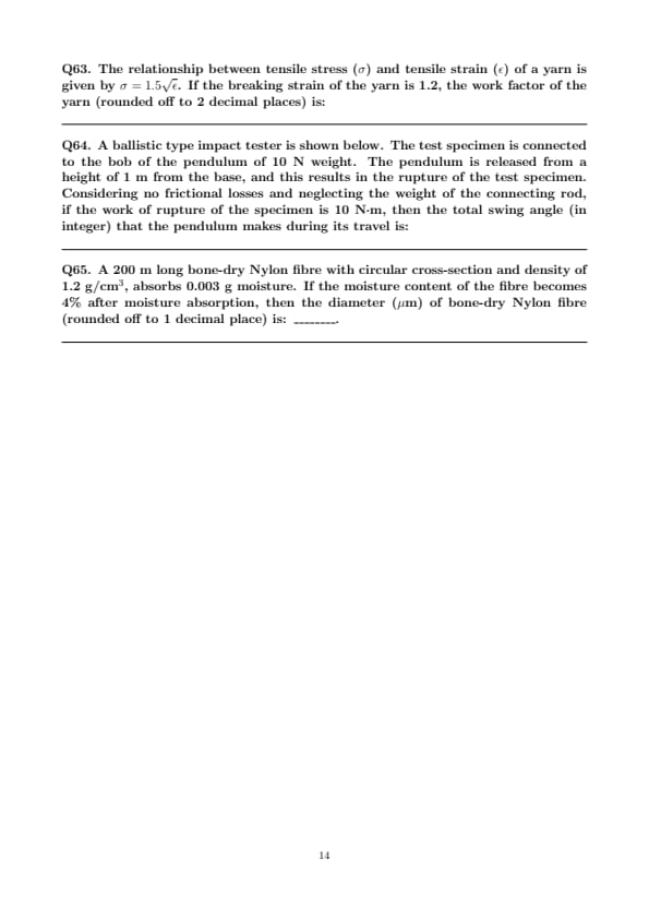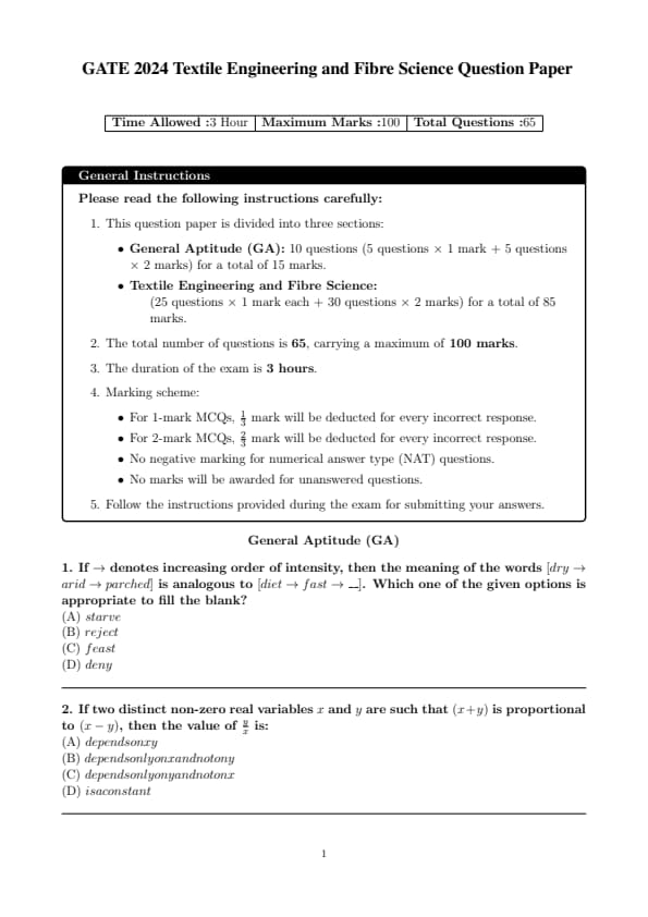 | GATE 2024 Textile Engineering and Fibre Science Question Paper with Solution PDF | Download PDF | Check Solutions |