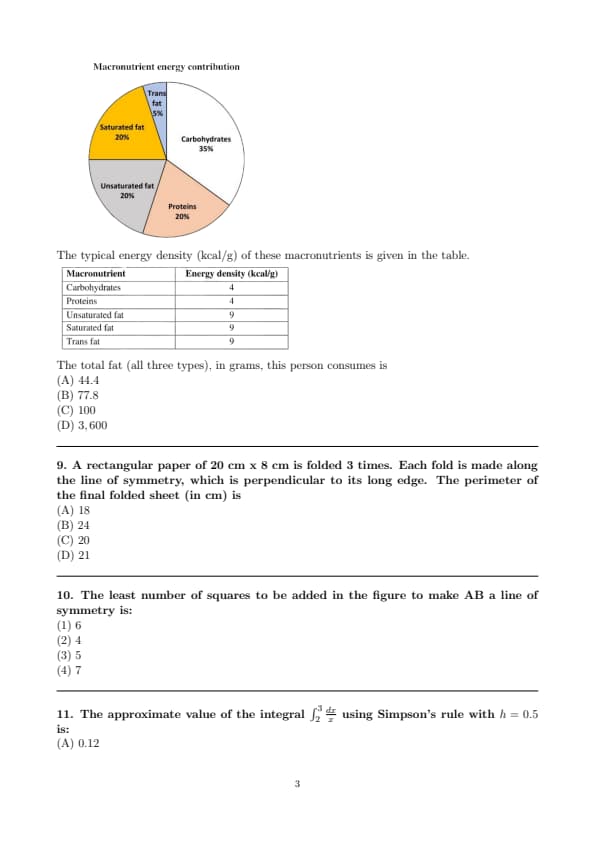 The pie chart presents the percentage contribution of different macronutrients to a typical 2,000 kcal diet of a person. The typical energy density (kcal/g) of these macronutrients is given below: