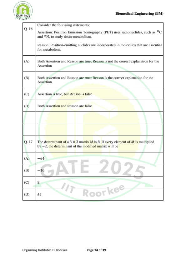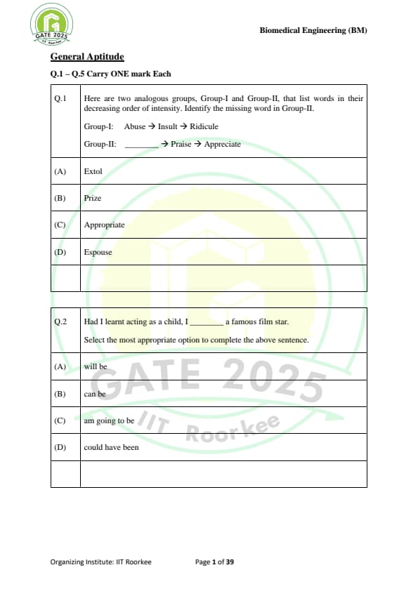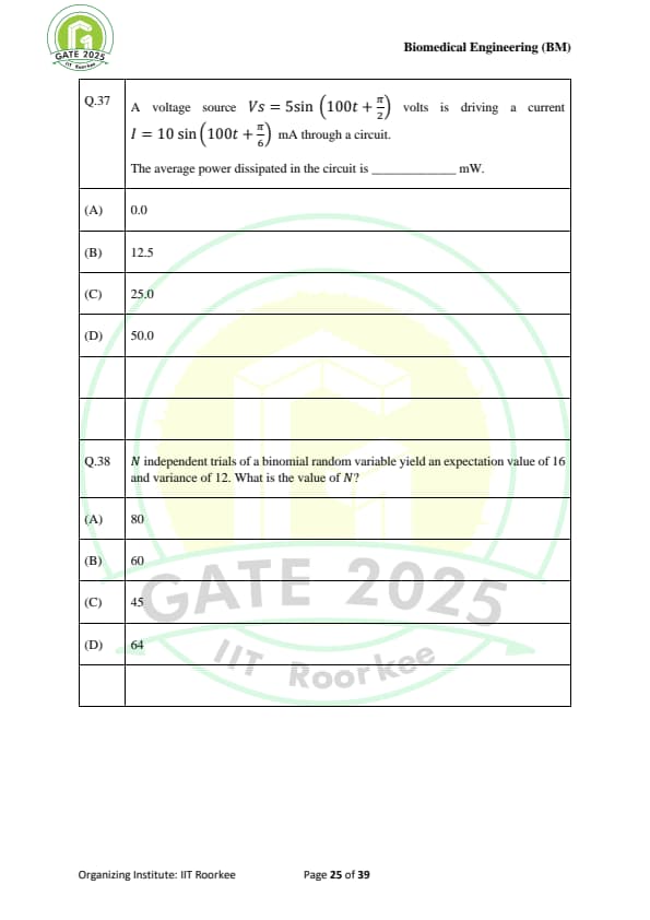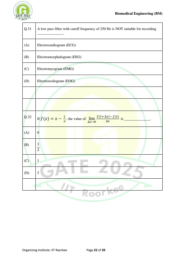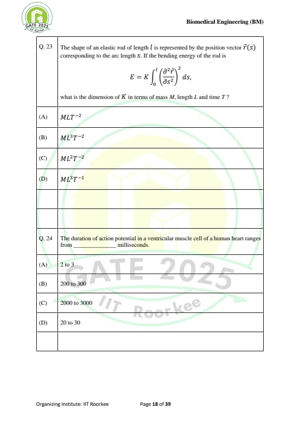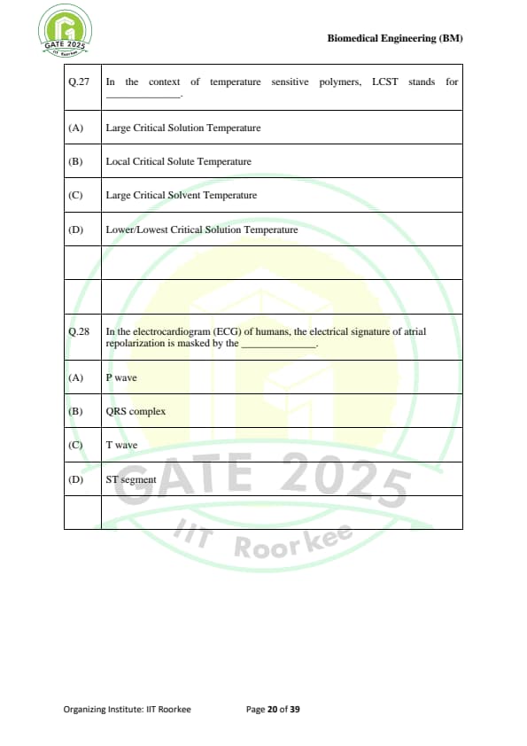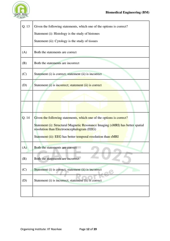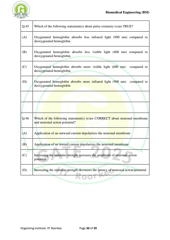| GATE 2025 BM Question Paper with Answer Key | Download | Check Solutions |