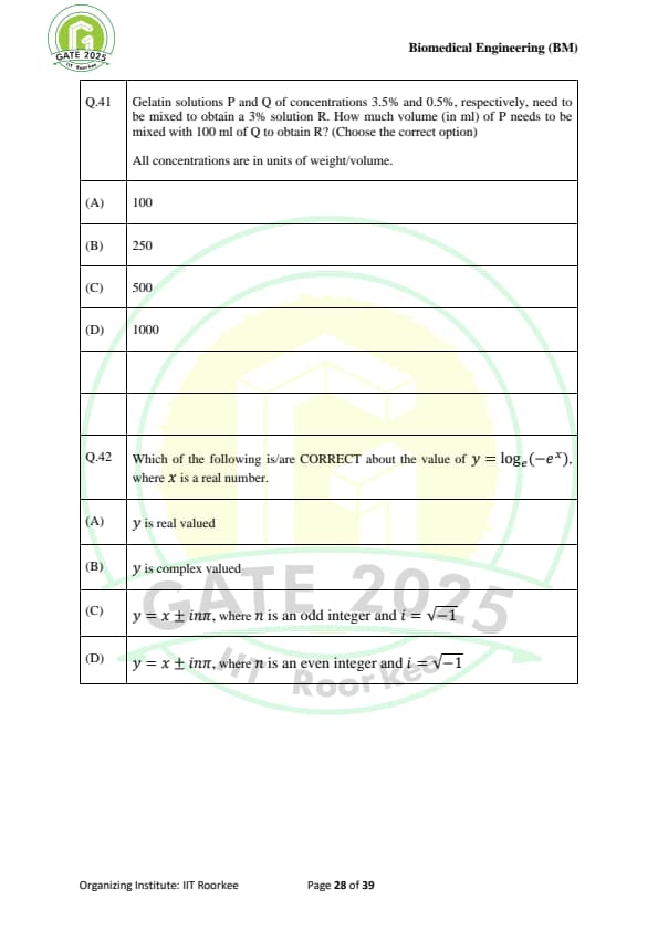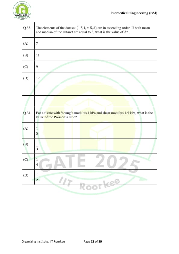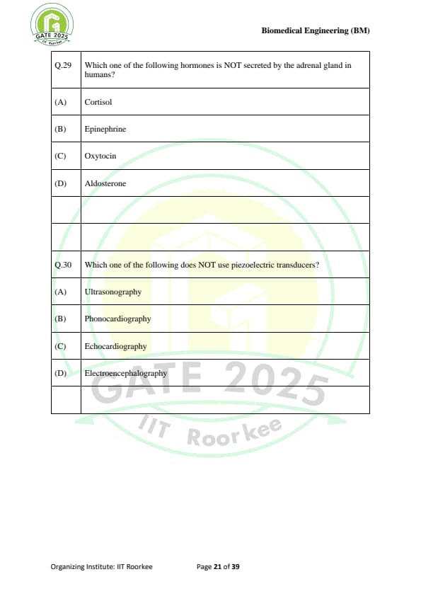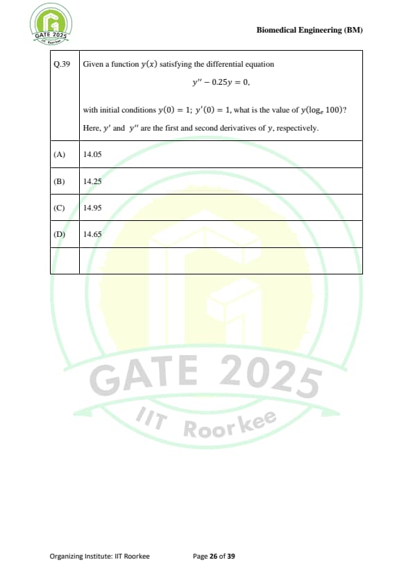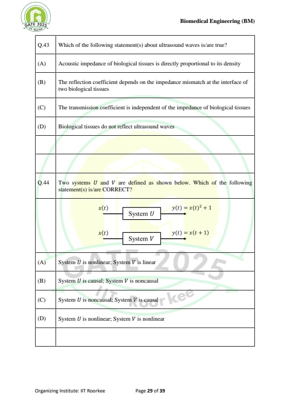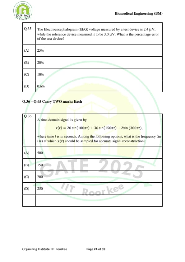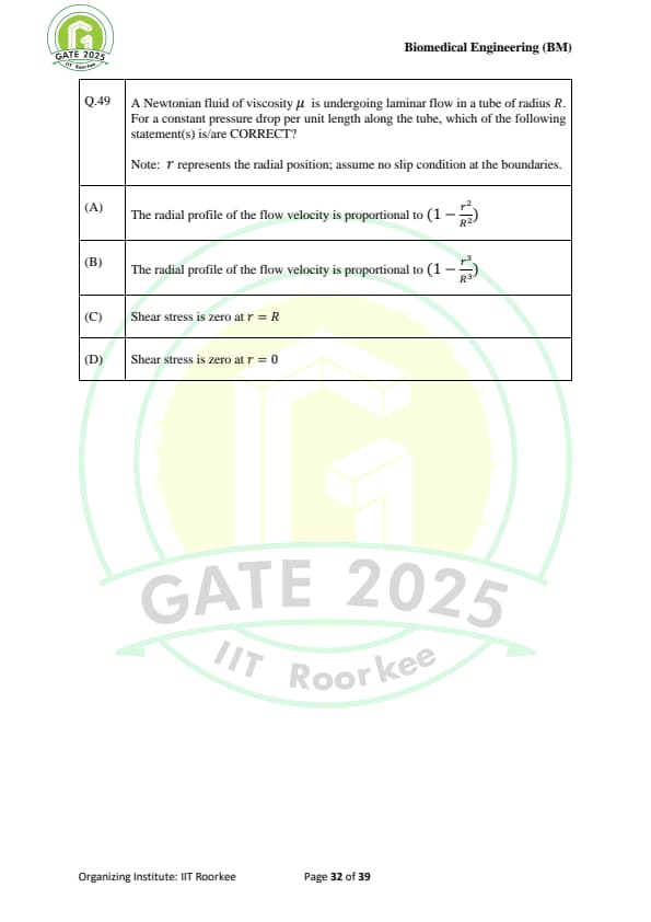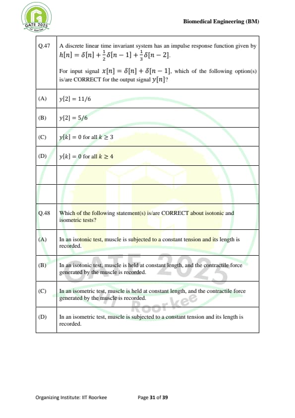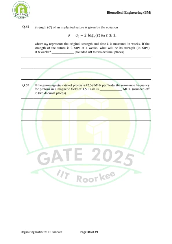| GATE 2025 BM Question Paper with Answer Key | Download | Check Solutions |