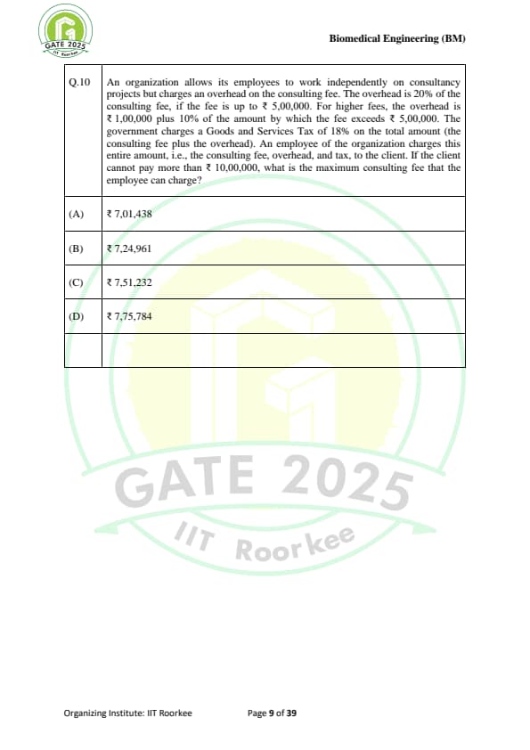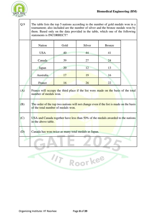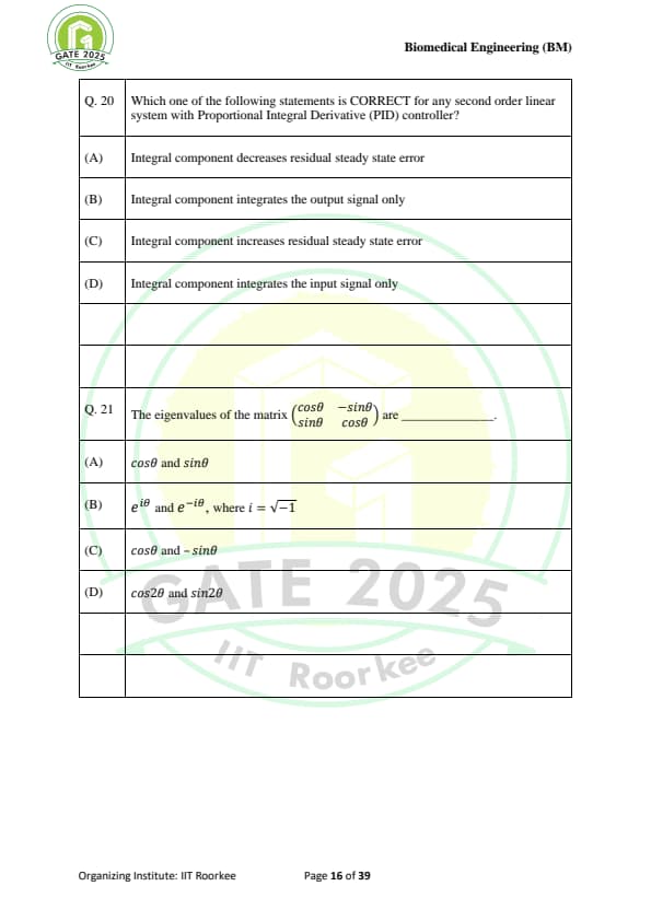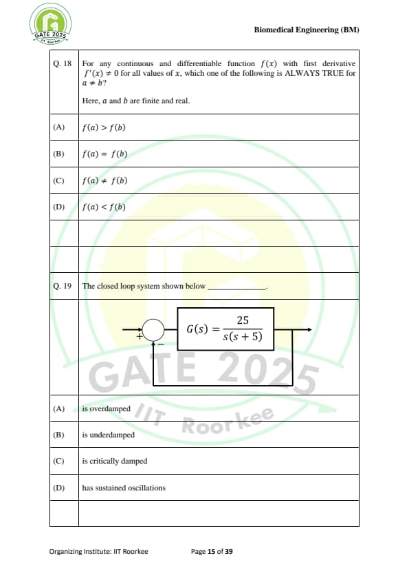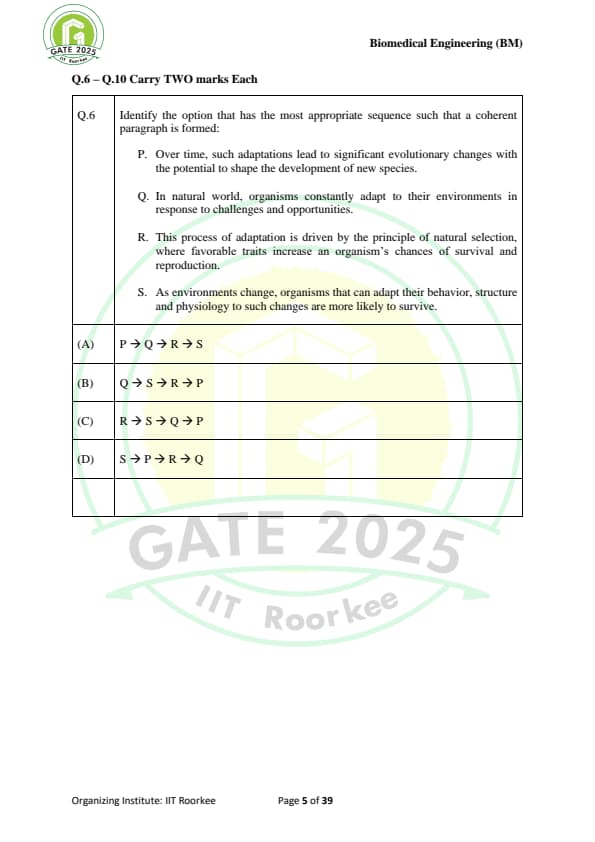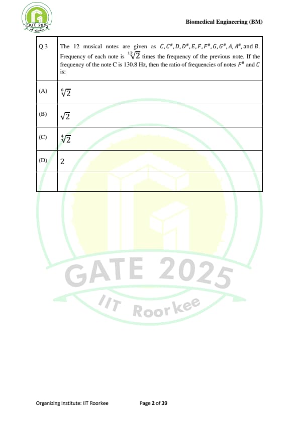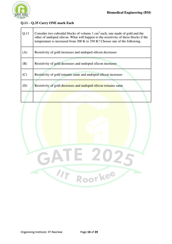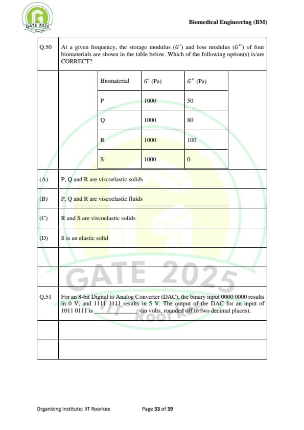 | GATE 2025 BM Question Paper with Answer Key | Download | Check Solutions |