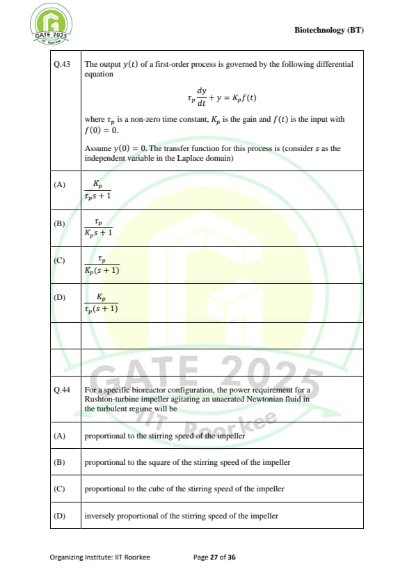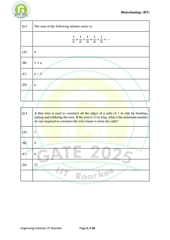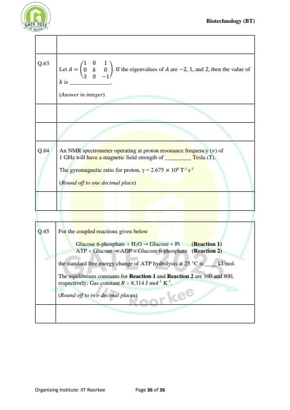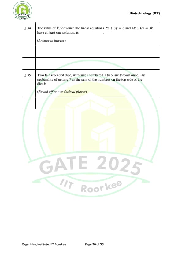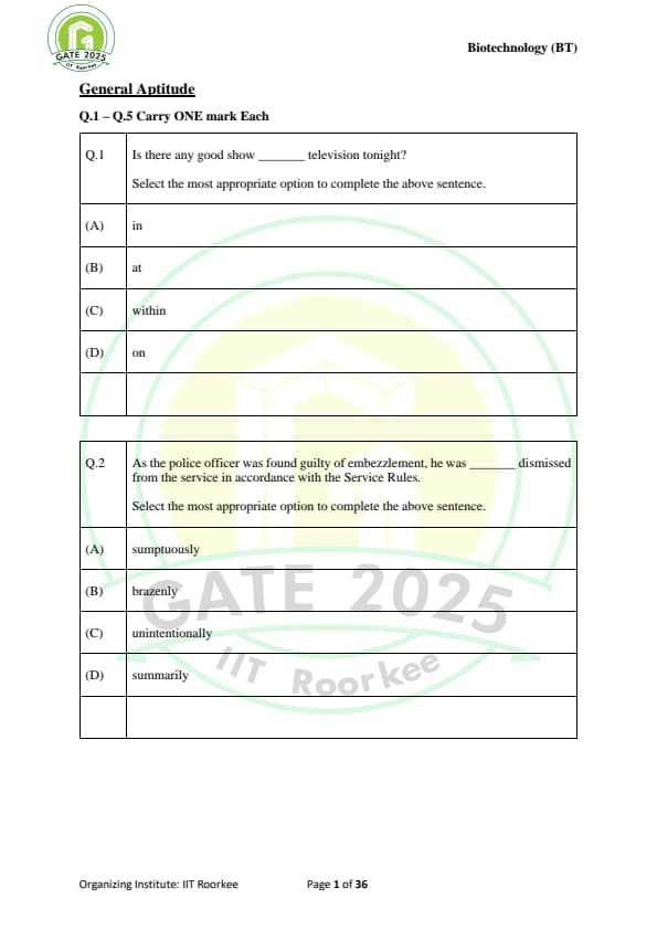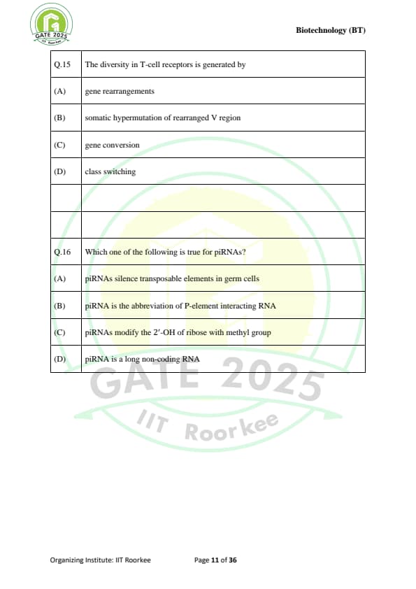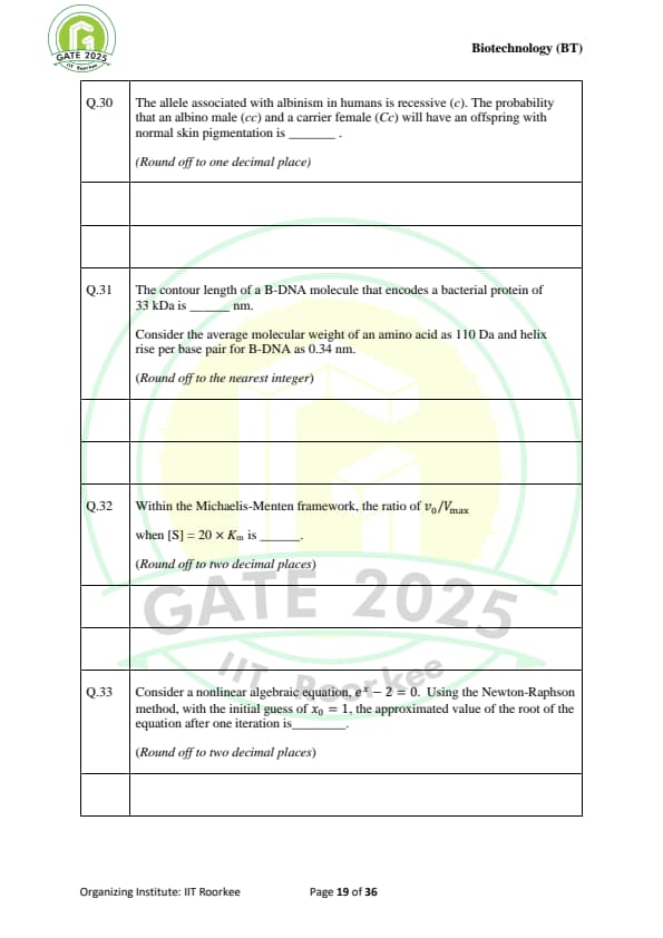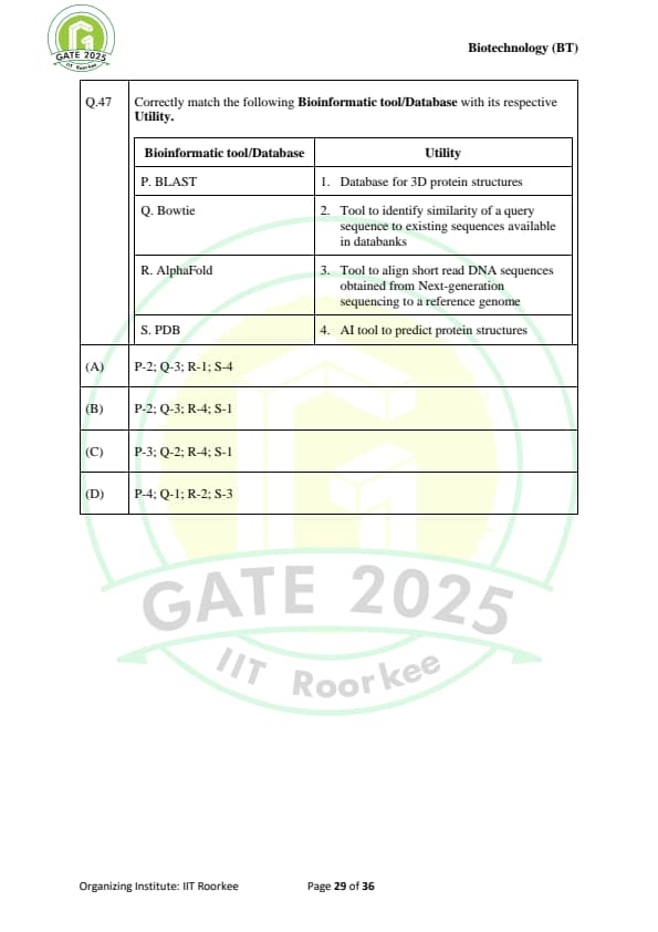| GATE 2025 BT Question Paper with Answer Key | Download | Check Solutions |