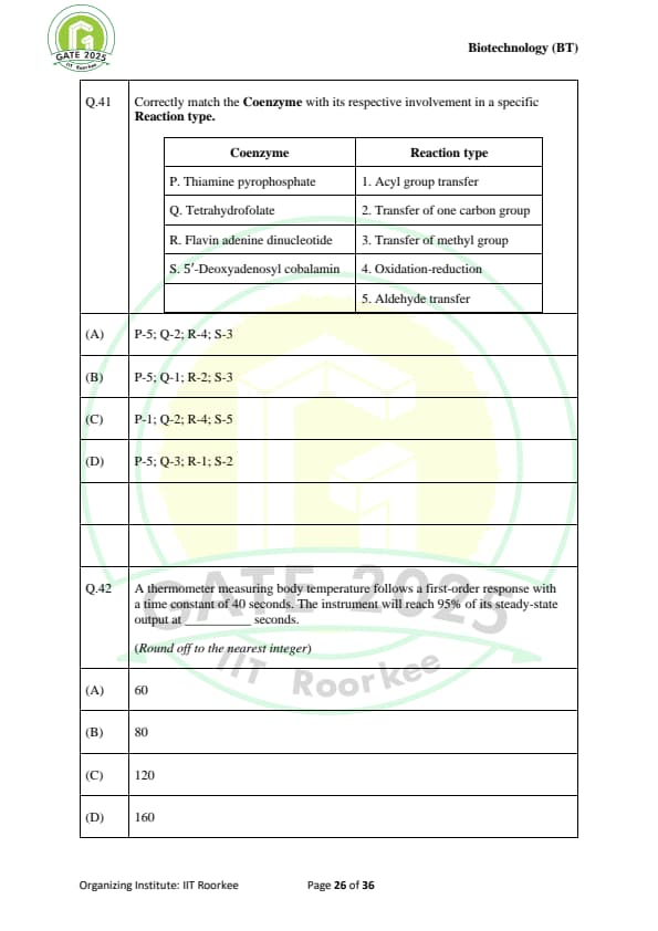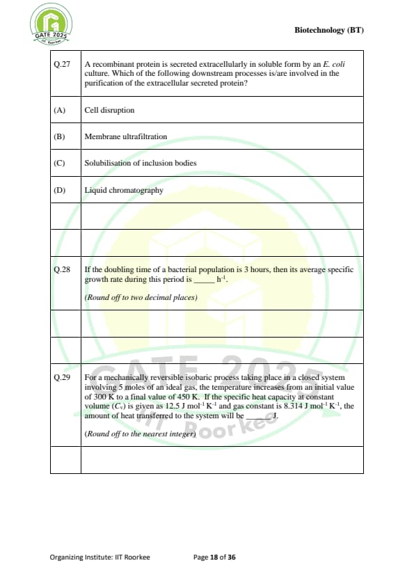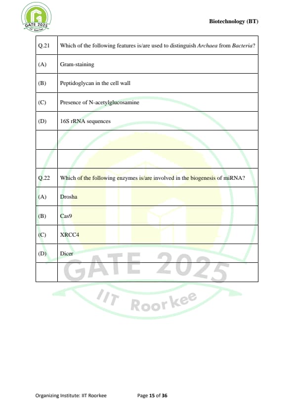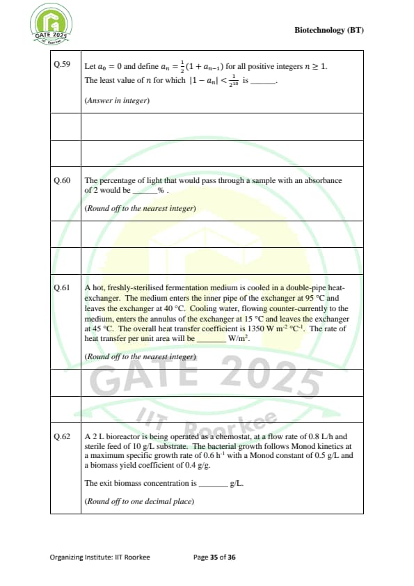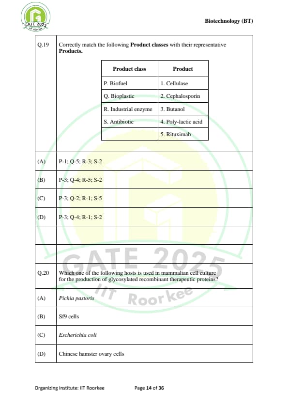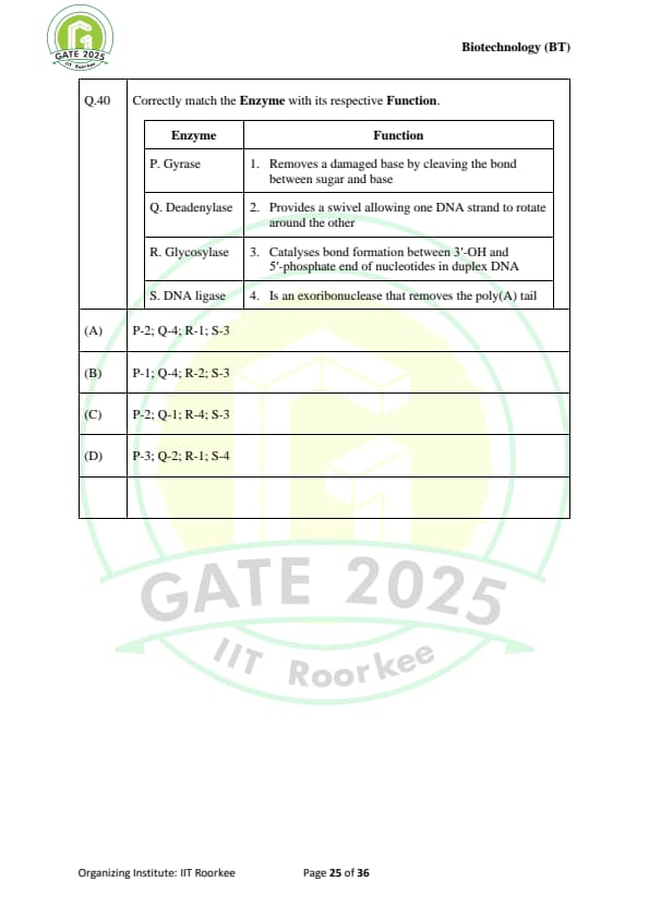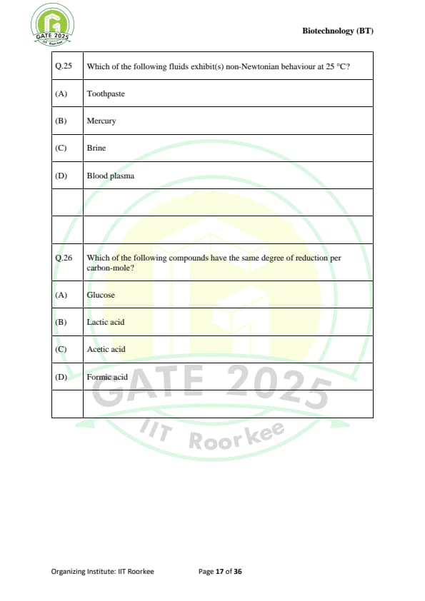 GATE 2025 BT Question Paper with Solutions