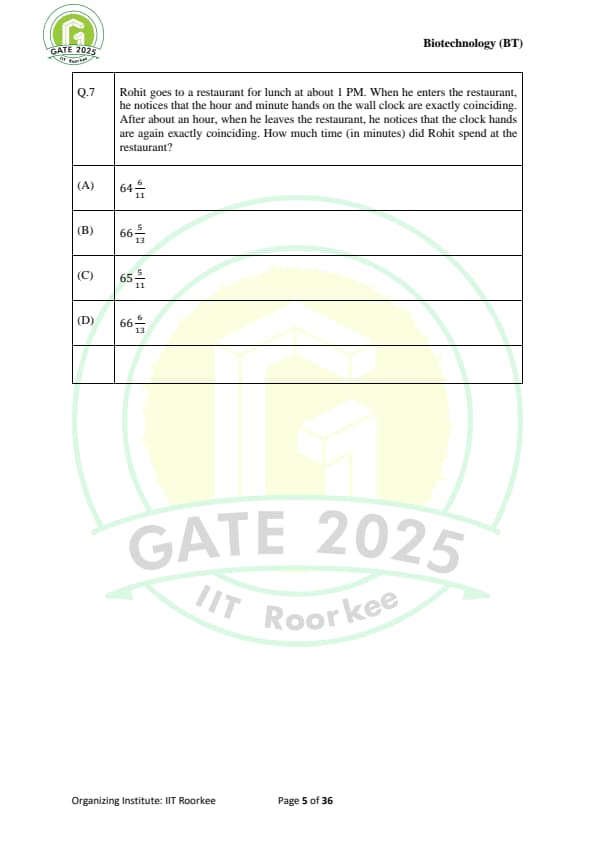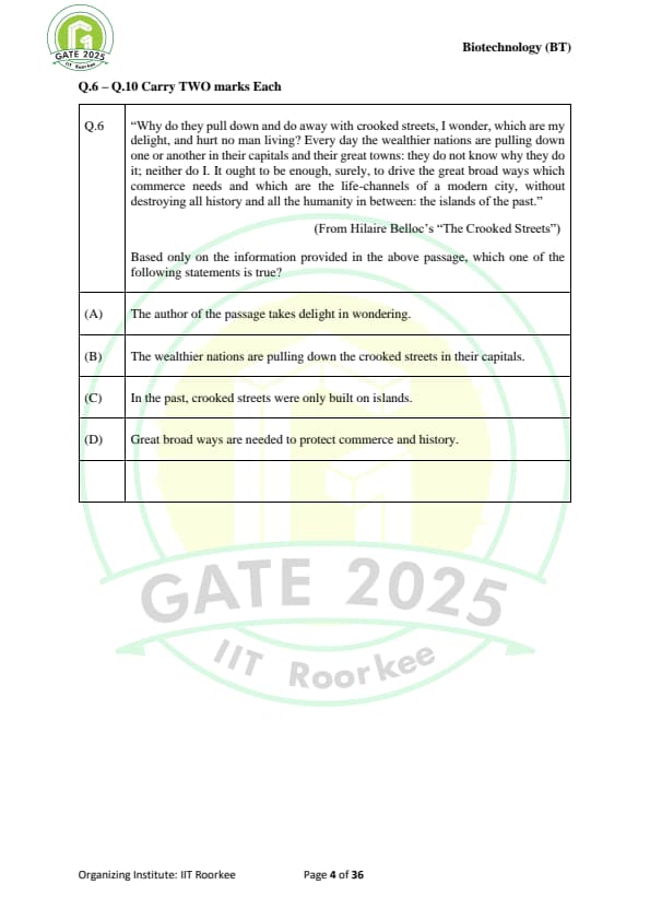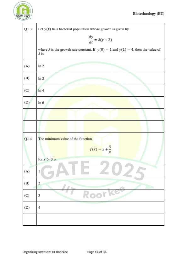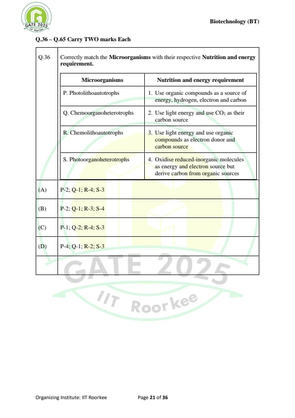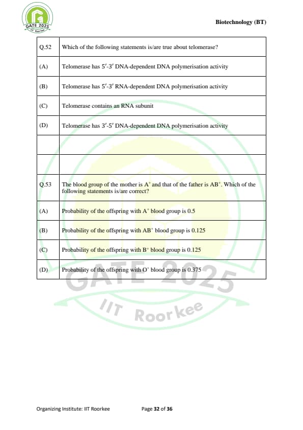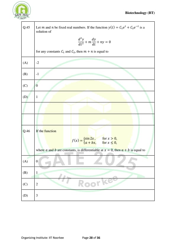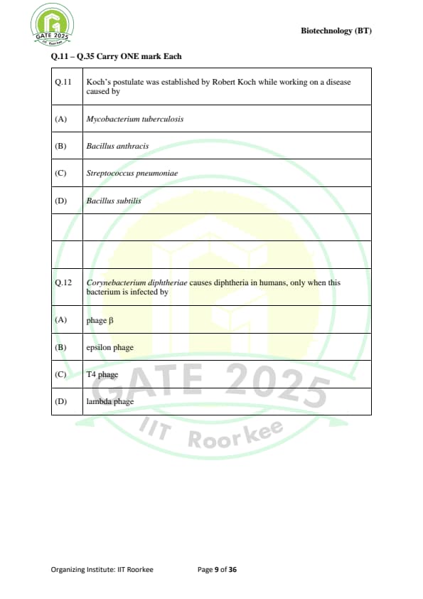 GATE 2025 BT Question Paper with Solutions