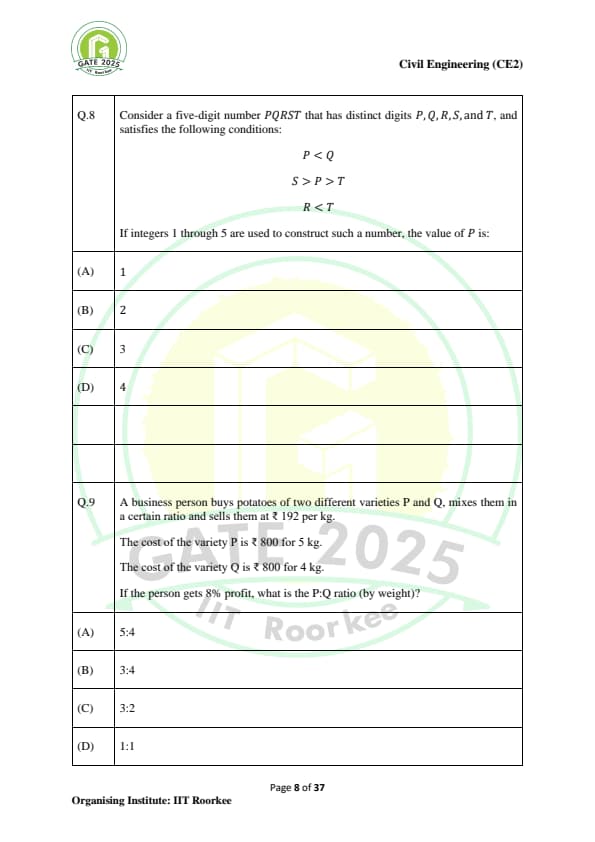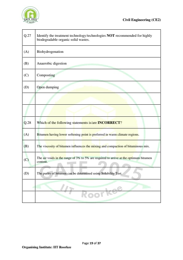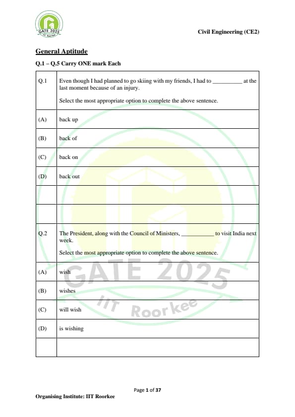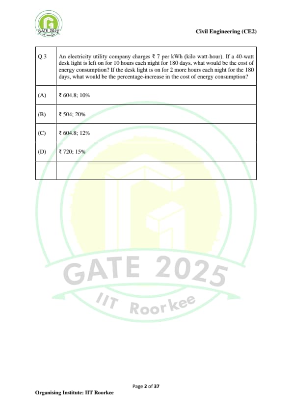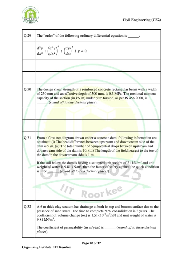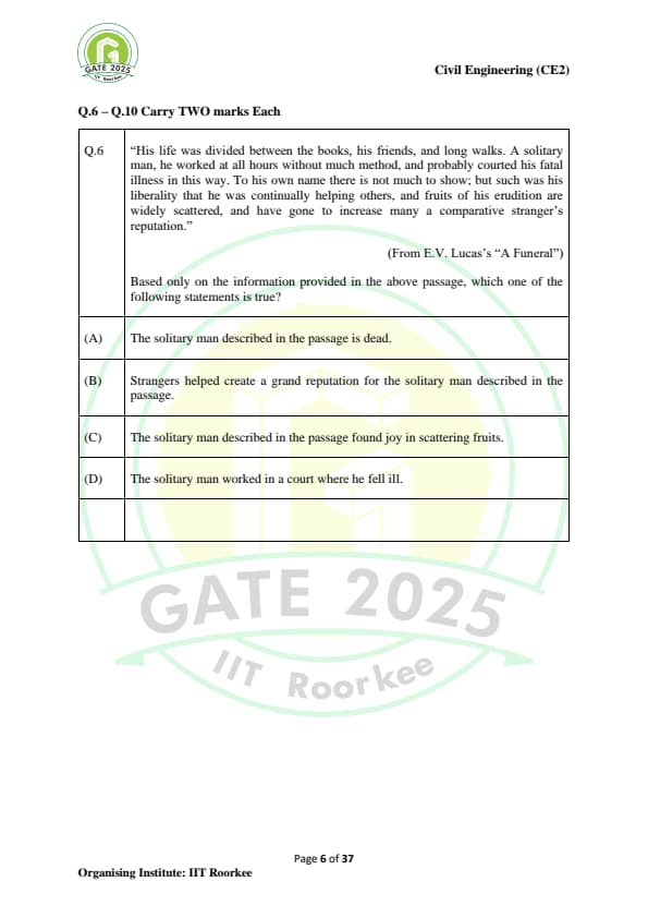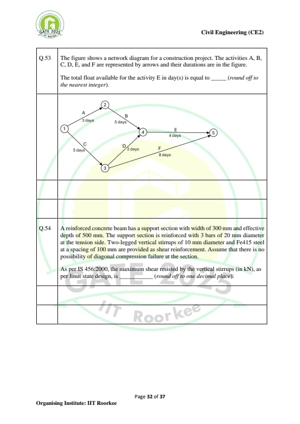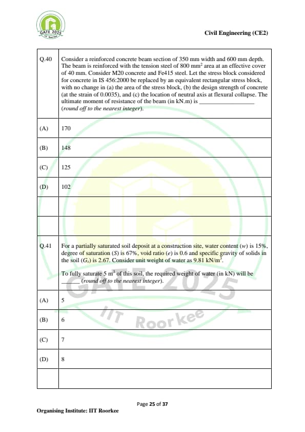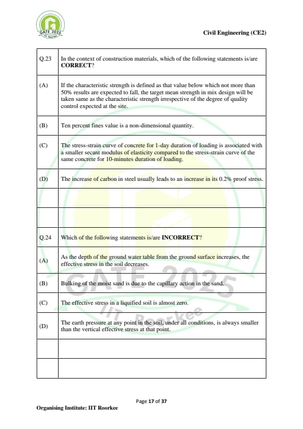 GATE 2025 CE Slot 2 Question Paper with Solutions