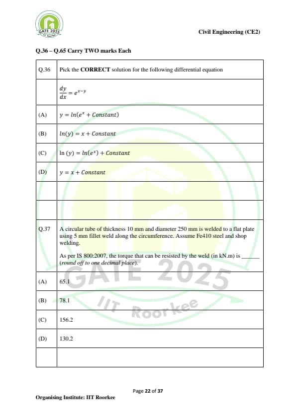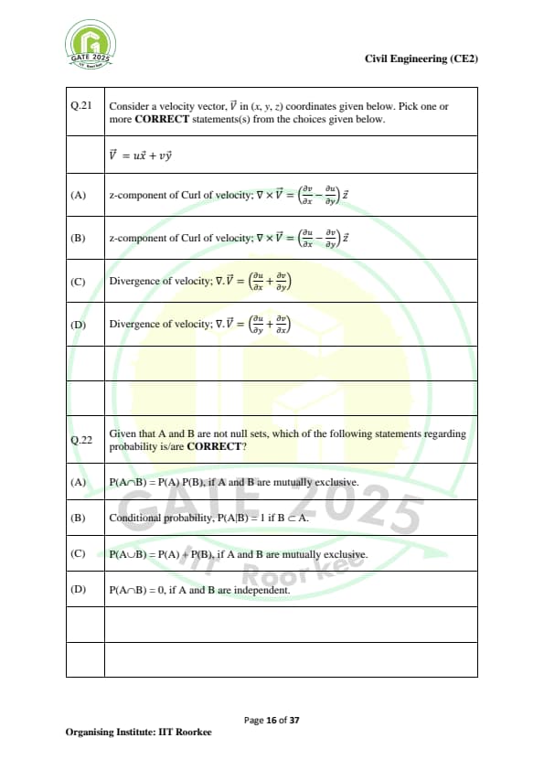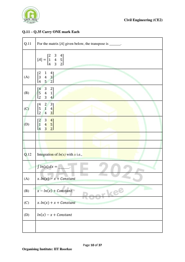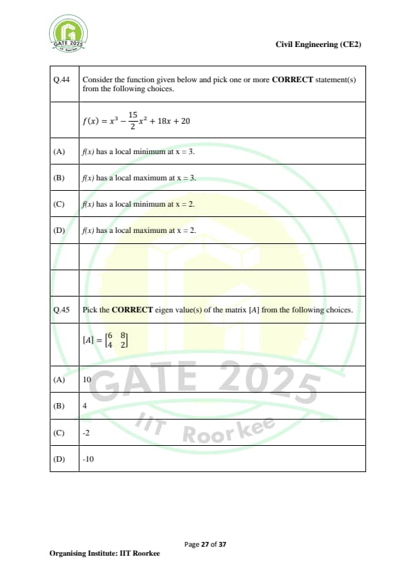 | GATE 2025 CE Slot 2 Question Paper with Answer Key | Download | Check Solutions |