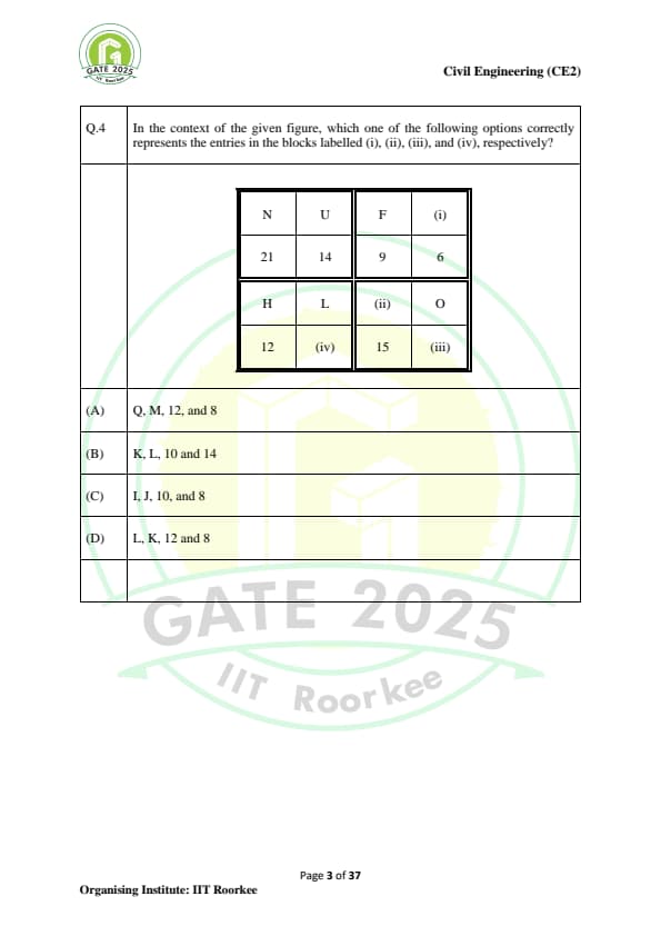 The GATE 2025 CE Slot 2 Question Paper PDF is available as the exam is over. IIT Roorkee is conducting the GATE 2025 Civil Engineering (CE) exam on February 16 Shift 2 took place from 2:30 PM to 5:30 PM. As per the updated exam pattern, the exam consists of 65 questions with 100 marks, with 10 from the General Aptitude section and 55 questions from Engineering Mathematics and Civil Engineering topics.