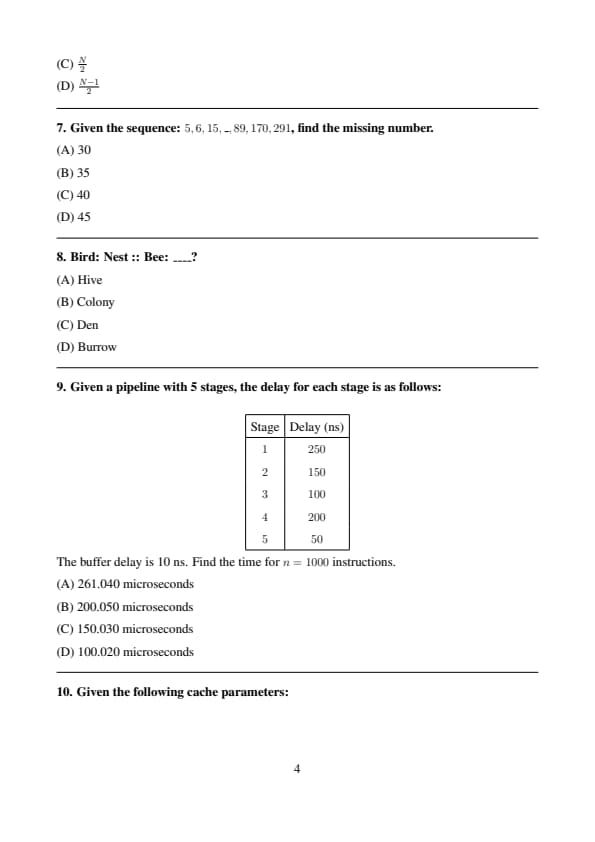 Given a pipeline with 5 stages, the delay for each stage is as follows: