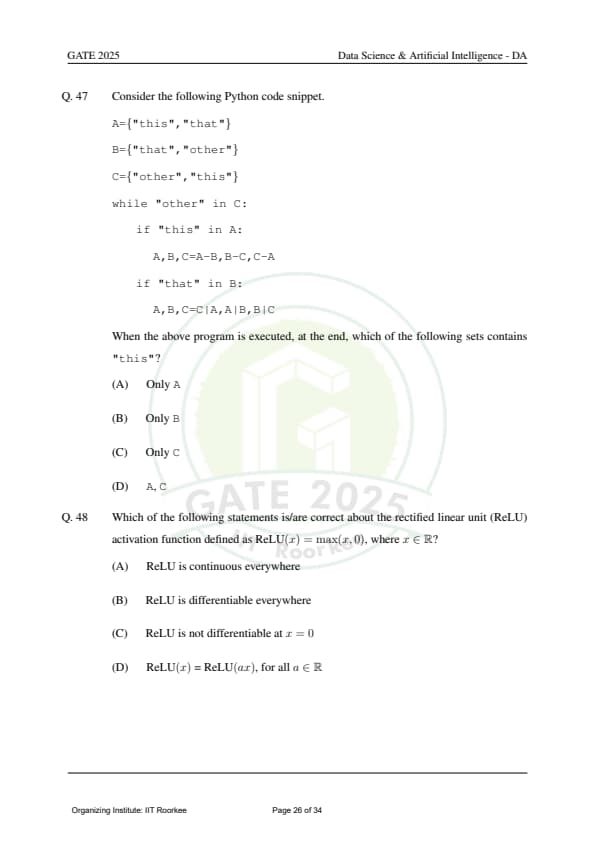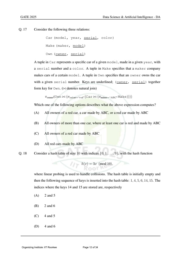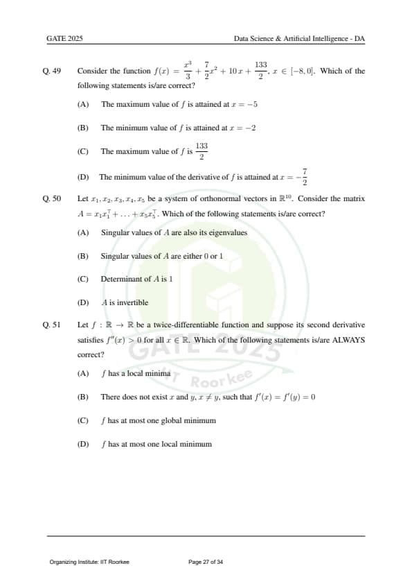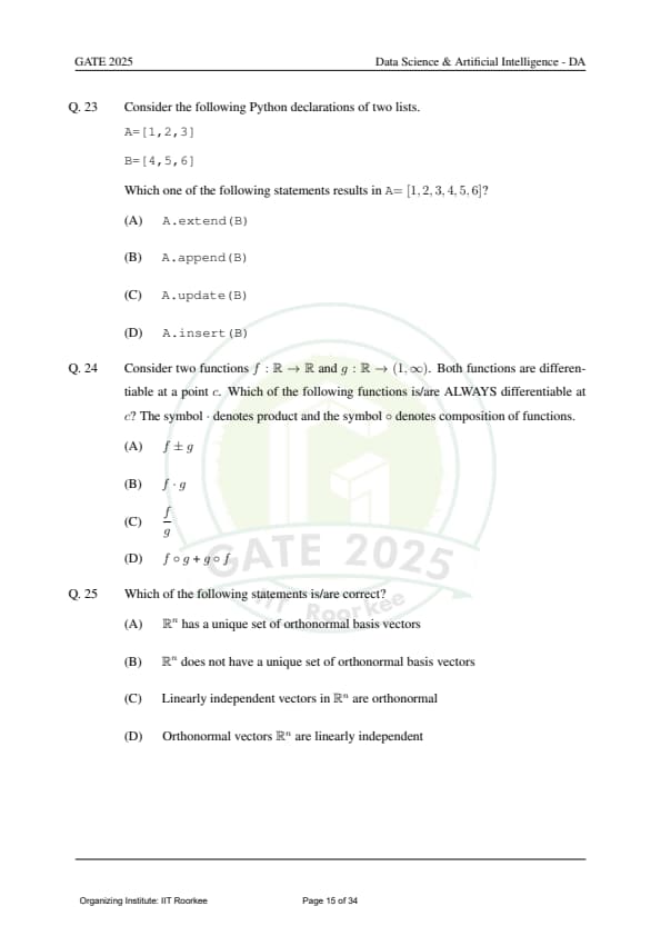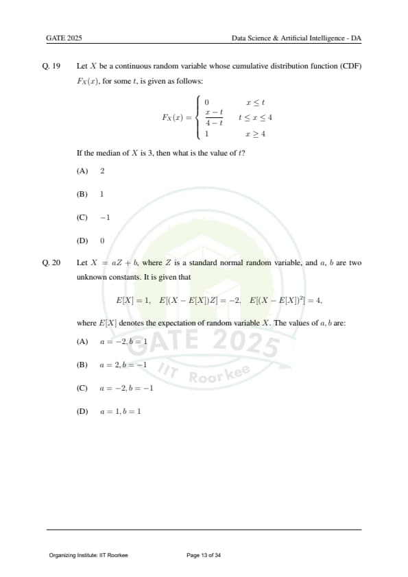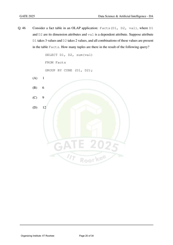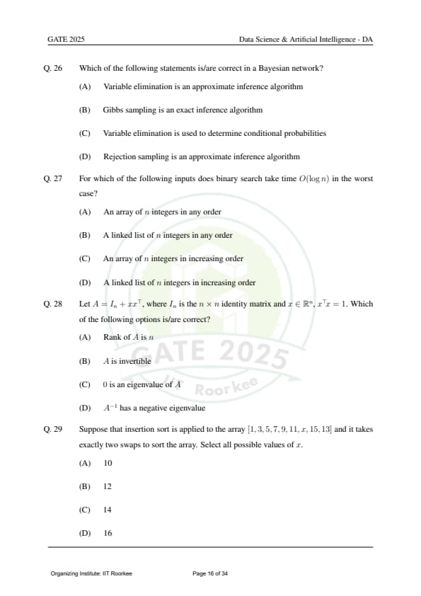 | GATE 2025 DA Question Paper with Answer Key | Check Solutions |