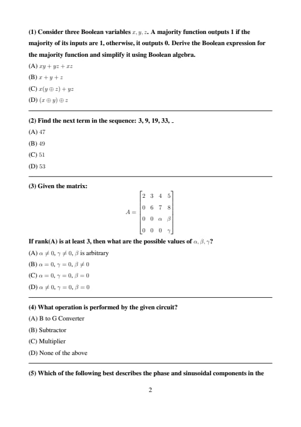 The GATE 2025 EC Question Paper PDF is available as the exam has ended. The GATE 2025 Electronics & Communication Engineering (EC) exam was organized by IIT Roorkee on February 15, Shift 2, which was scheduled from 2:30 PM to 5:30 PM. According to the revised test pattern, the test had 65 questions that made up a total of 100 marks with 10 General Aptitude and 55 Engineering Mathematics and Electronics & Communication Engineering subject questions.