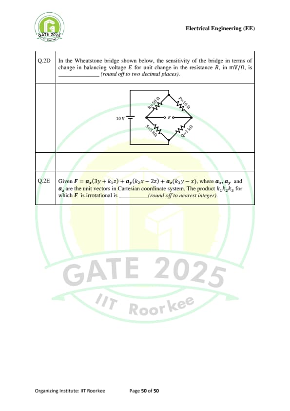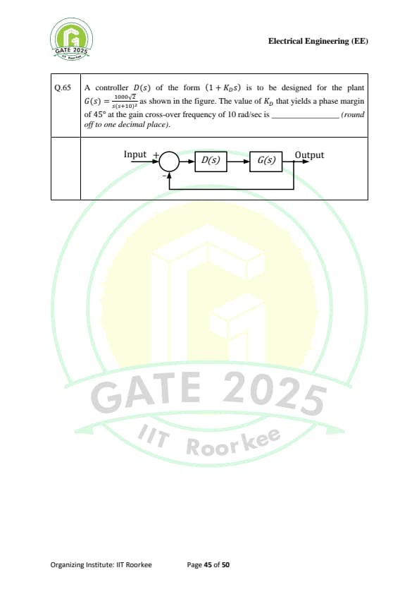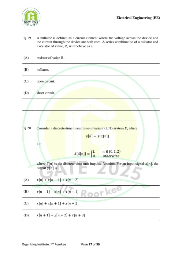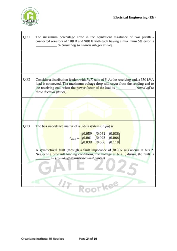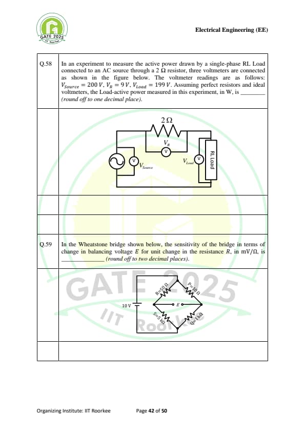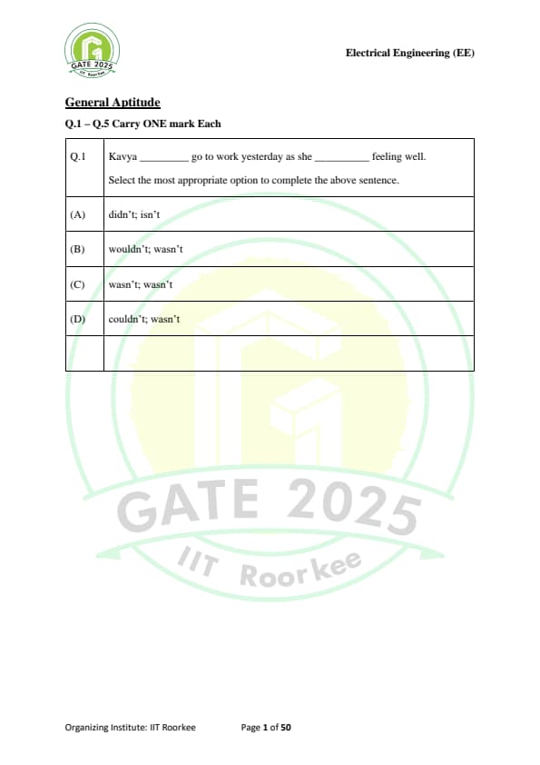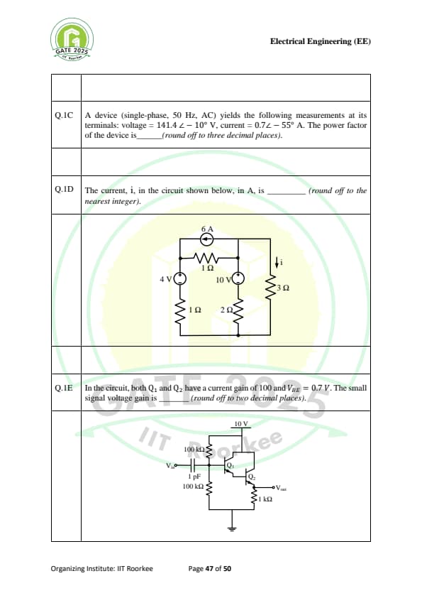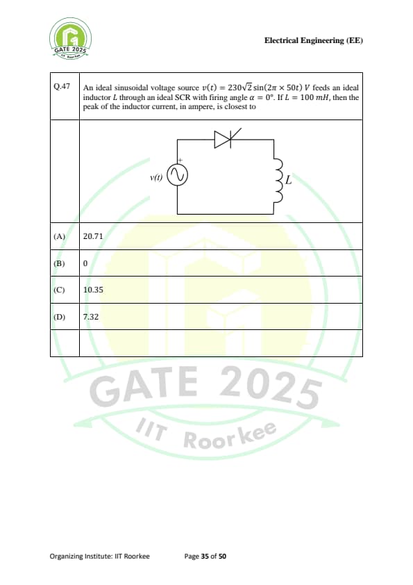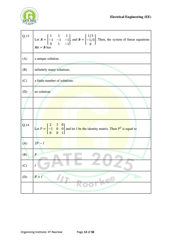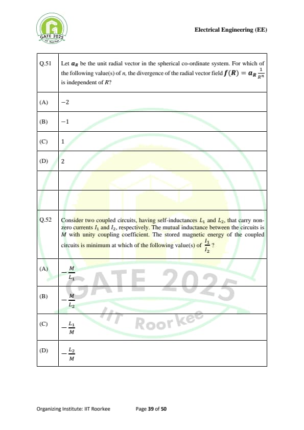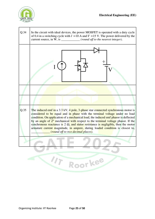 | GATE 2025 EE Question Paper with Answer Key | Check Solutions |