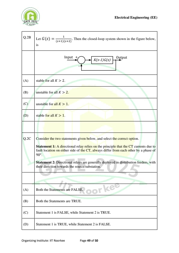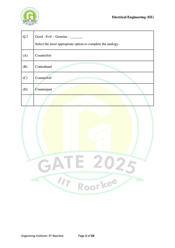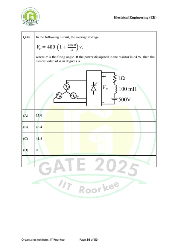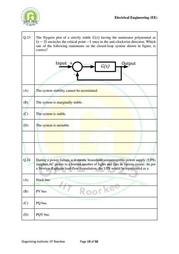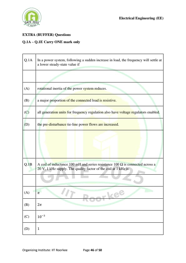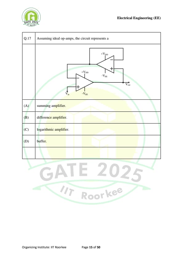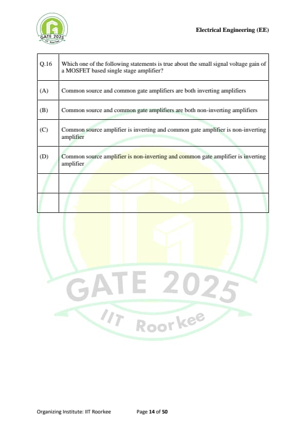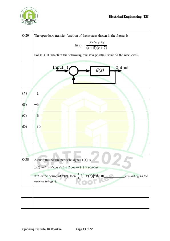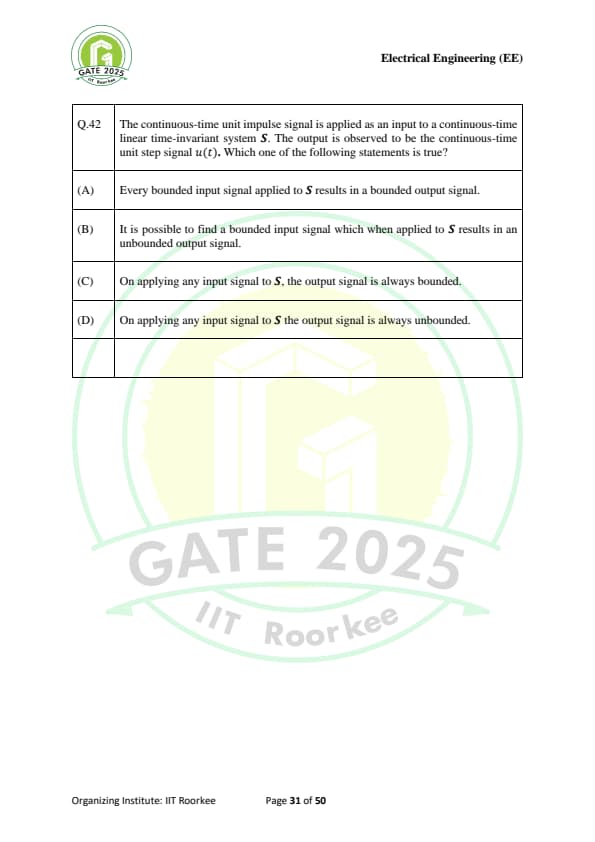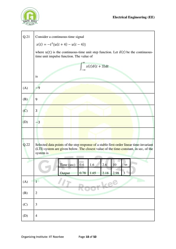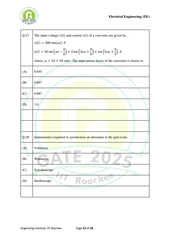 | GATE 2025 EE Question Paper with Answer Key | Check Solutions |
