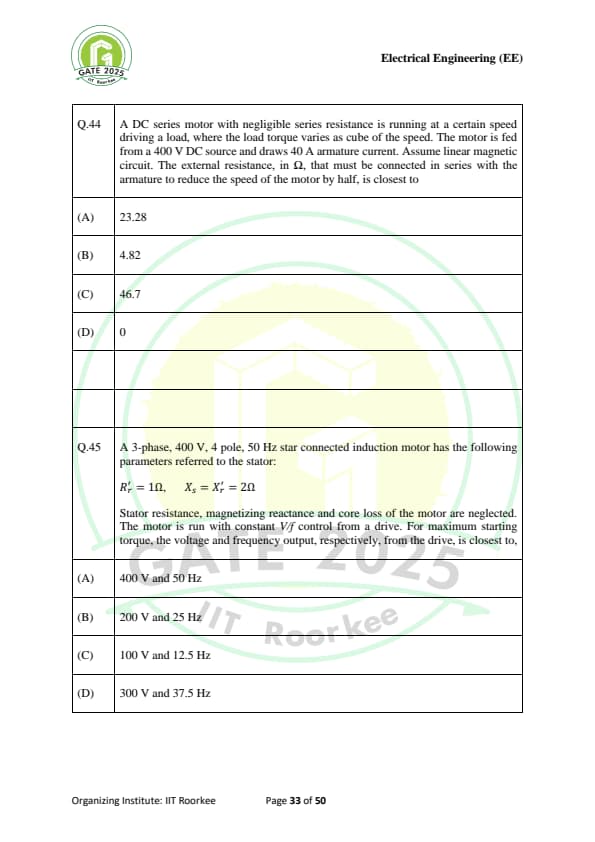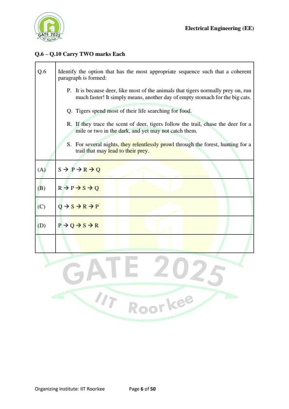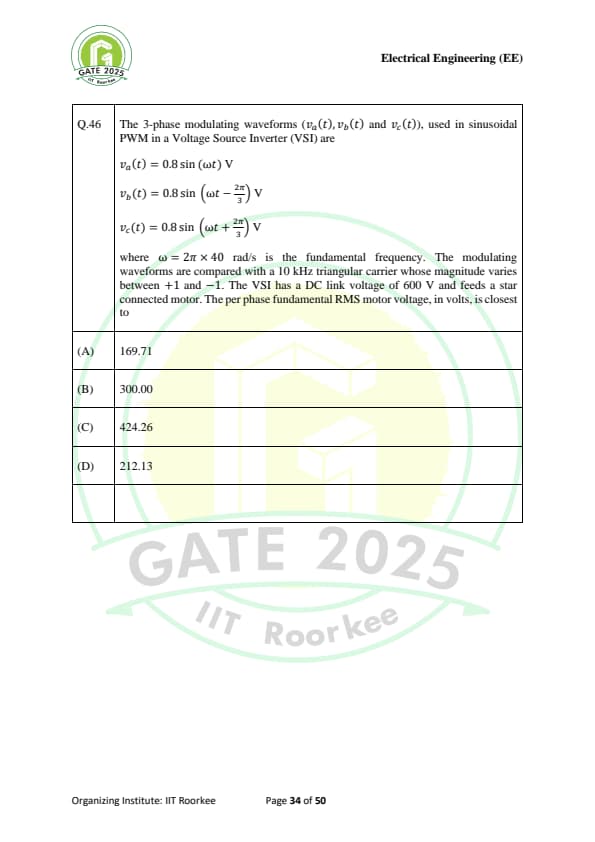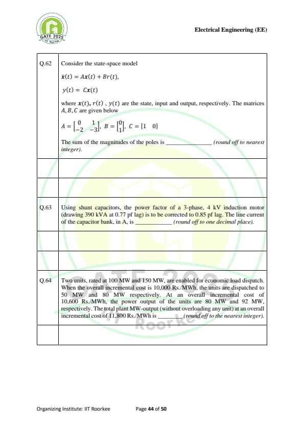 Gate 2025 EE Question Paper With Solutions
