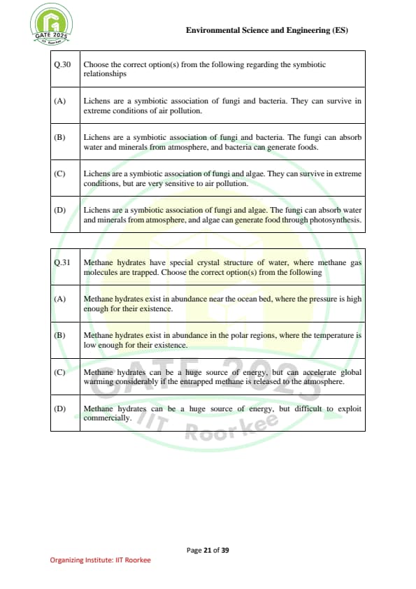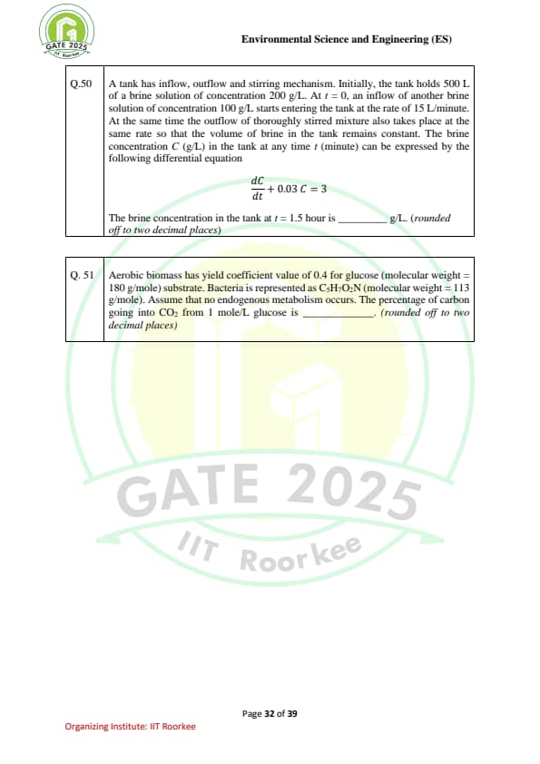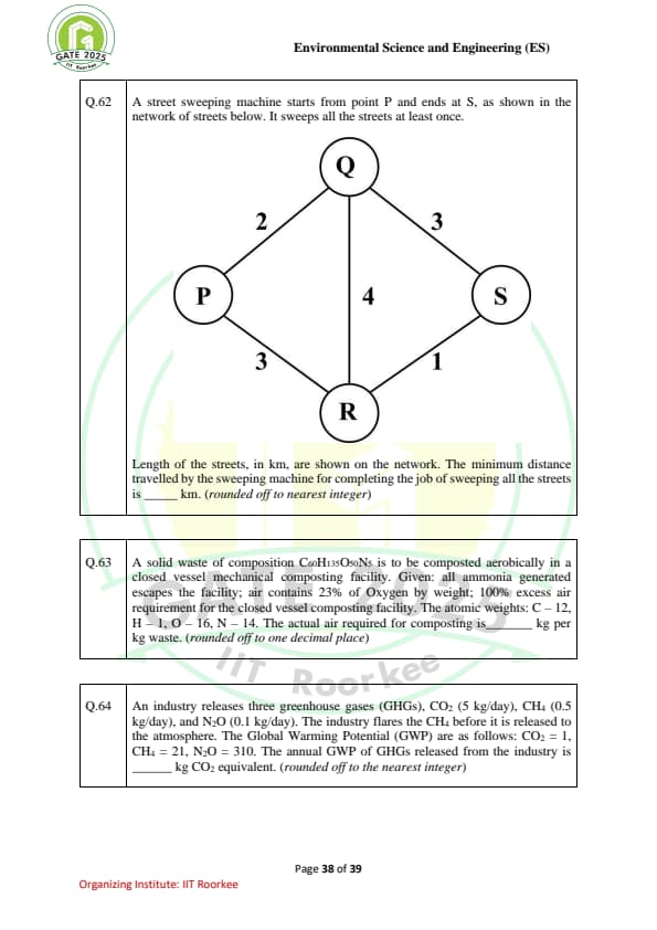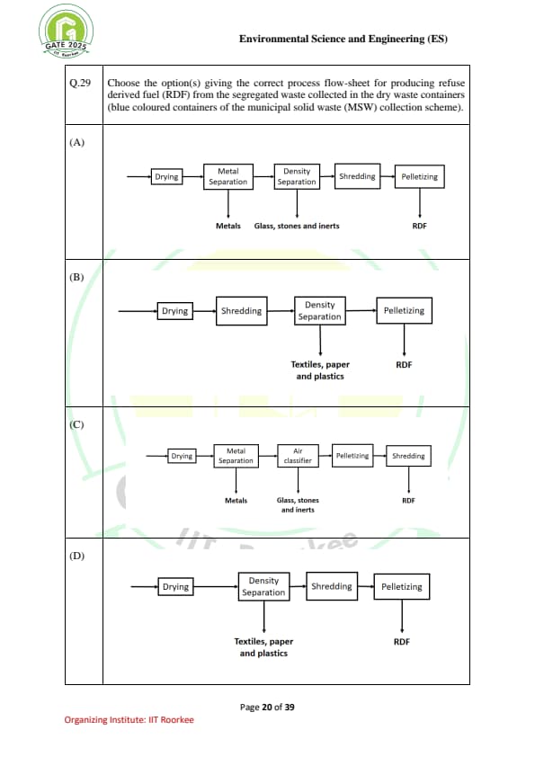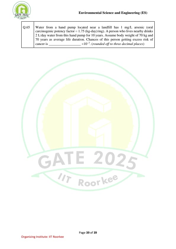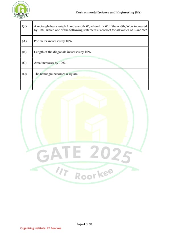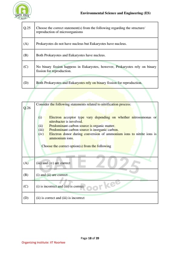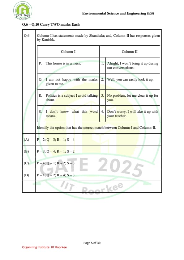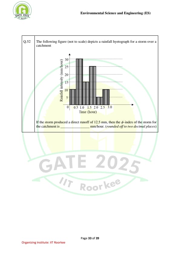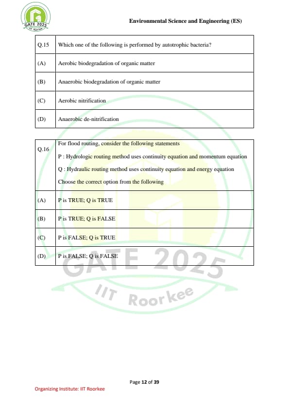 IIT Roorkee is conducting the GATE 2025 Environmental Science & Engineering (ES) exam, and the GATE 2025 ES Question Paper PDF is now available after the conclusion of the February 15 shift 1 from 9:30 AM to 12:30 PM. As per the updated exam pattern, the exam consists of 65 questions totaling 100 marks, with 10 questions from General Aptitude and 55 questions covering Engineering Mathematics and Environmental Science & Engineering topics.