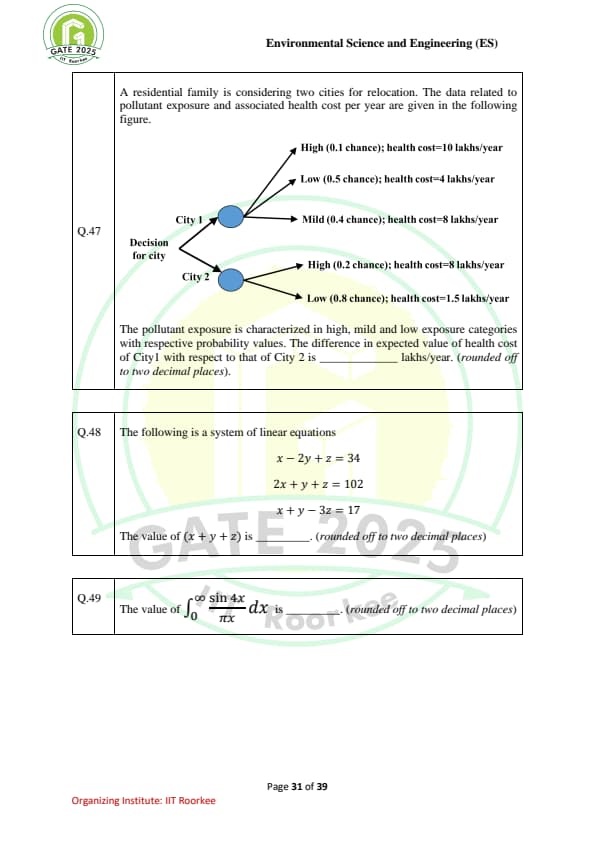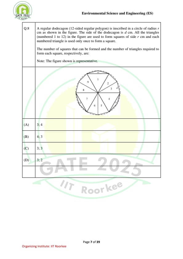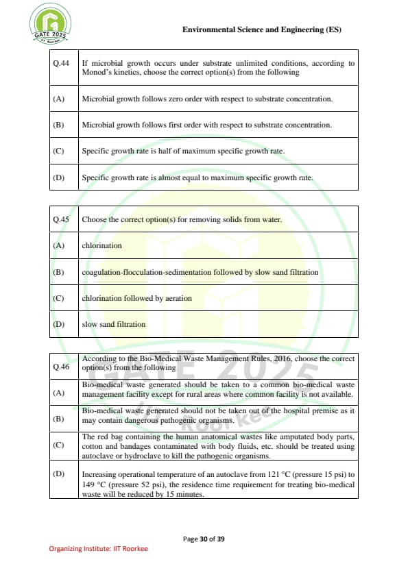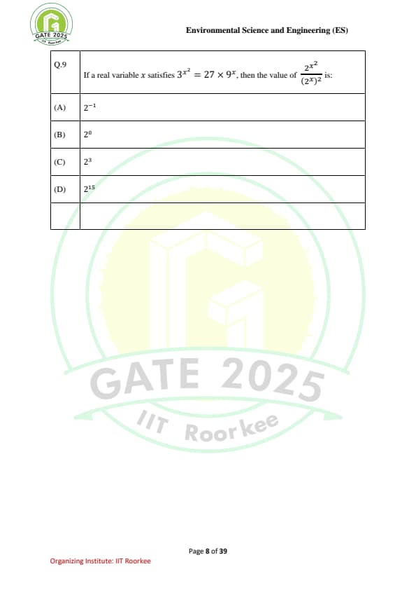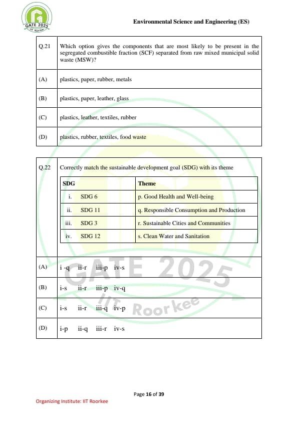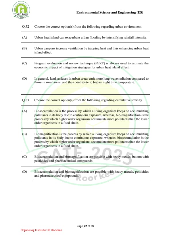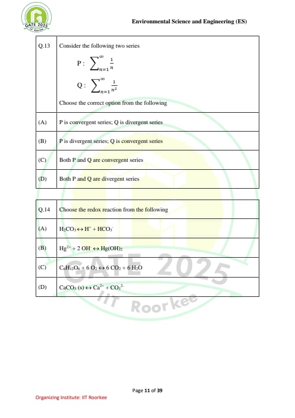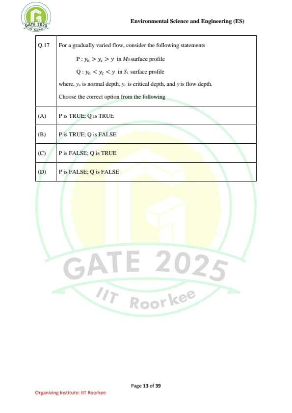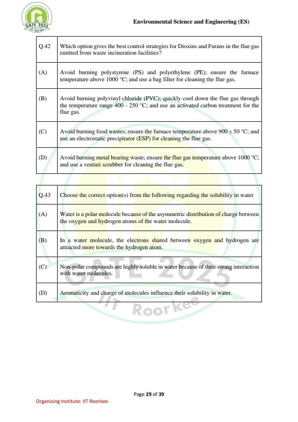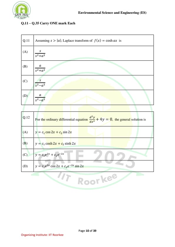 IIT Roorkee is conducting the GATE 2025 Environmental Science & Engineering (ES) exam, and the GATE 2025 ES Question Paper PDF is now available after the conclusion of the February 15 shift 1 from 9:30 AM to 12:30 PM. As per the updated exam pattern, the exam consists of 65 questions totaling 100 marks, with 10 questions from General Aptitude and 55 questions covering Engineering Mathematics and Environmental Science & Engineering topics.