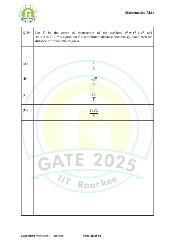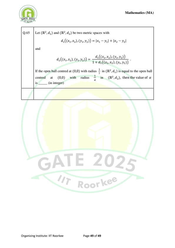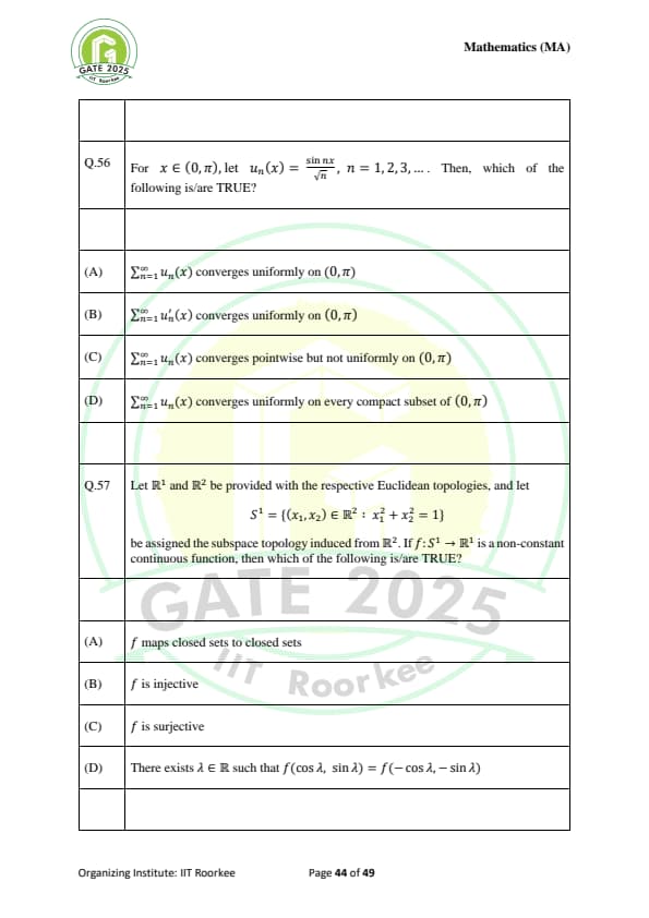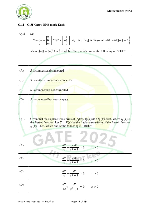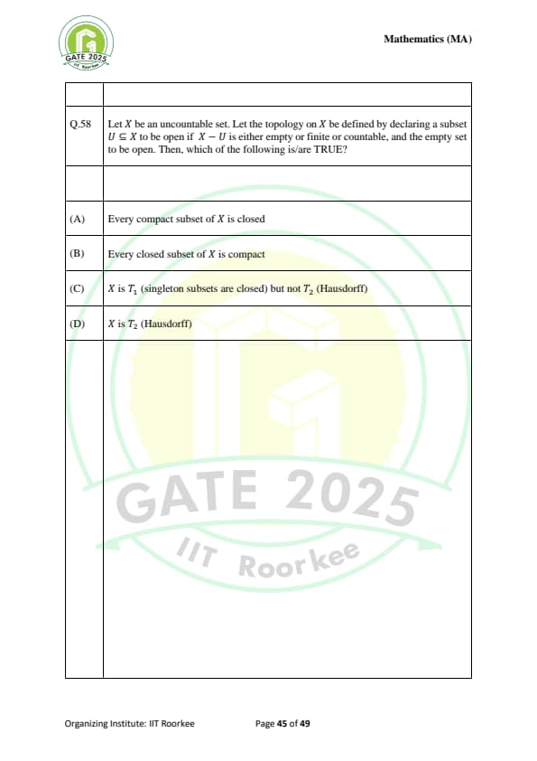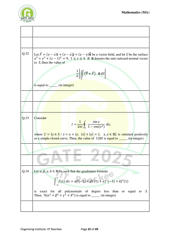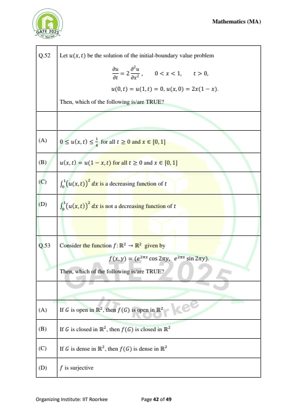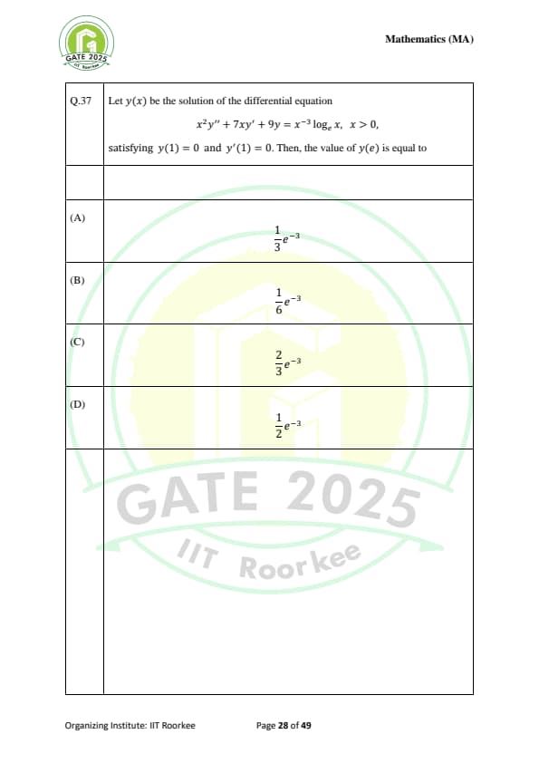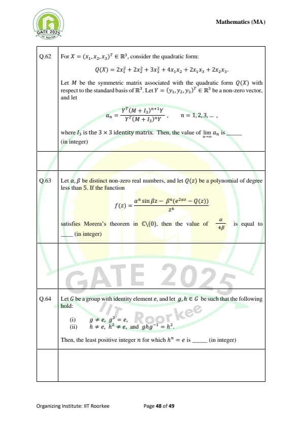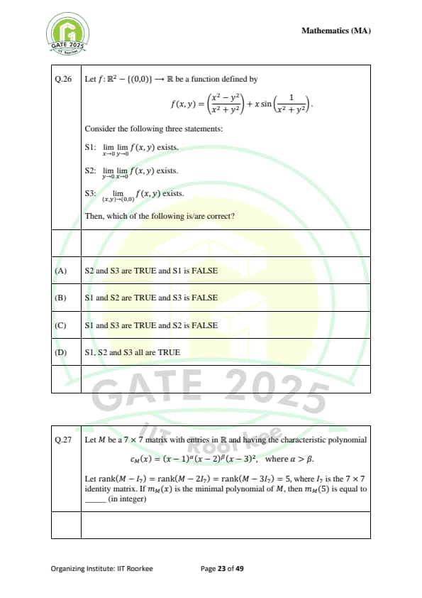 | GATE 2025 Mathematics Question Paper with Answer Key | Download | Check Solutions |