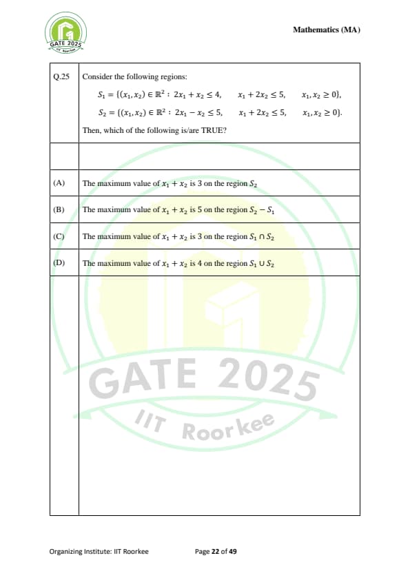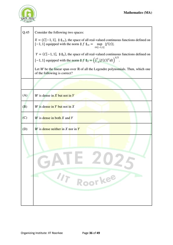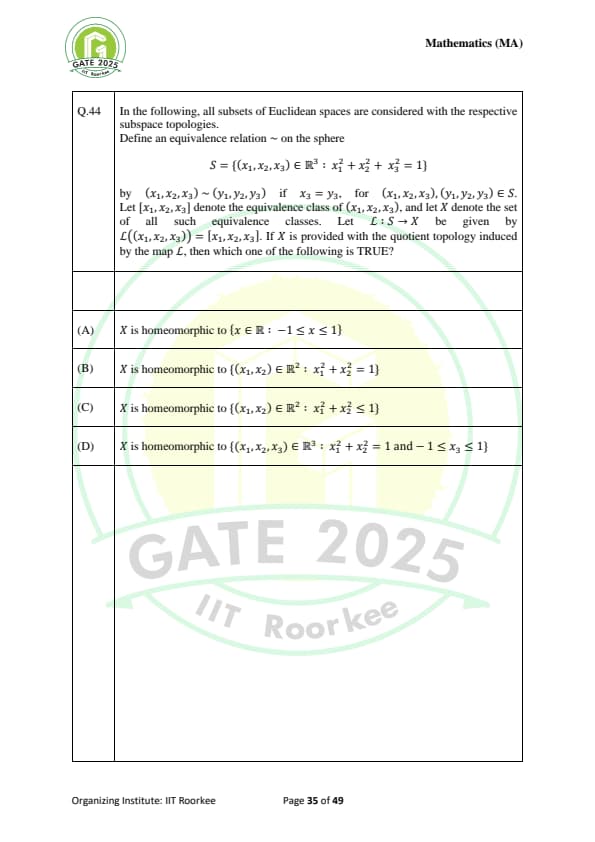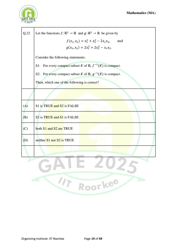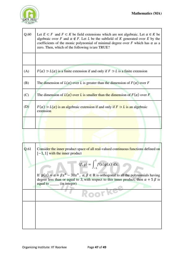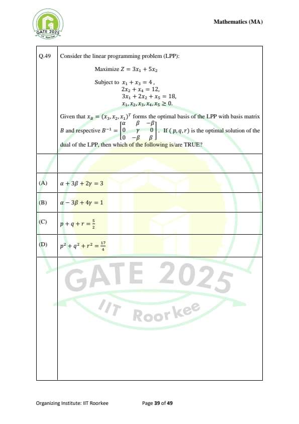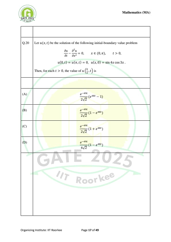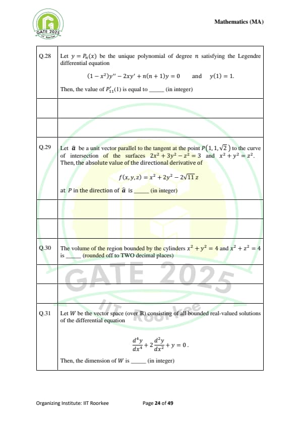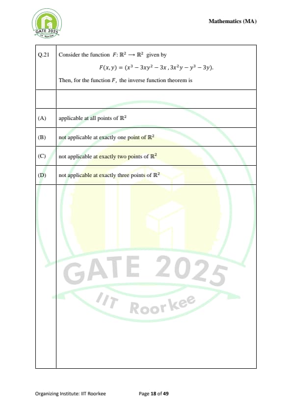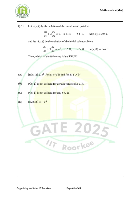 | GATE 2025 Mathematics Question Paper with Answer Key | Download | Check Solutions |