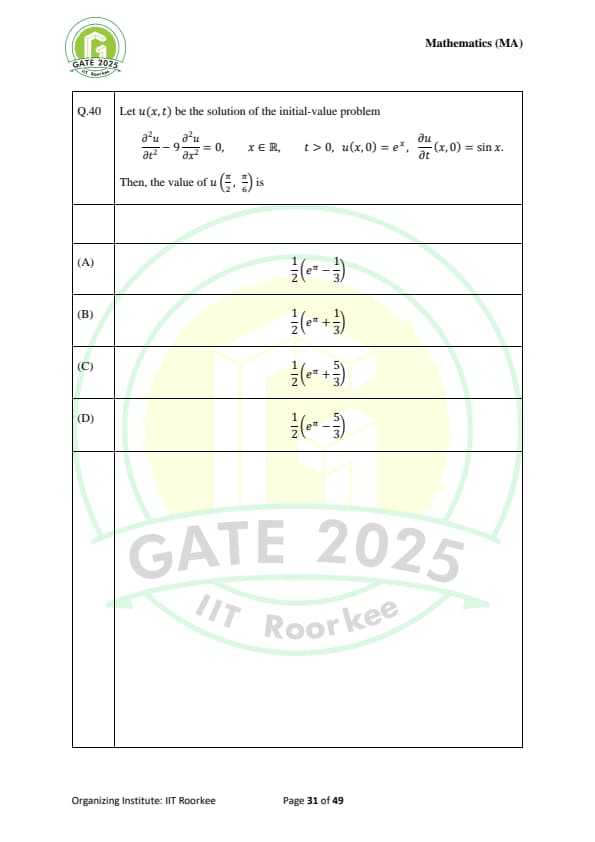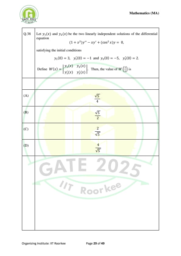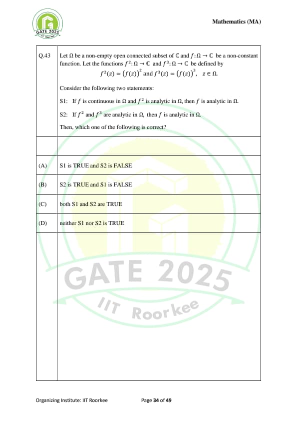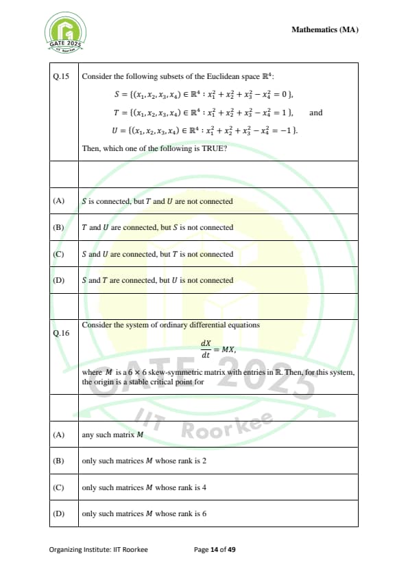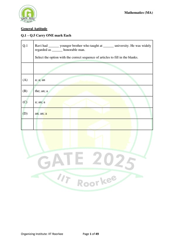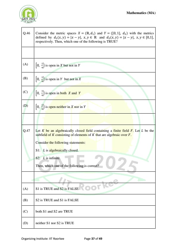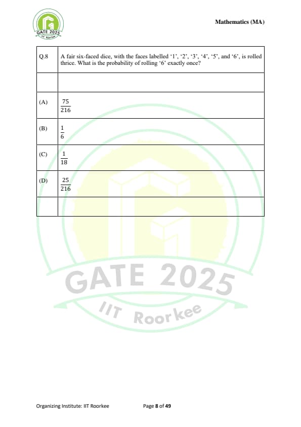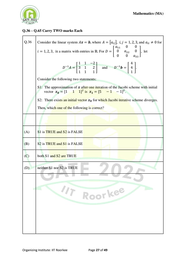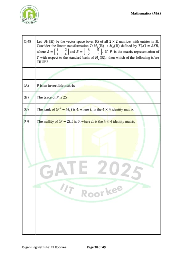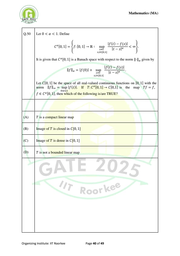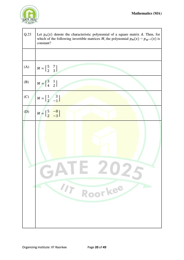 | GATE 2025 Mathematics Question Paper with Answer Key | Download | Check Solutions |