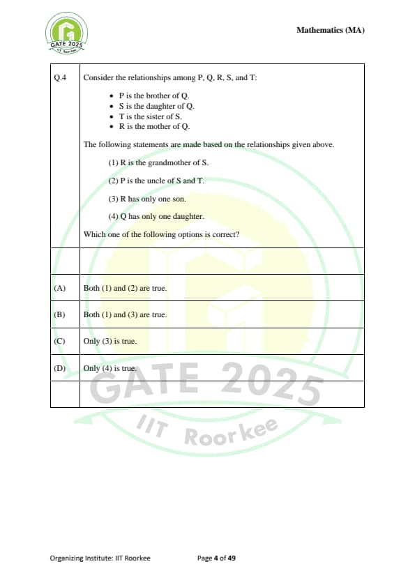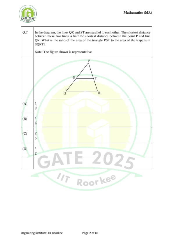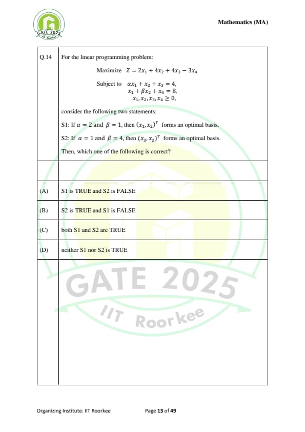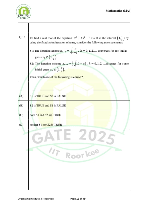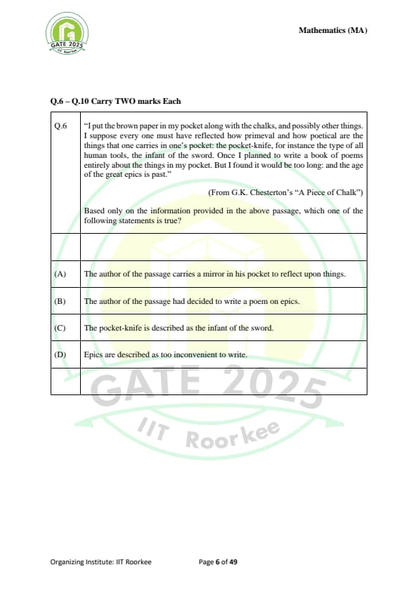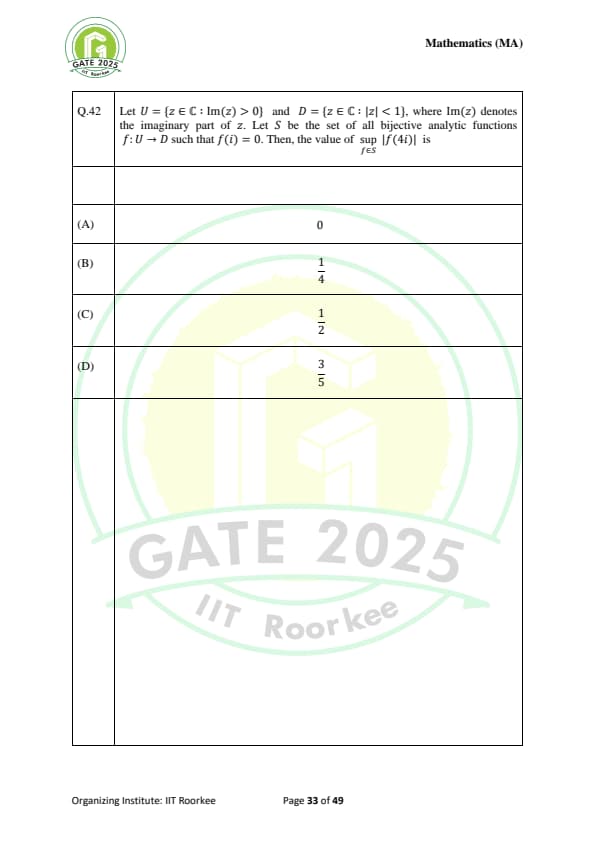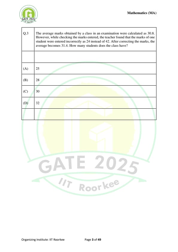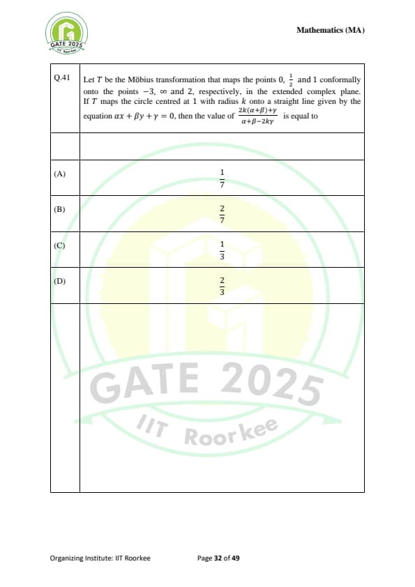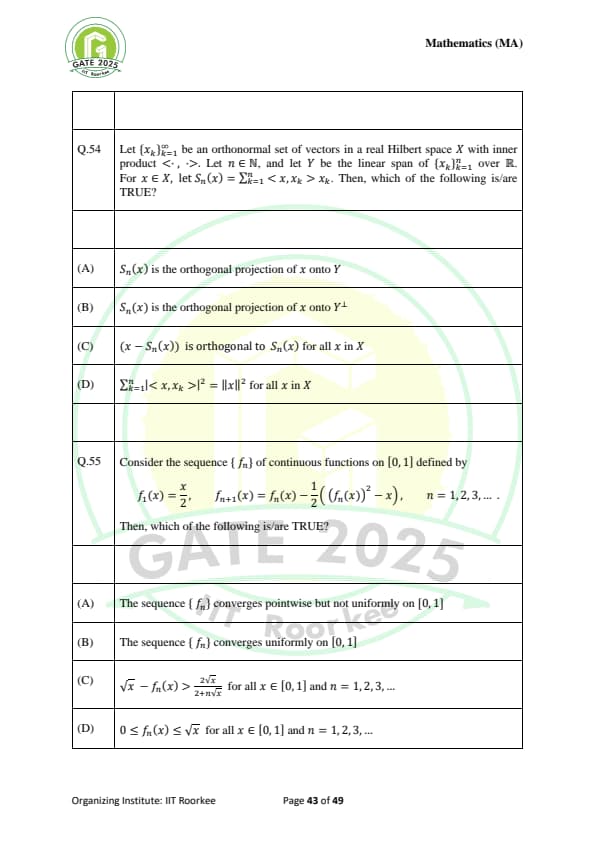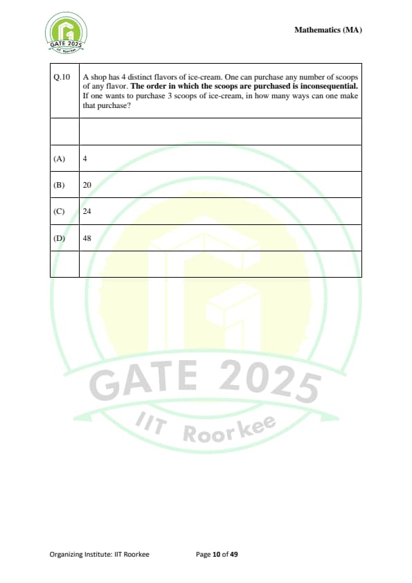 | GATE 2025 Mathematics Question Paper with Answer Key | Download | Check Solutions |