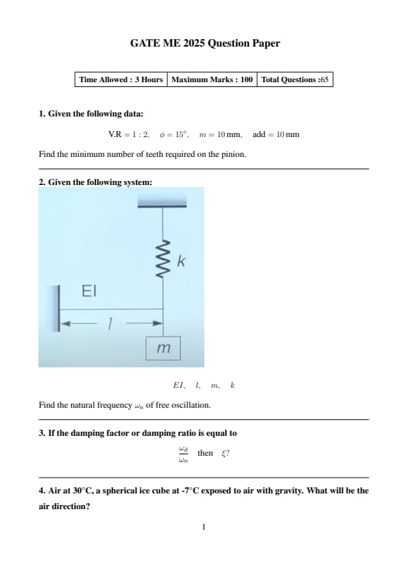 | GATE 2025 ME Question Paper | Download PDF | Check Solutions |