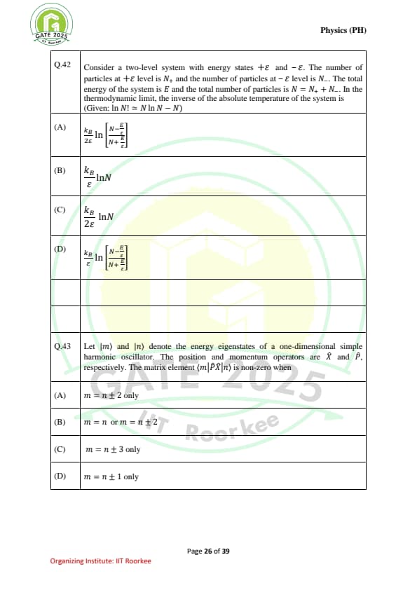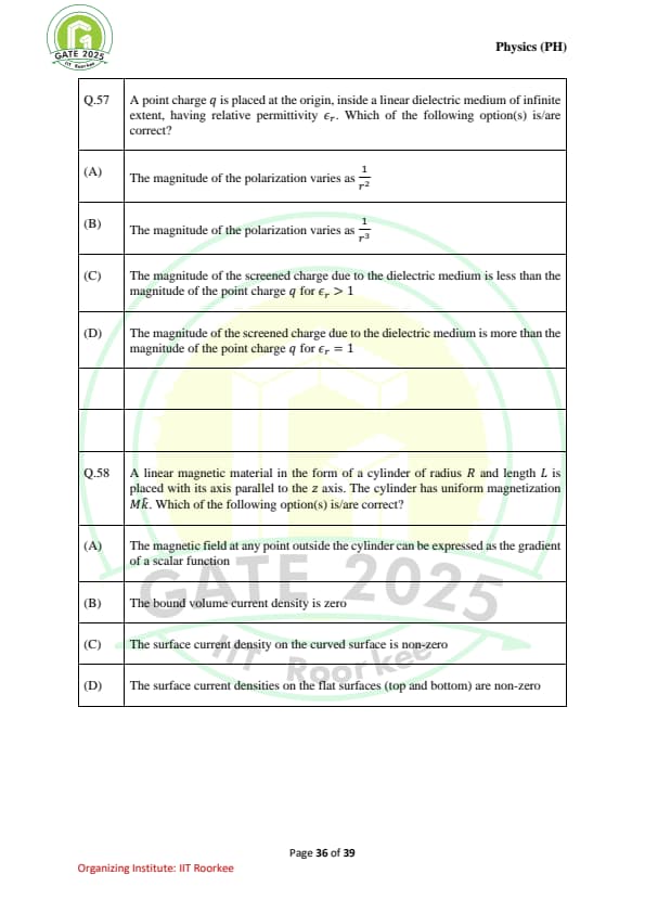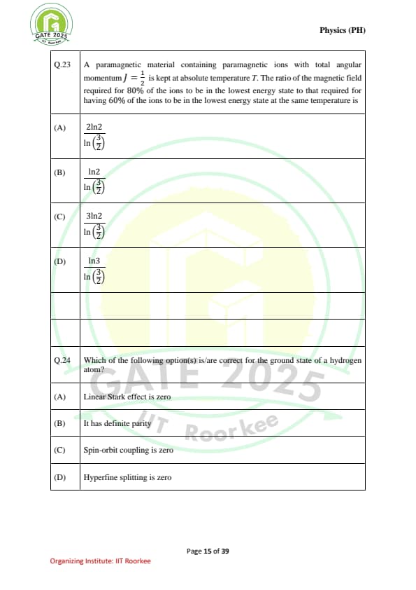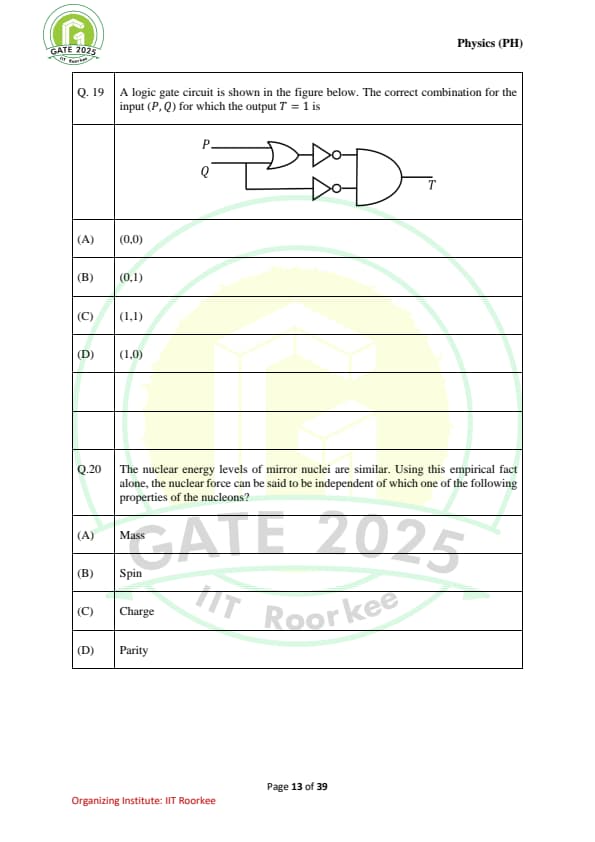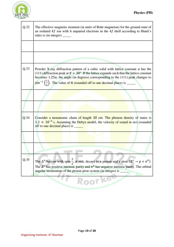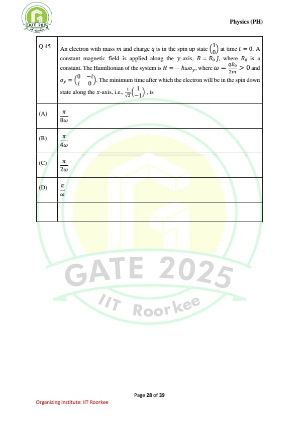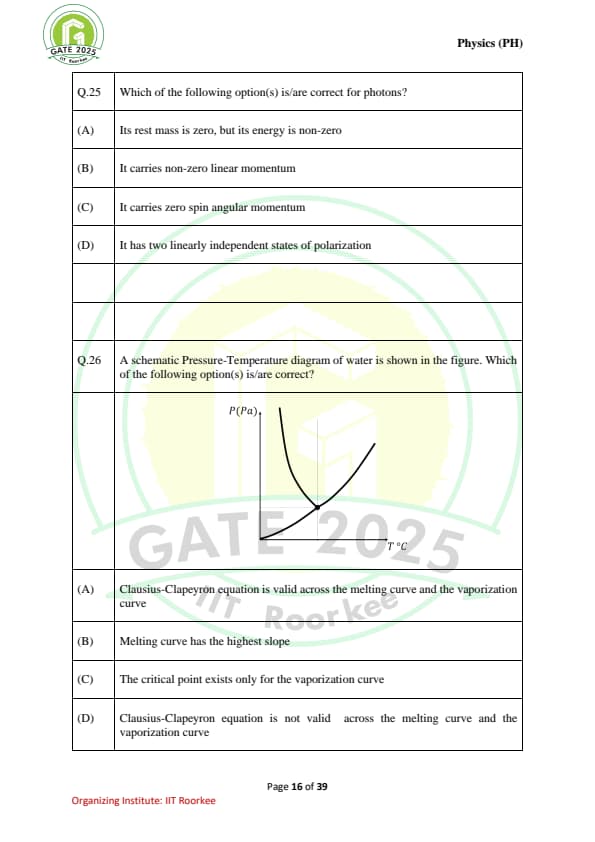 | GATE 2025 PH Question Paper with Answer Key | Check Solution |