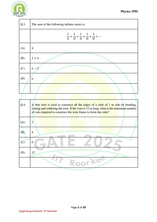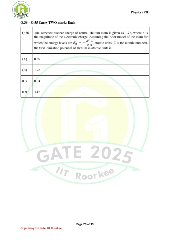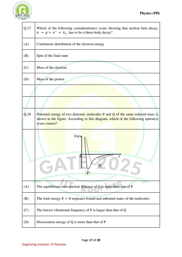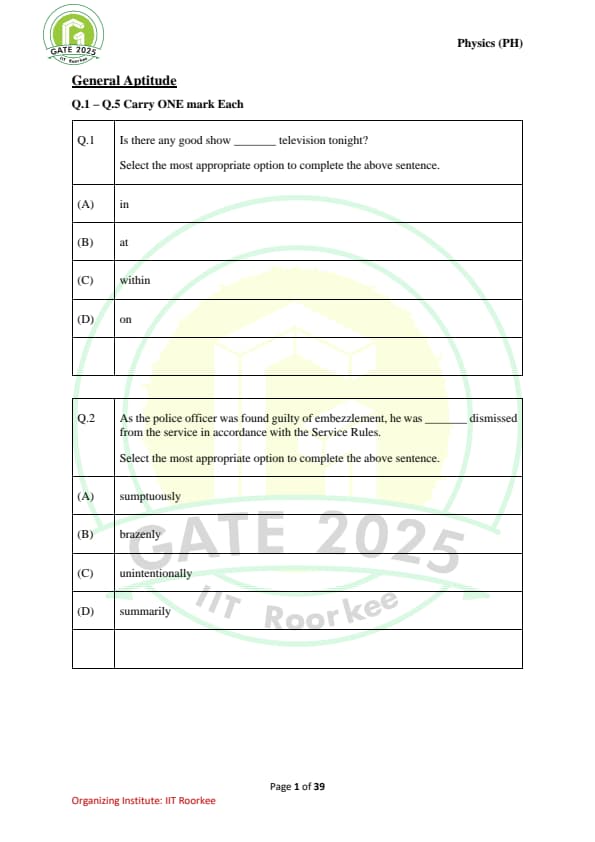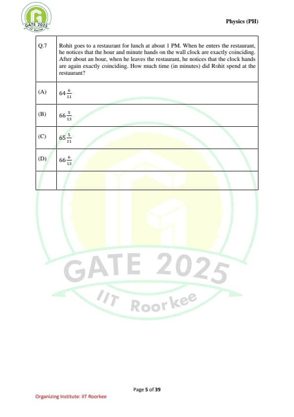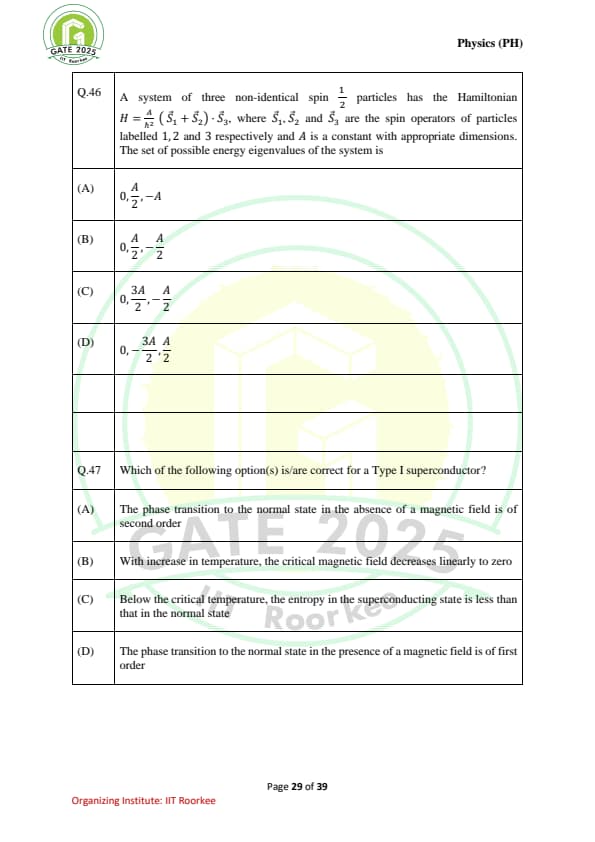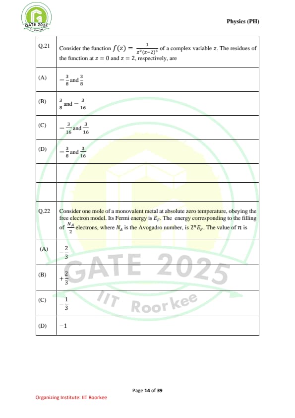 | GATE 2025 PH Question Paper with Answer Key | Check Solution |