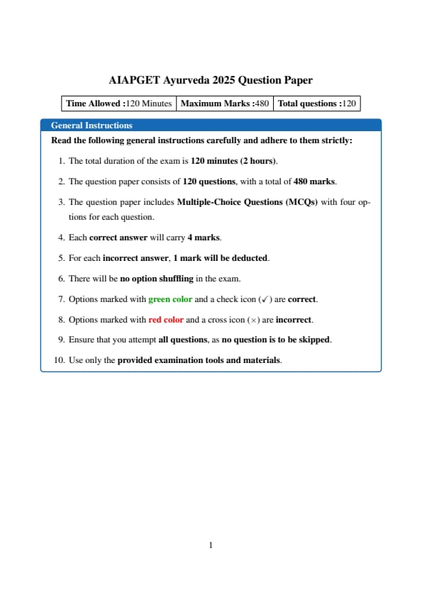 The AIAPGET 2025 exam was conducted on July 4th, 2025 from 10:00 A.M. to 12:00 P.M. at various exam centres across India. AIAPGET Ayurveda 2025 Question Paper with Answer Key is available here.