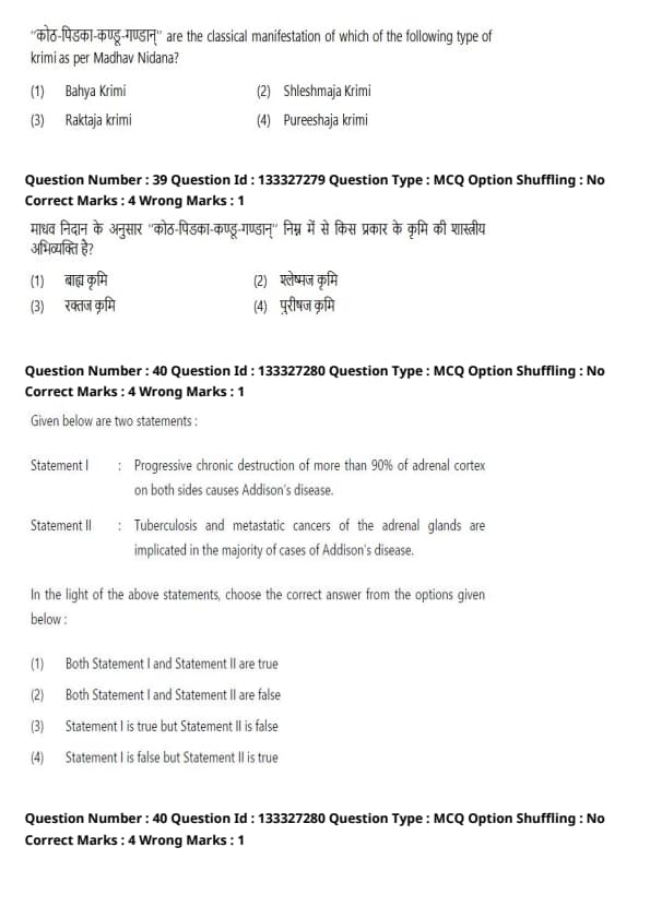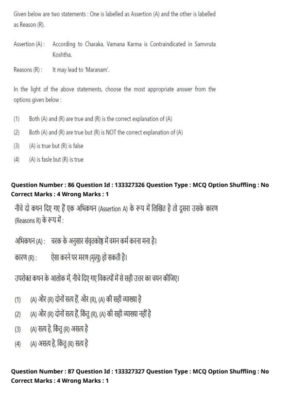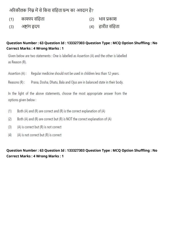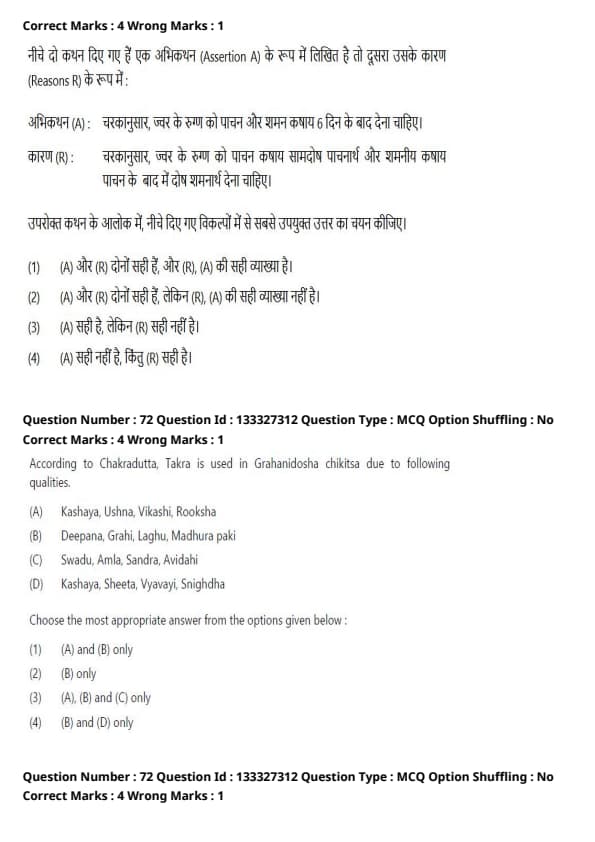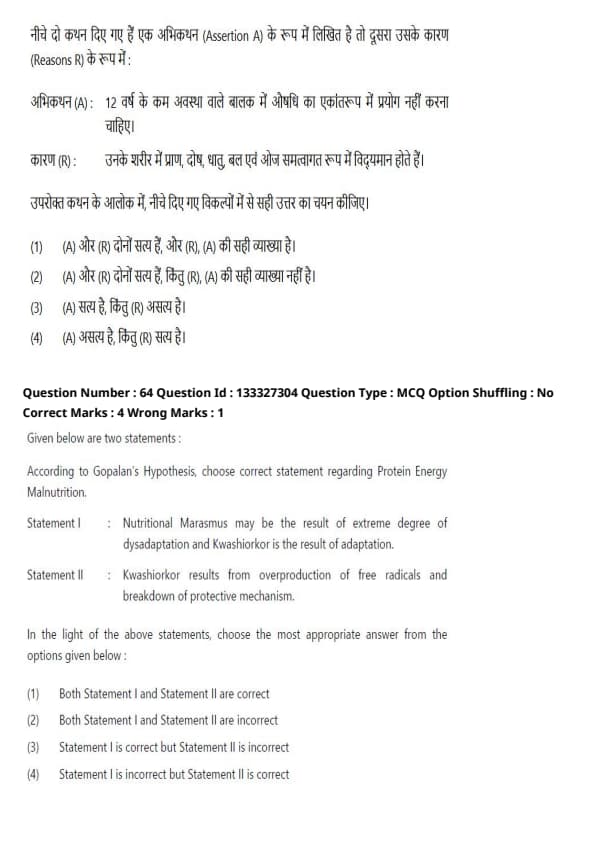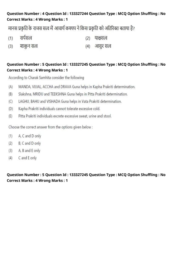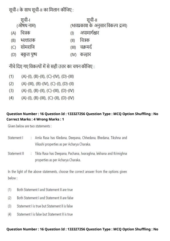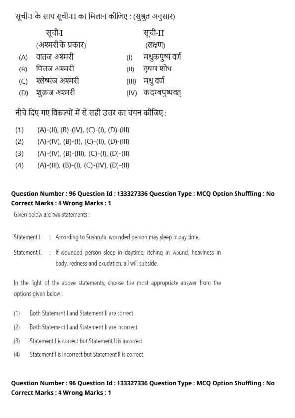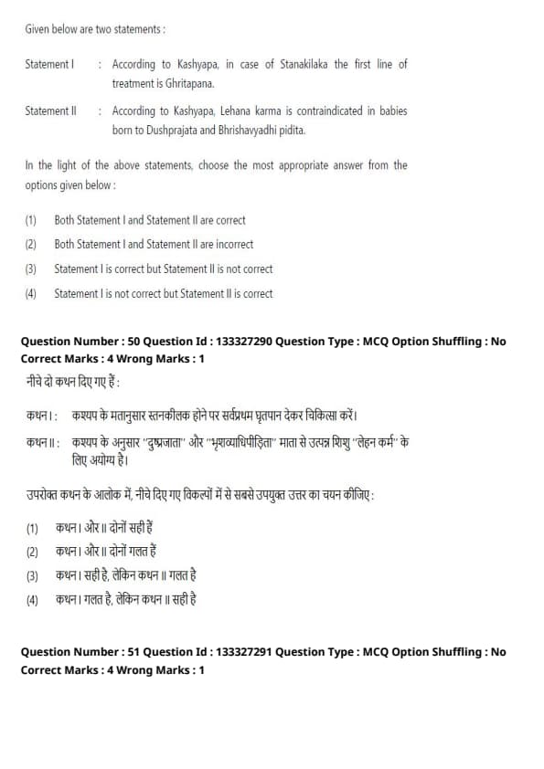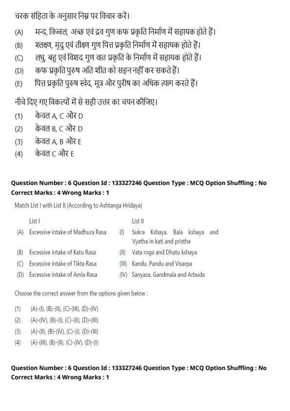 These two statements are correct, making option (4) the correct choice. Quick Tip: Understanding the specific characteristics of each Prakriti helps in determining the right therapeutic approaches in Ayurveda.